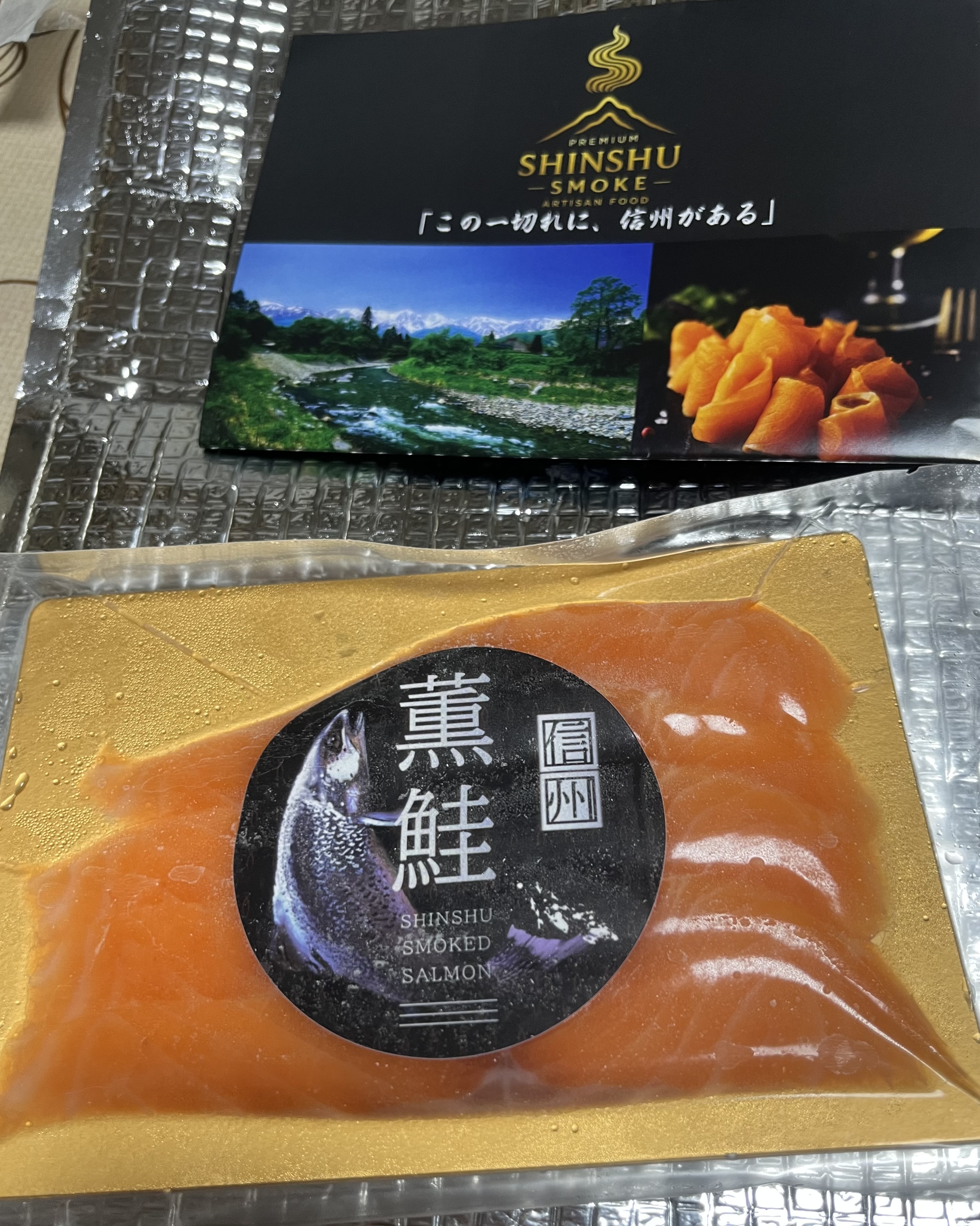 おすすめの食べ方は、まずはぜひそのままで。わさび醤油で刺身のように。一切れ口にすれば、桜チップの芳醇な香りと信州サーモンの旨味がじんわり広がります。薄くスライスしてチーズと合わせたり、クラッカーにのせてワインとともに楽しむのも◎。炊き立てご飯にのせれば、贅沢な“燻製おにぎり”にも。簡単アレンジで、特別なひとときをお楽しみください。