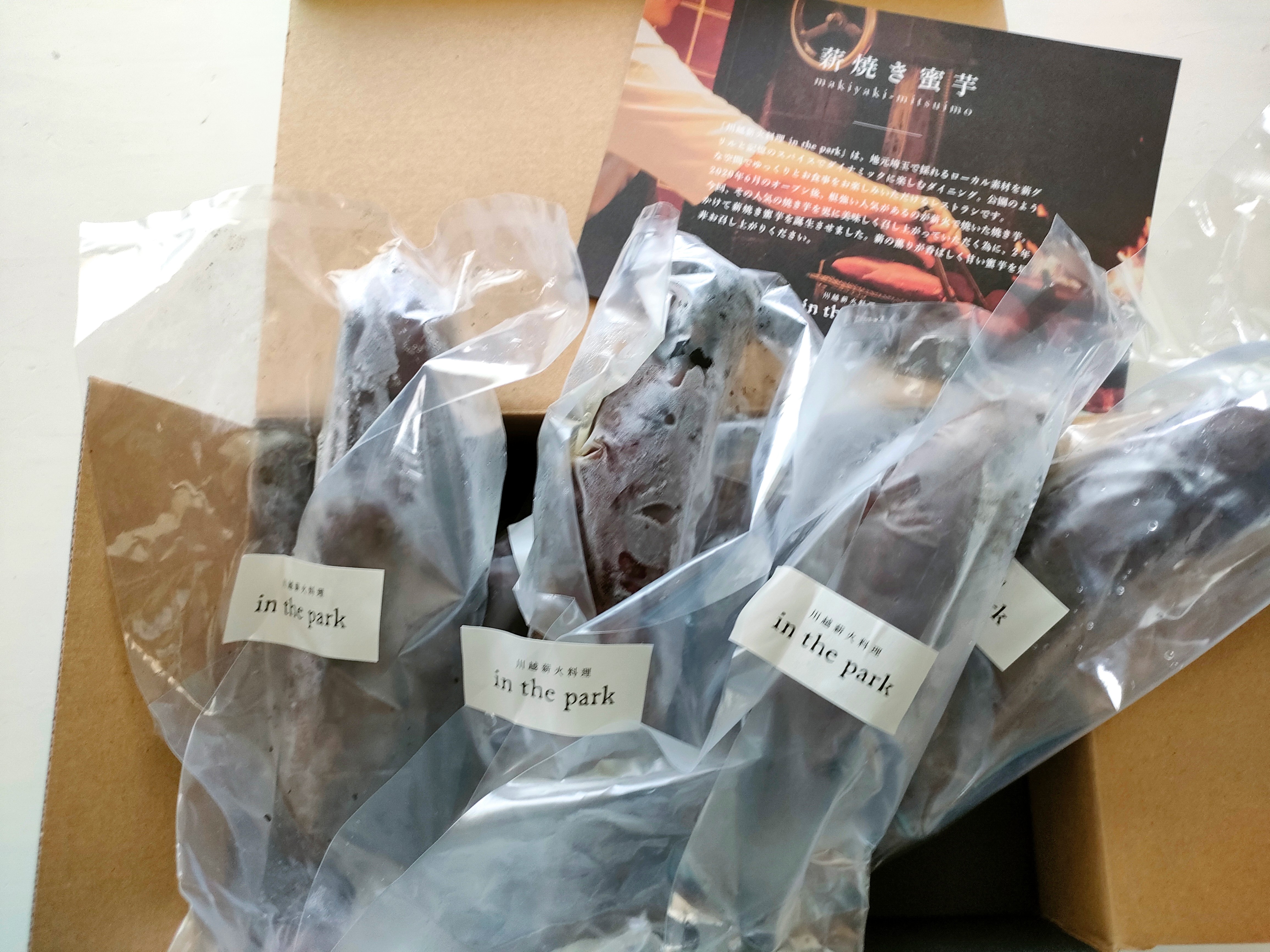 川越の名産「紅はるか」を使用した「焼き芋」です。江戸時代から続く落ち葉堆肥農法で育まれた肥沃な土壌で育てた「紅はるか」。それを2か月以上熟成させ、さらに72時間かけてじっくり蜜芋化することで、甘さを引き出しています。最後の仕上げに薪火を使用し、薪の遠赤外線効果で旨味を逃さず均一に火を入れ、外は香ばしく中はとろりとした極上の食感に仕上げています。薪火が引き出す蜜のような甘さを実現しています。個包装されているので、ストック食材としても便利です。