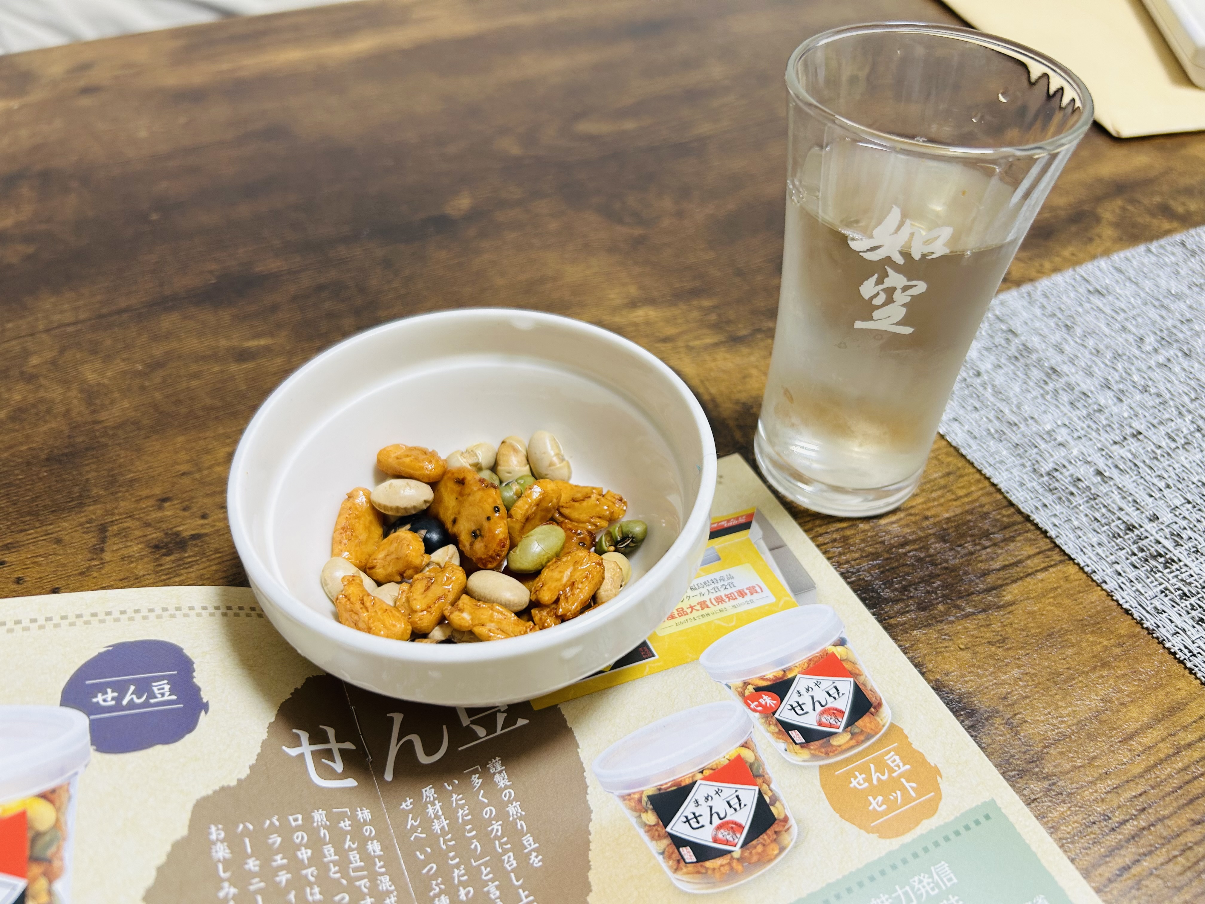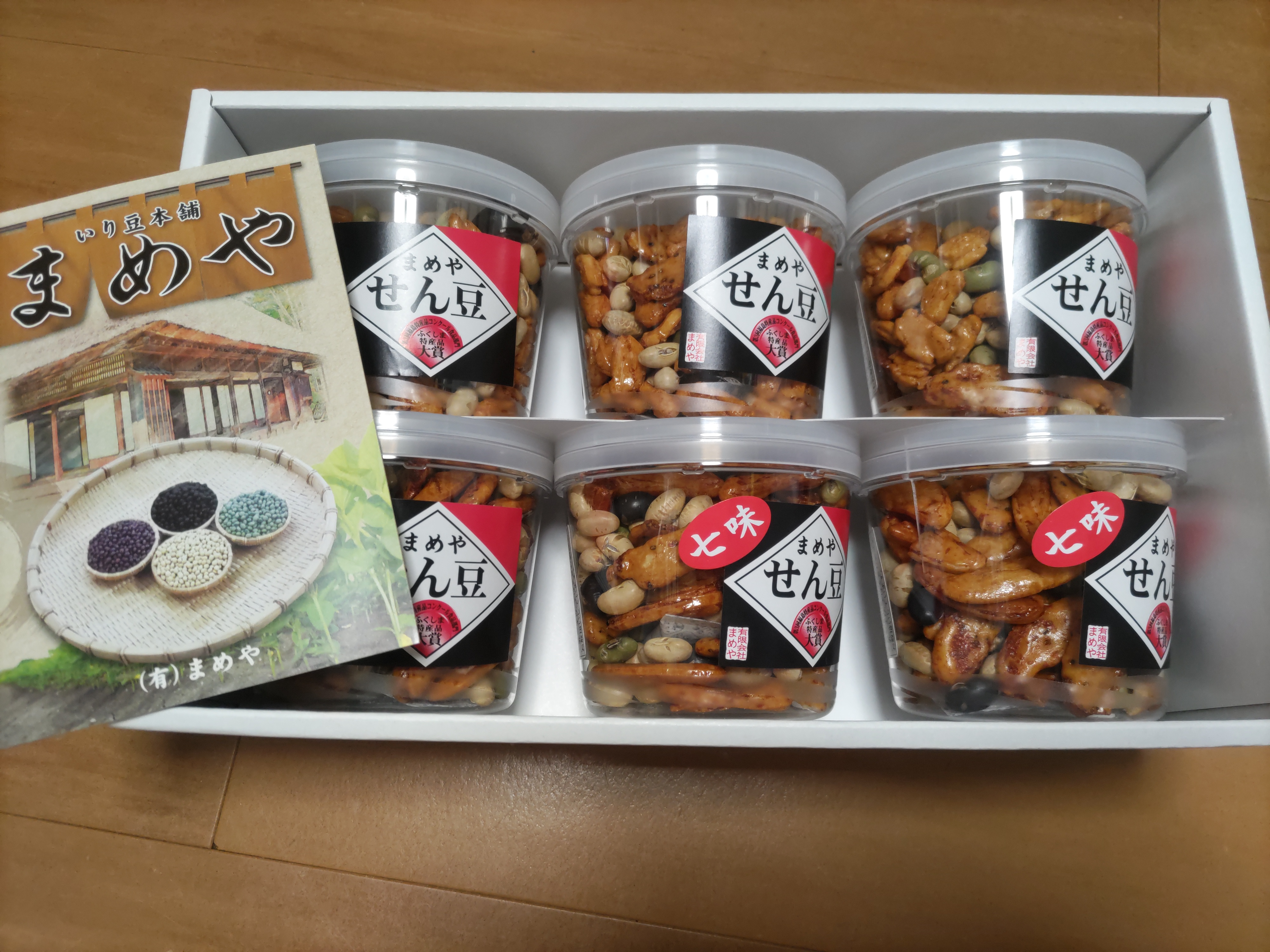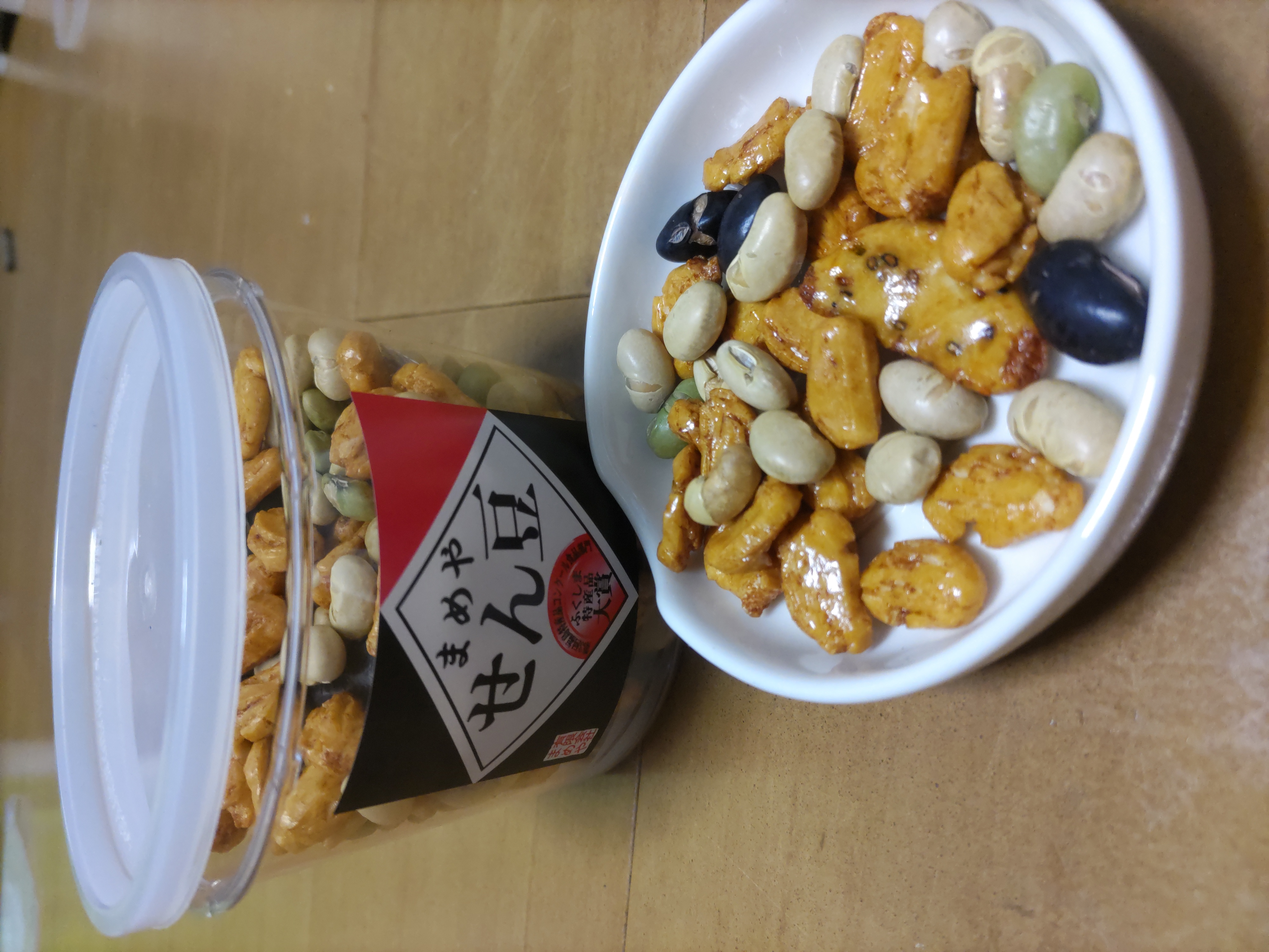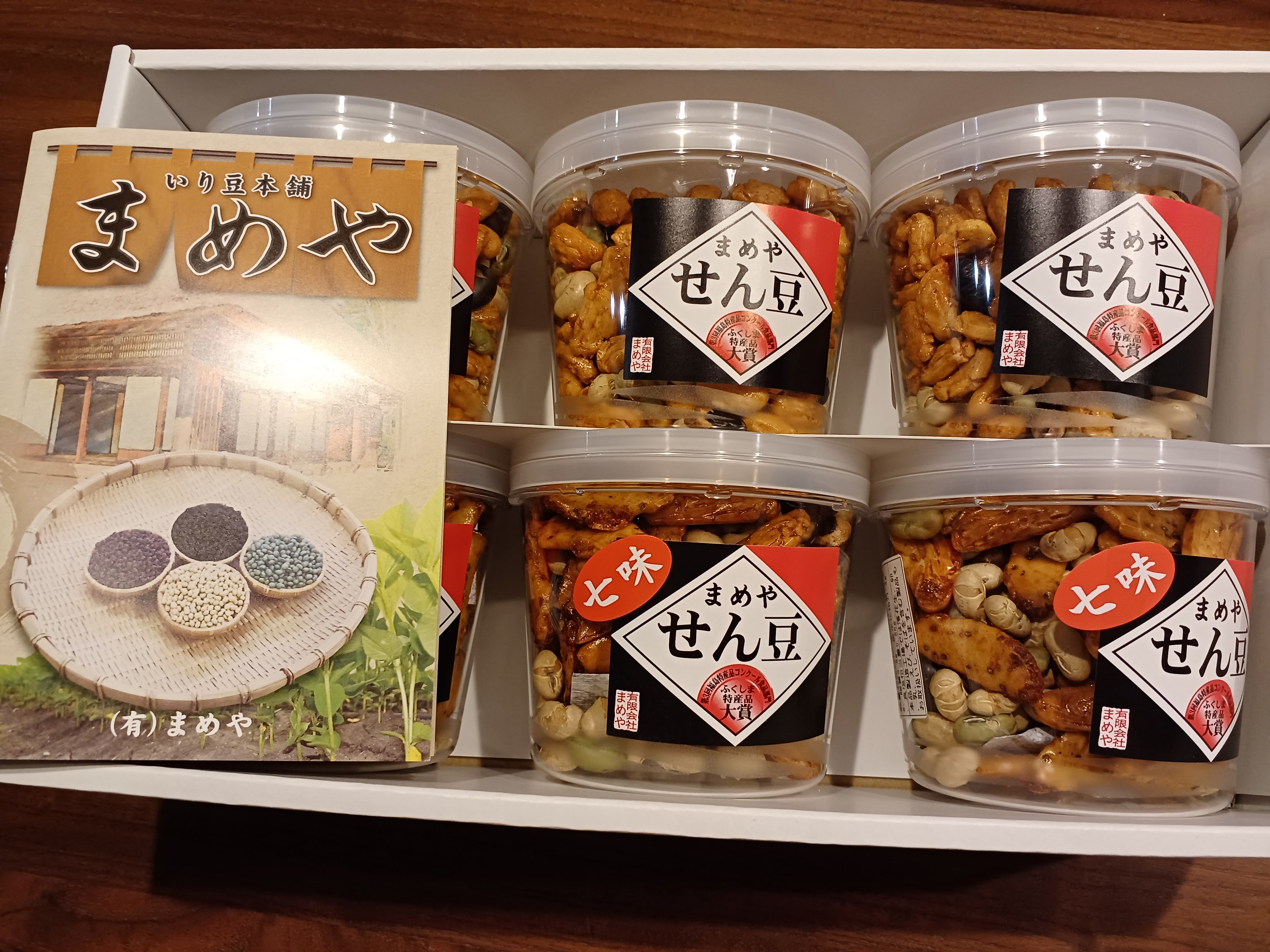 「せん豆」は、香ばしく煎り上げた国産大豆と、サクサクとした食感の柿の種を絶妙なバランスでミックスした、まめや自慢の豆菓子です。素材の持ち味を活かすため、添加物を極力使用せず、昔ながらの製法で丁寧に仕上げています。一粒一粒に込められた職人のこだわりが、素朴ながらも深い味わいを生み出し、ついつい手が止まらなくなる美味しさです。お茶請けやお酒のおつまみとしてはもちろん、健康志向の方にもおすすめの逸品です。