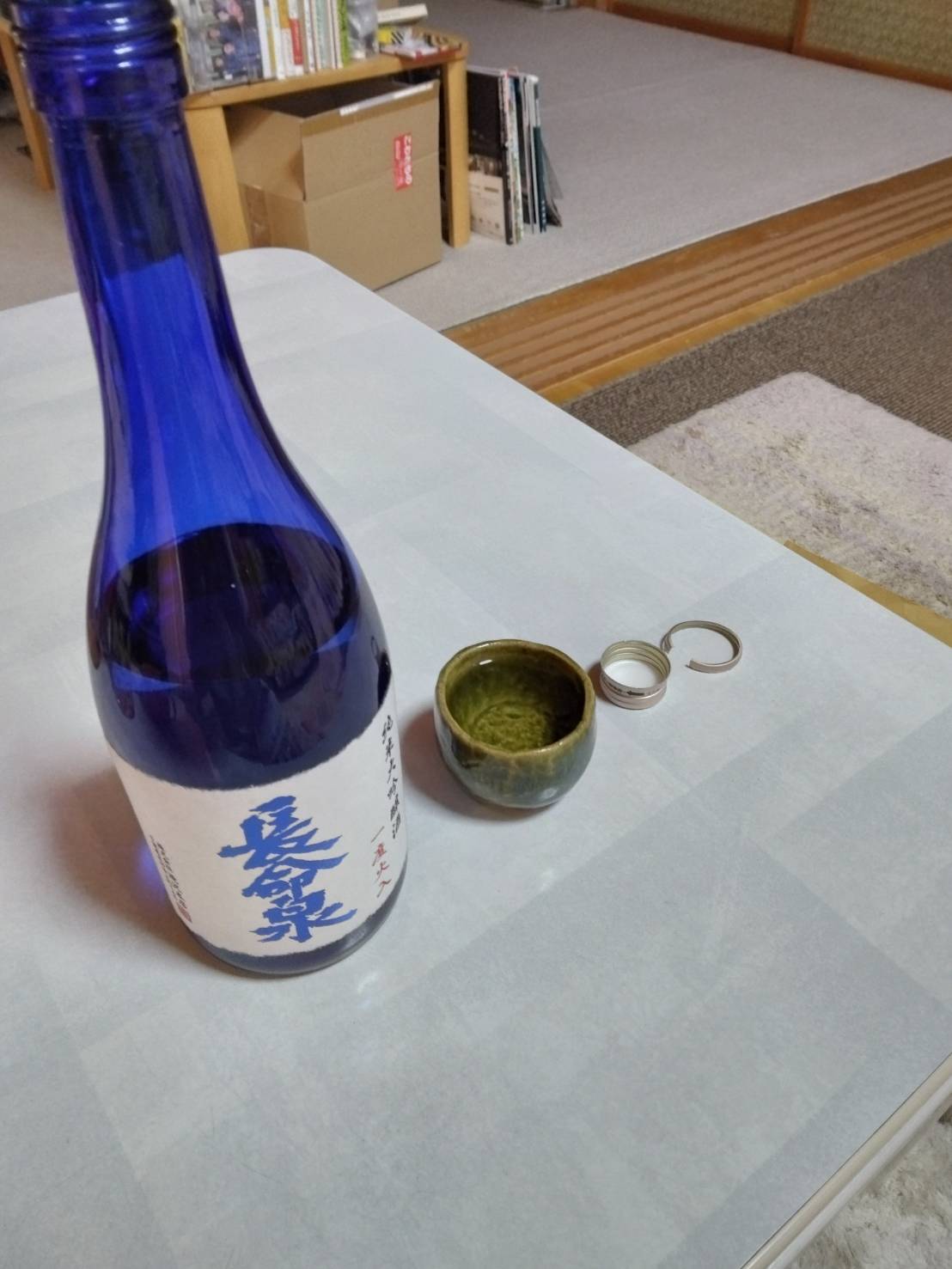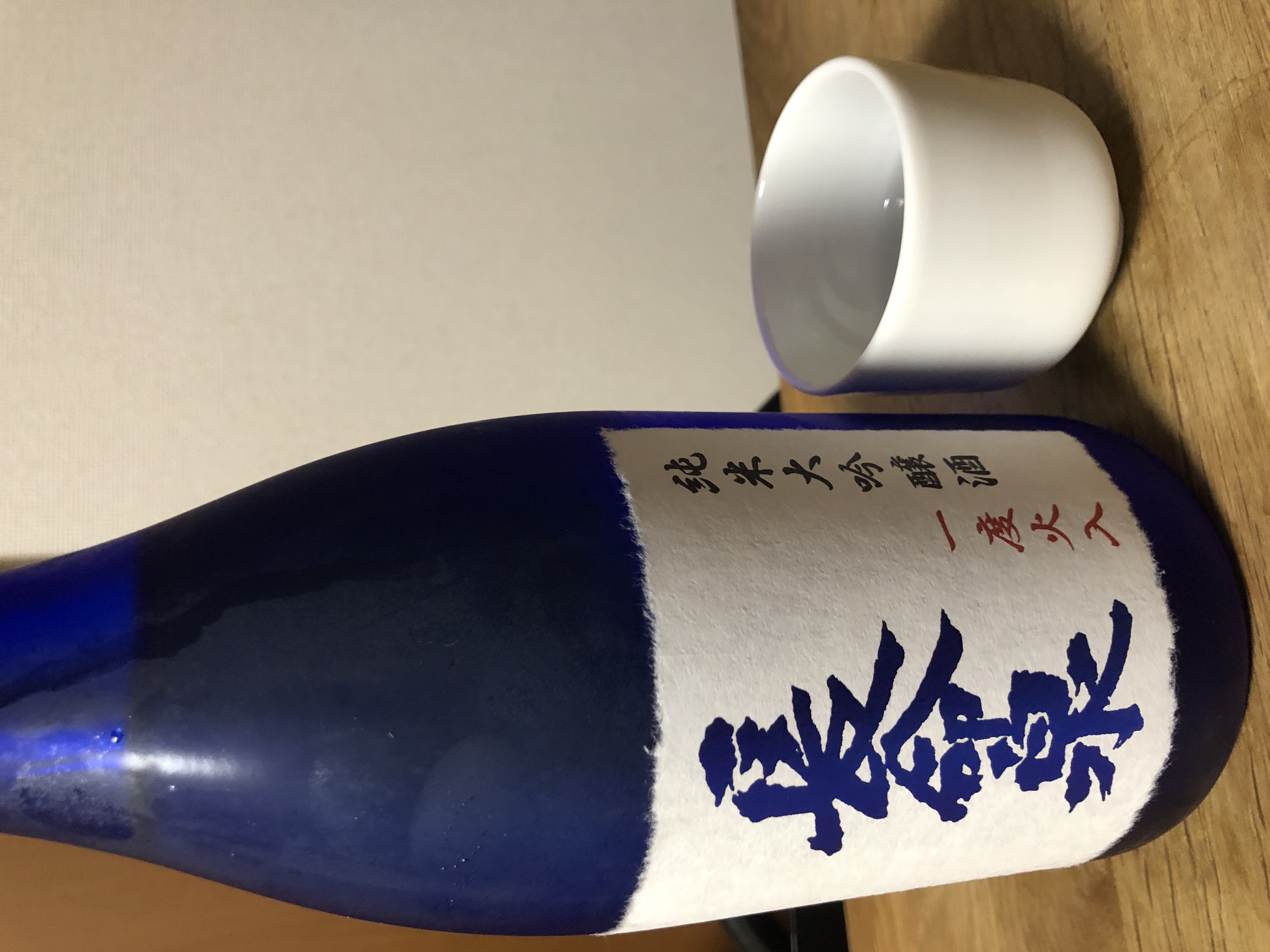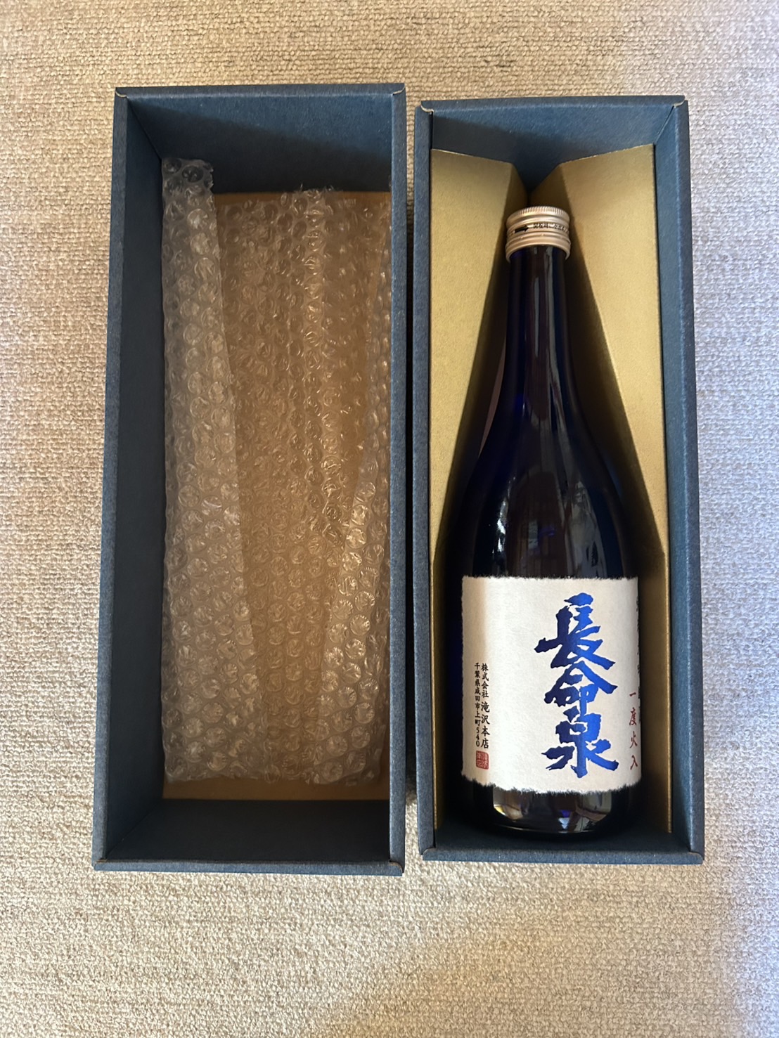 瑠璃色の瓶に詰められた「純米大吟醸酒」です。酒造好適米の代表で「酒米の王」とも呼ばれる兵庫県・岡山県産の雄町の山田錦を使用しています。純米大吟醸ならではの華やかな香りとコクのある味わいが特長です。通常は2度行われる火入れを瓶詰め時の1度だけに抑え、繊細な香りを残しています。瓶の色合いから女性に好まれる商品で、紺色のかぶせ箱に入っており、ギフトにもおすすめです。