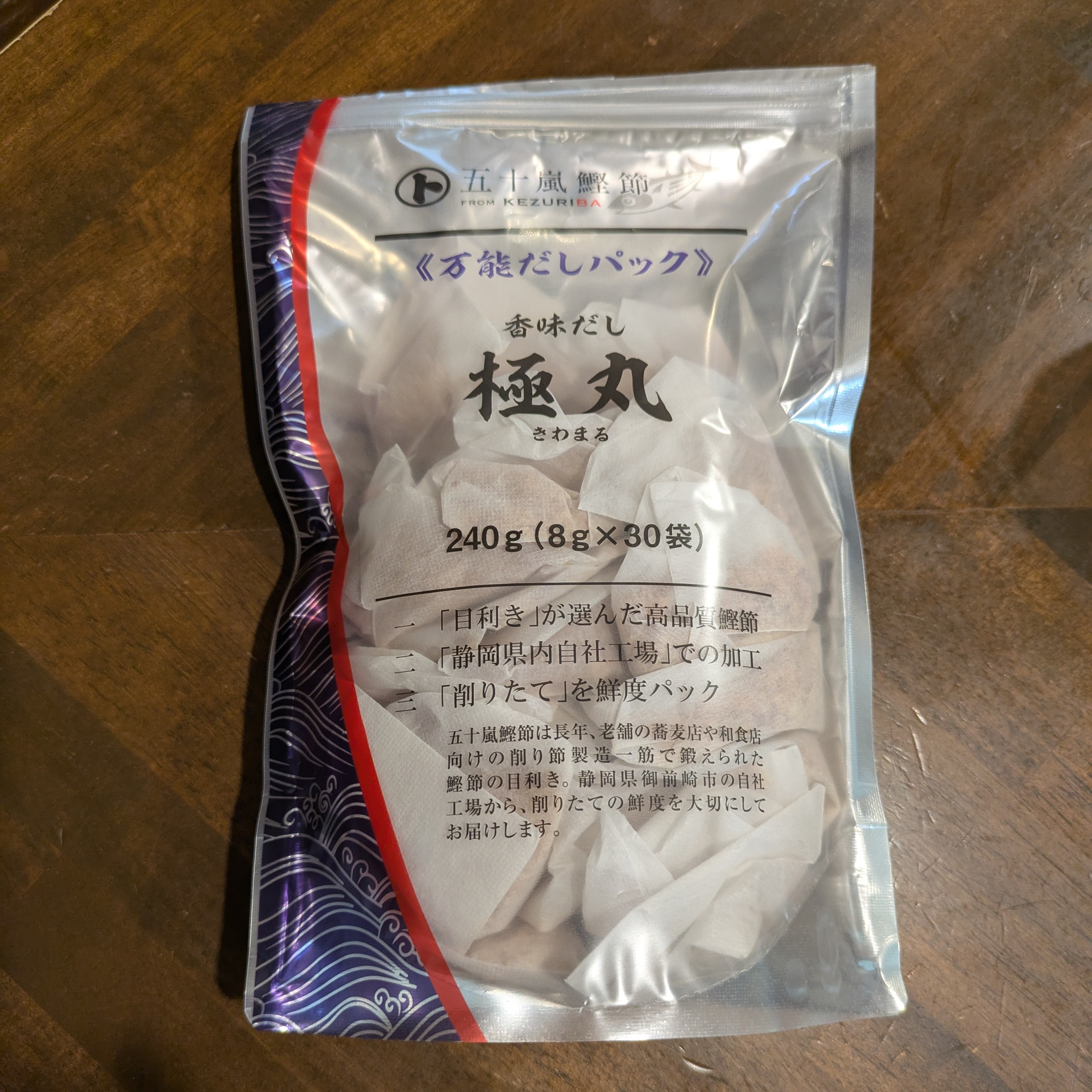 削り節製造一筋で培った目利きによって厳選した素材でつくった「だしパック」です。力強い香りと濃厚ですっきりとした味わいが特長の鰹荒節をベースに、うるめ節、さば節、昆布を合わせ、だしの旨味を最大限に引き立てています。自社工場で削りたてをすぐにパックすることで、天然素材の豊かな香りのまま届きます。家庭でも使いやすいよう、醤油や砂糖で味を整えてあるので、基本的には味付けは不要です。保存しやすいチャック付きパッケージです。