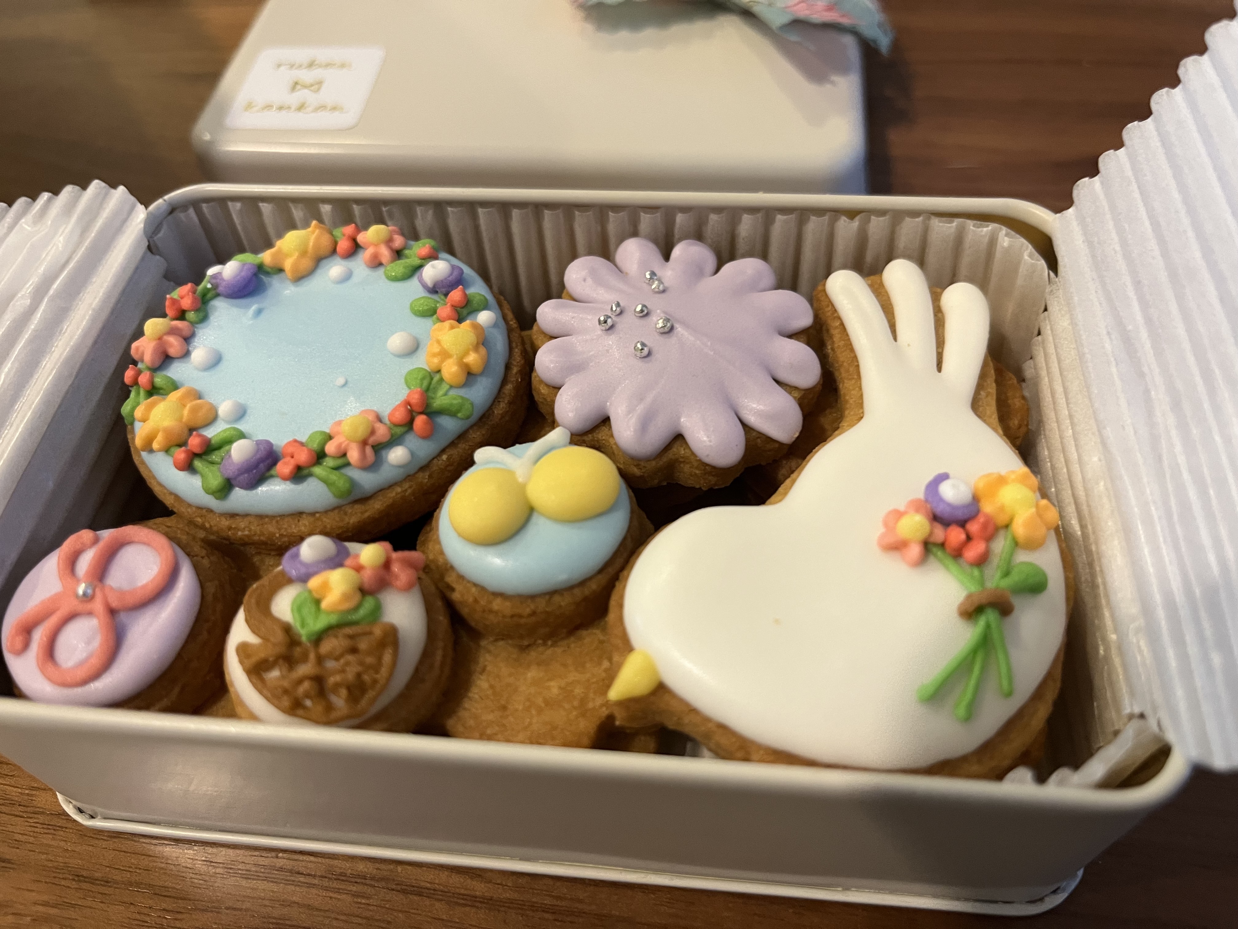 その下にはお花の形の素焼きクッキーがたくさんはいっています。普段ならこんなに可愛いアイシングクッキーは最後まで取っておくタイプなのですが、ここは感想を述べるために思い切って早速いただくことにします笑。