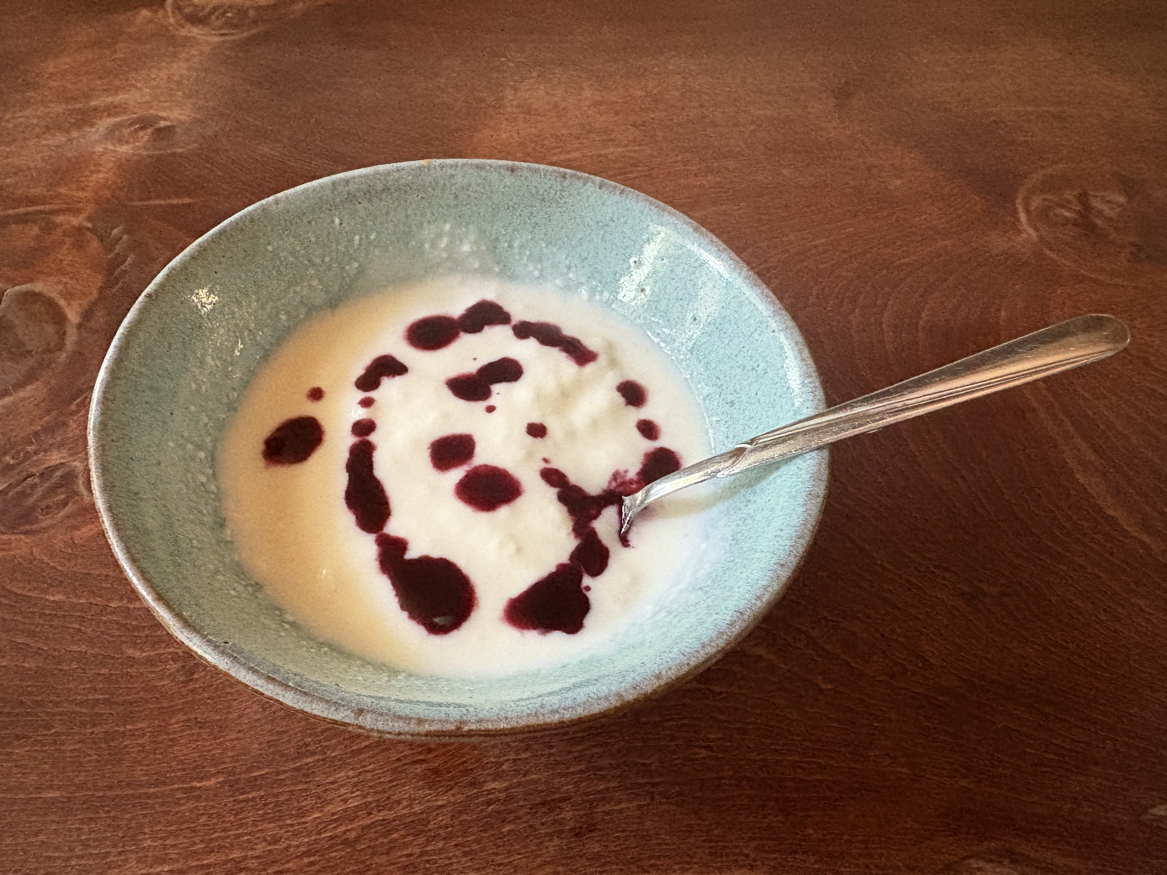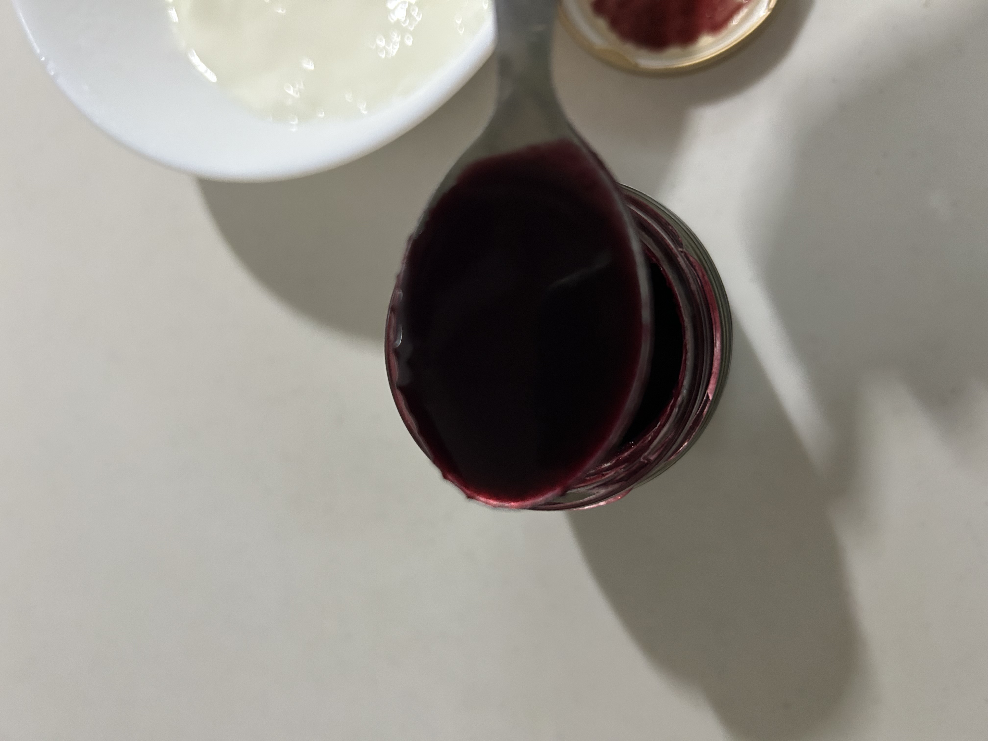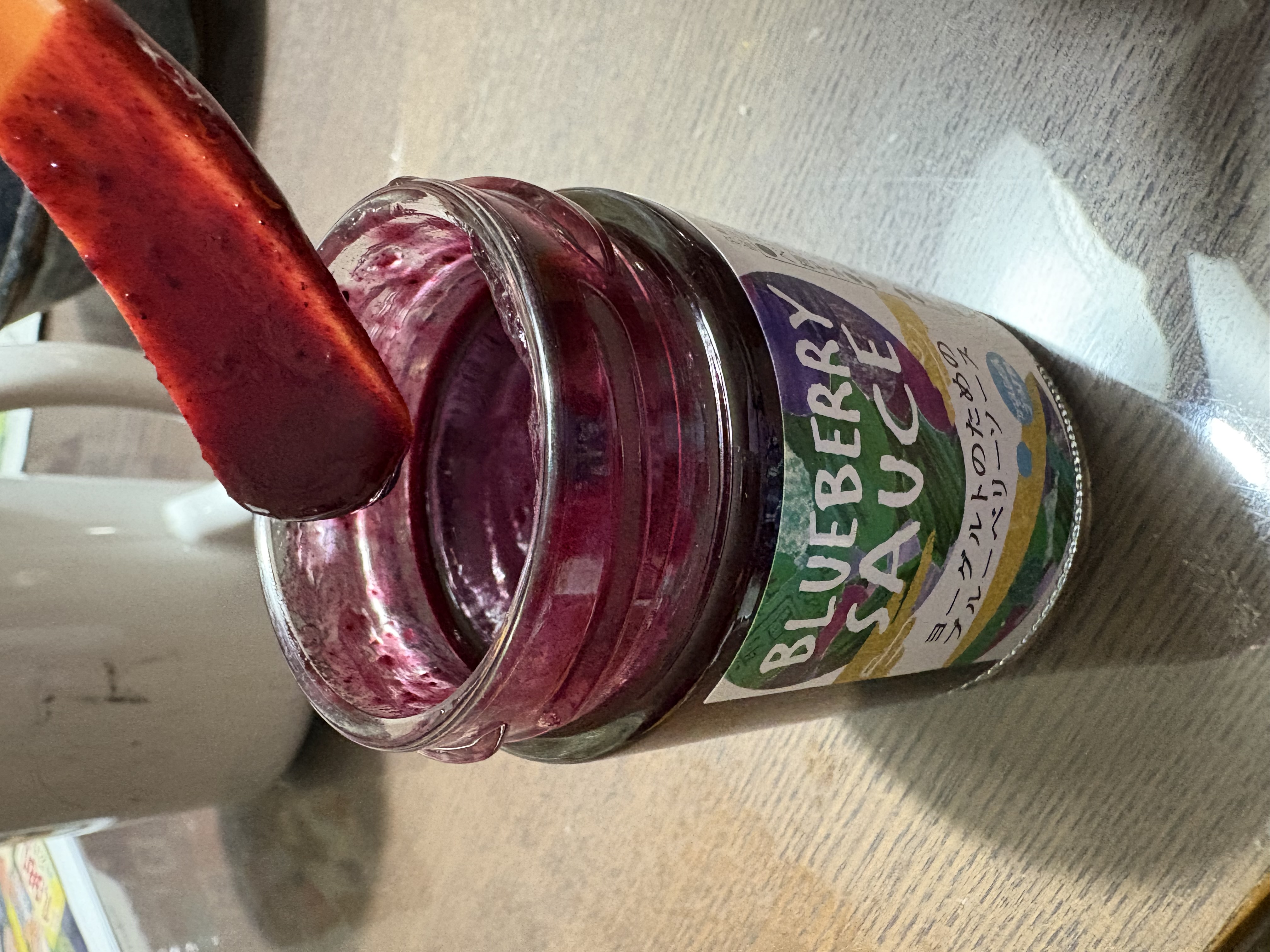 瓶の蓋を開けてスプーンで掬ってみると、粘度は少なめでけっこうサラサラとしています。まずはヨーグルトにかけて食べてみると、想像していたよりもずっと甘さは控えめでした。ブルーベリーの自然な甘さと酸味が心地よく、ヨーグルトに良く合います。ジャムのような甘さは無いので、チーズケーキのような甘いスイーツにかけても美味しいのではと思って試してみると、とても美味しいチーズケーキになりました。ブルーベリーの酸味がチーズケーキを引き立てて食べやすかったです。クリームチーズとの相性も非常に良いと感じました。