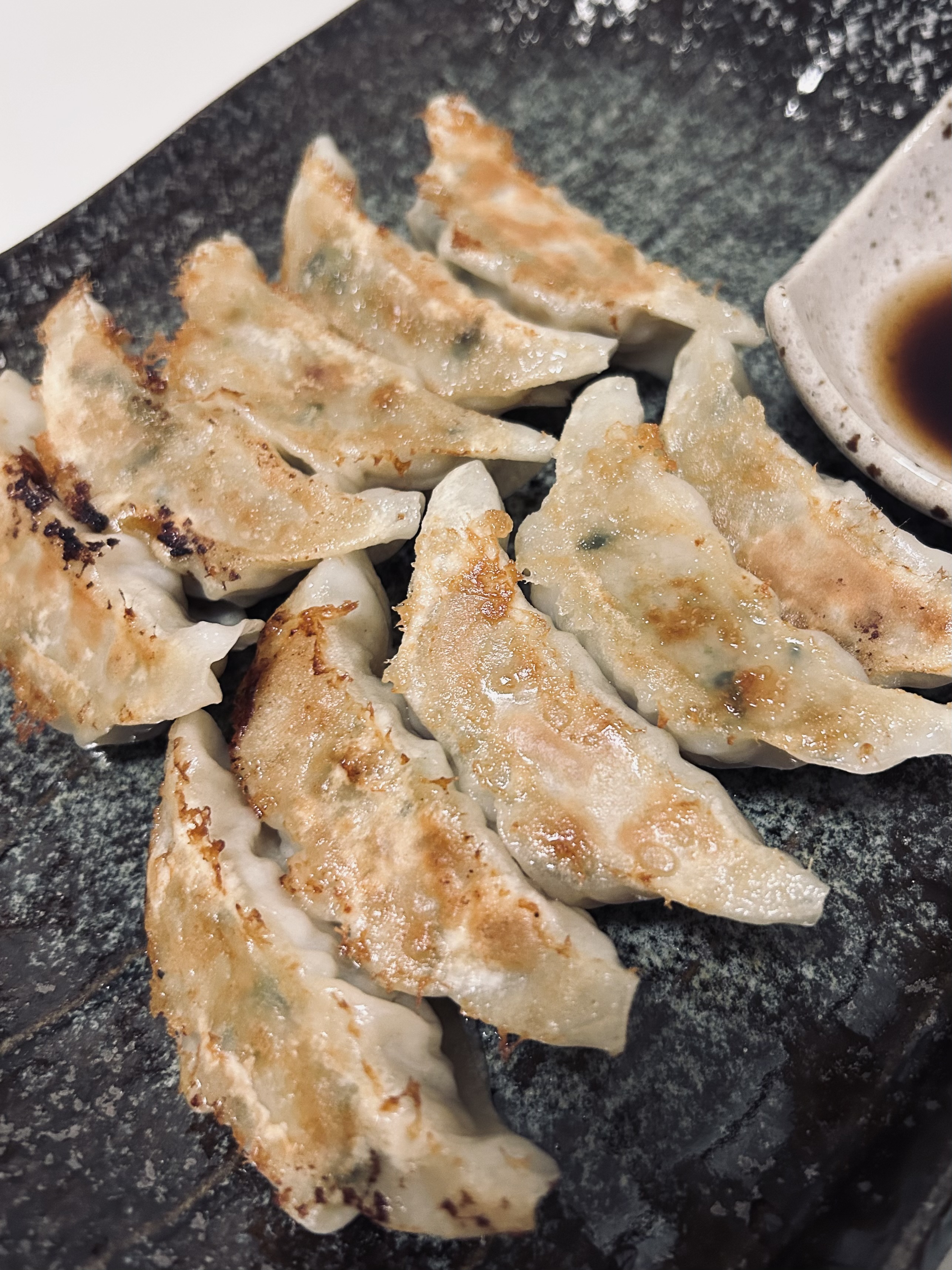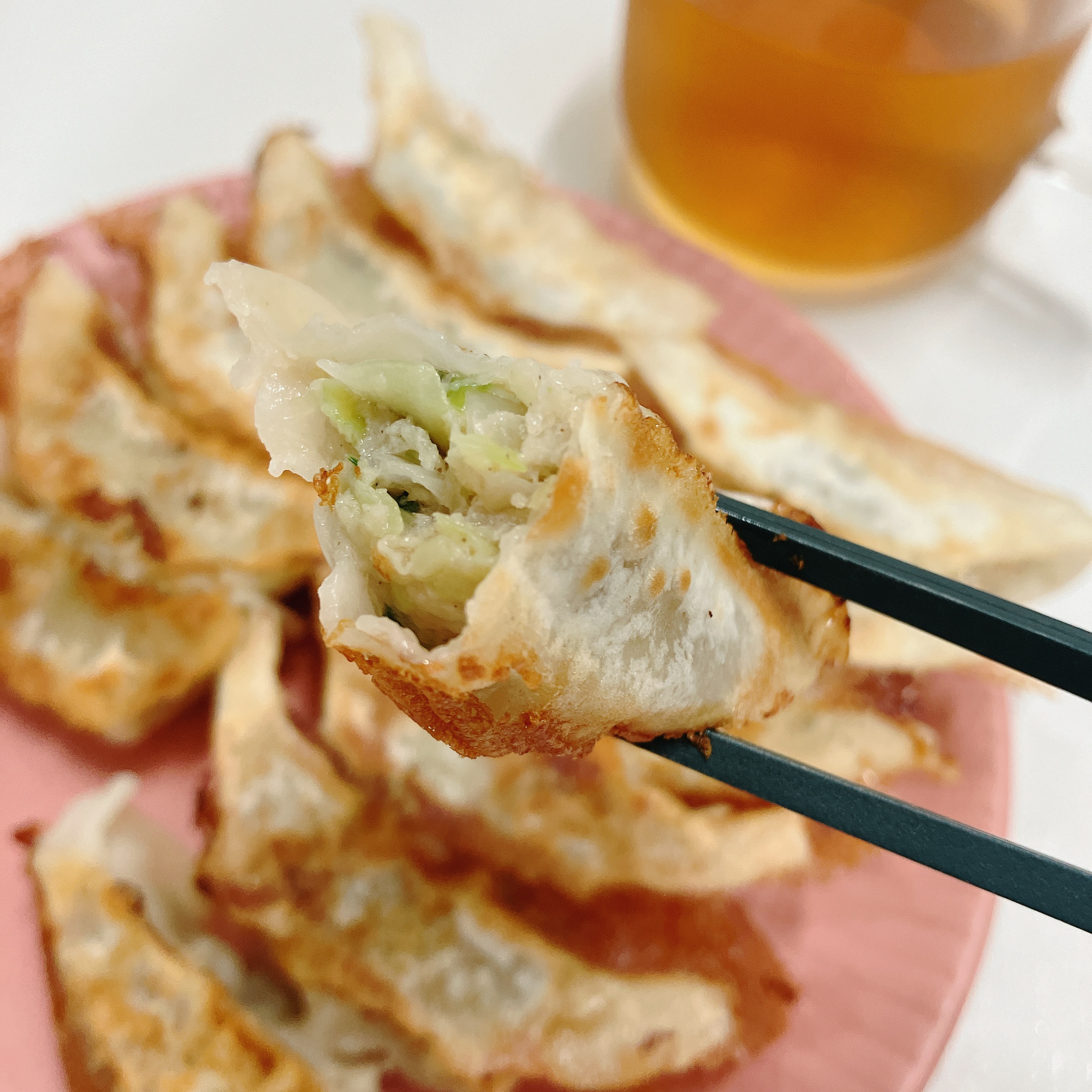 餃子の皮は薄めだけどモチモチで、焼き目がサクサク。