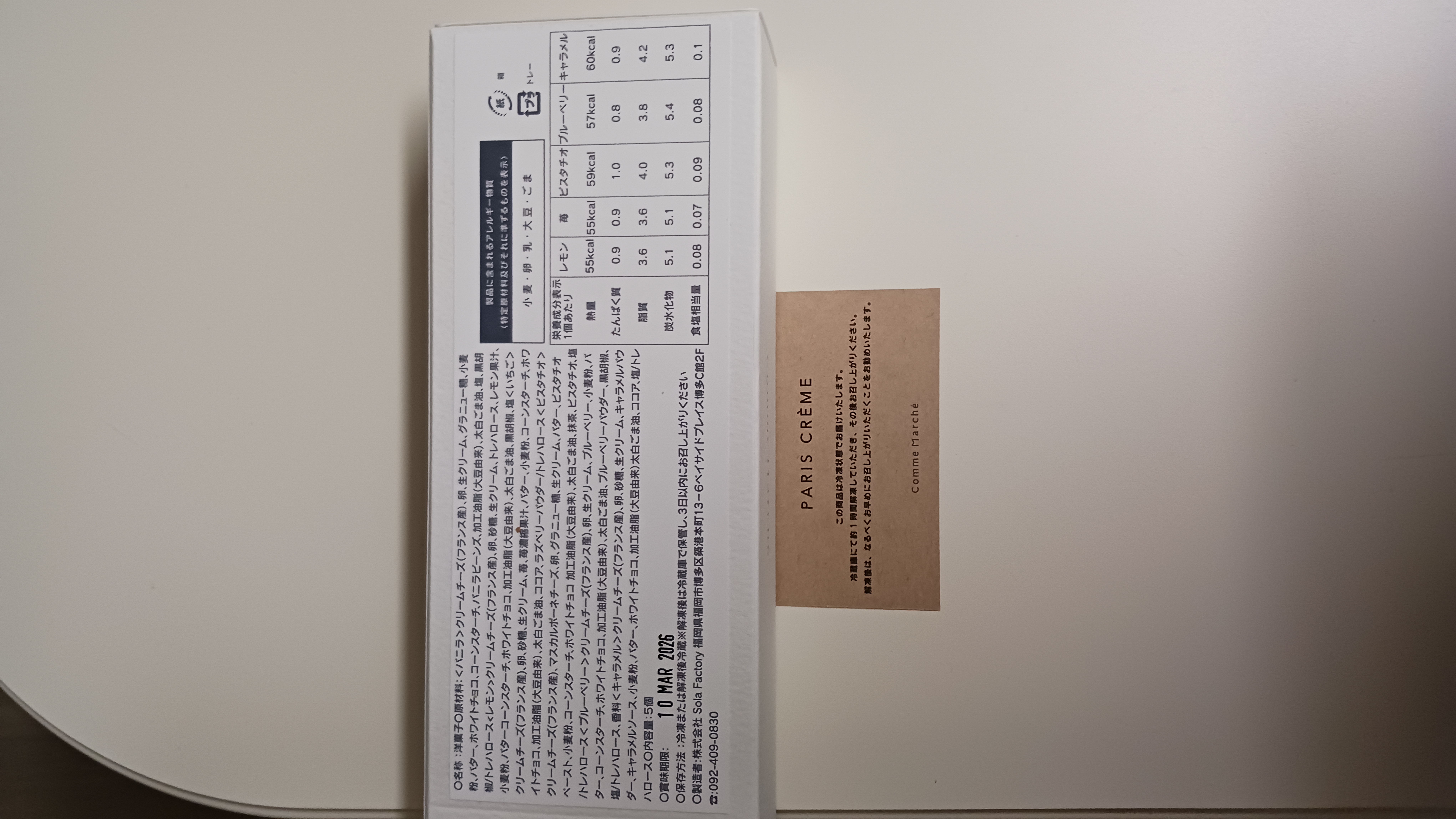 博多にある人気フランス料理店「restaurant sola」のオリジナル新感覚スイーツです。スプーンですくって成形した「クネル形」のチーズクリームをサブレの上にのせています。さわやかな酸味の「レモン」、甘酸っぱい「ストロベリー」、ナッツの香りが香ばしい「ピスタチオ」、フルーティーな甘みの「ブルーベリー」、甘く濃厚な風味の「キャラメル」のカラフルな5色がセットになっています。スタイリッシュなギフトボックスに入って届くので贈り物にもおすすめです。
