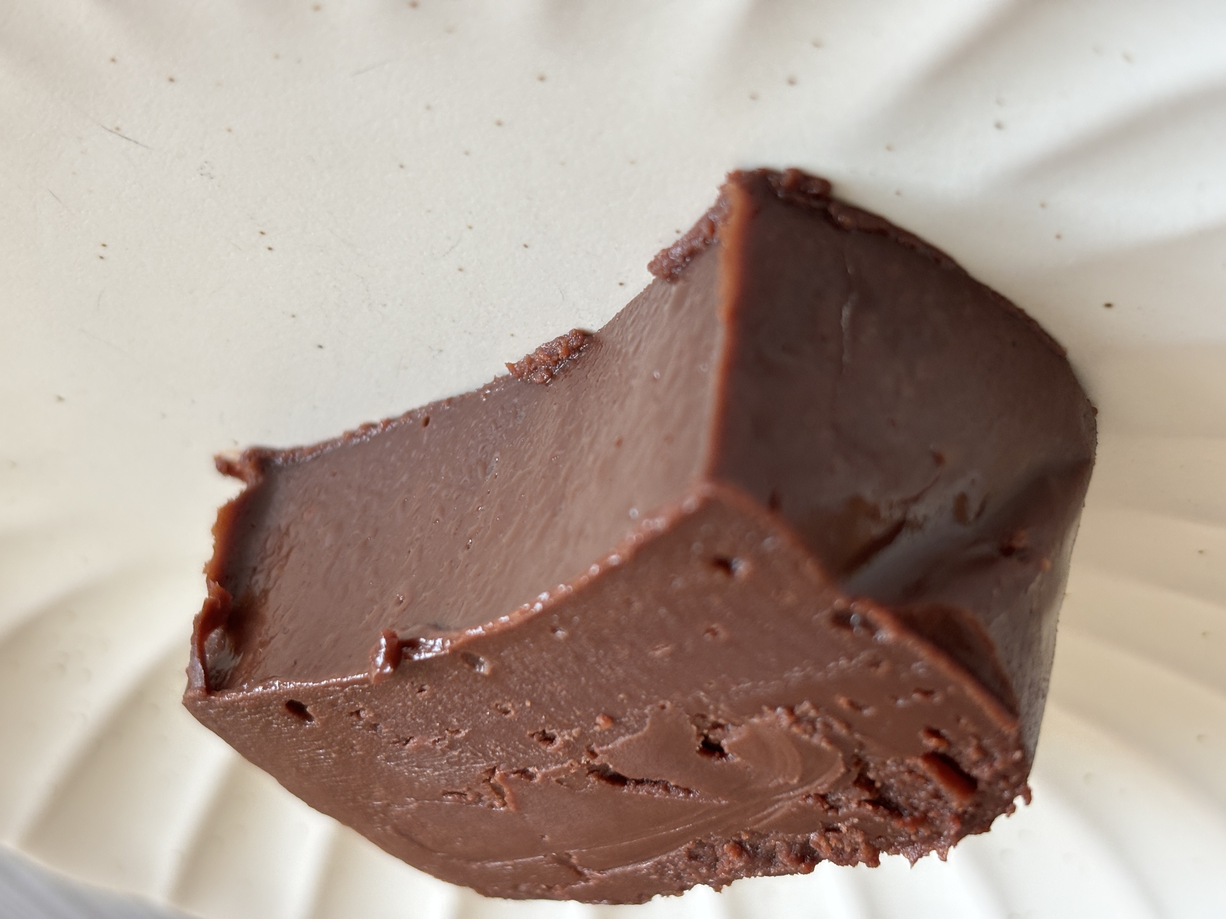 とても濃厚なチョコレートで、スライスしてから、食べる前の時点で、「これは、切ってから食べるまでの時間で、確実に味わいが変わるな!」と、見た目だけでも分かるほどでした。