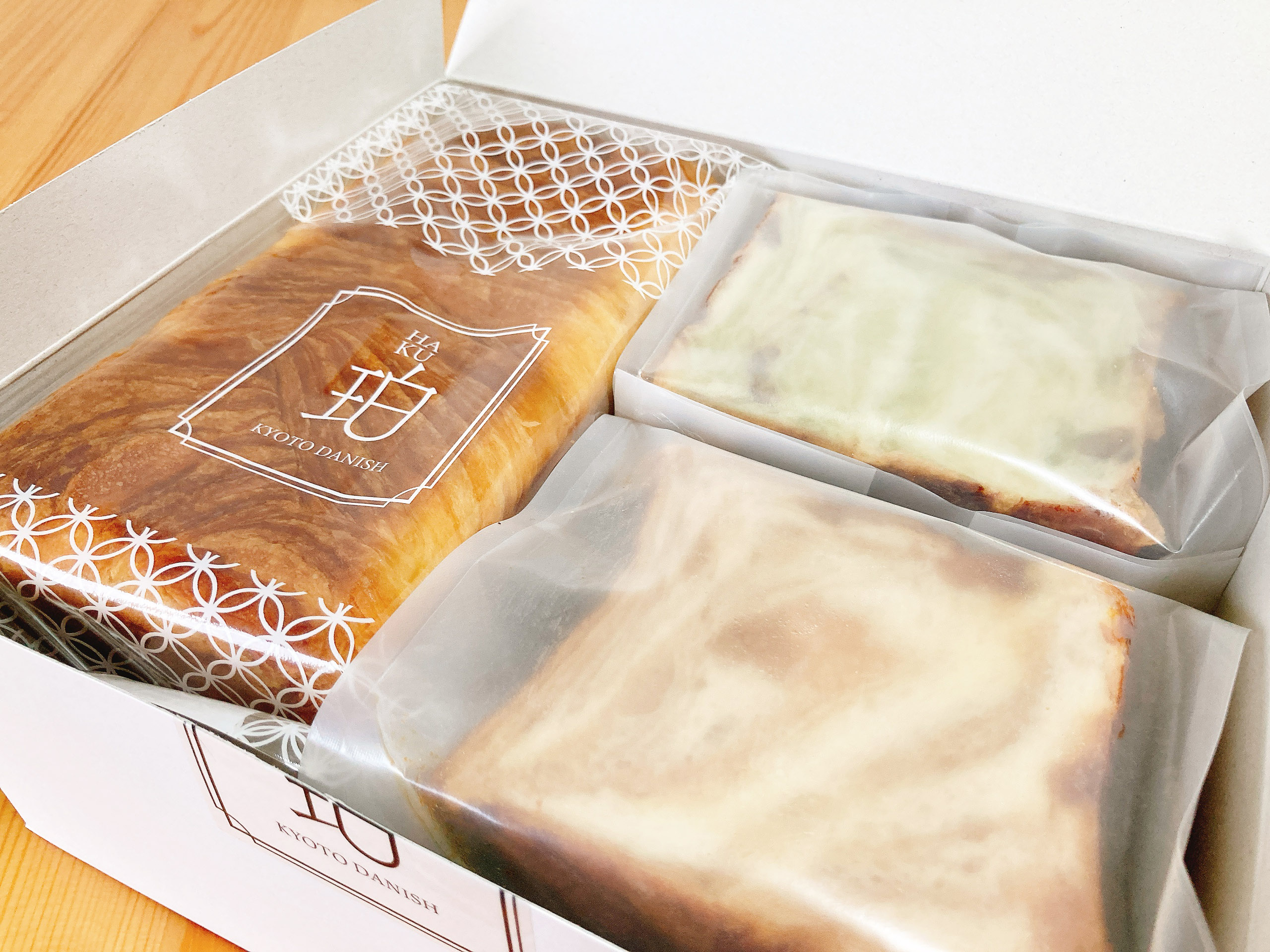 箱の中には3種類のデニッシュがきっちりと収まっています。