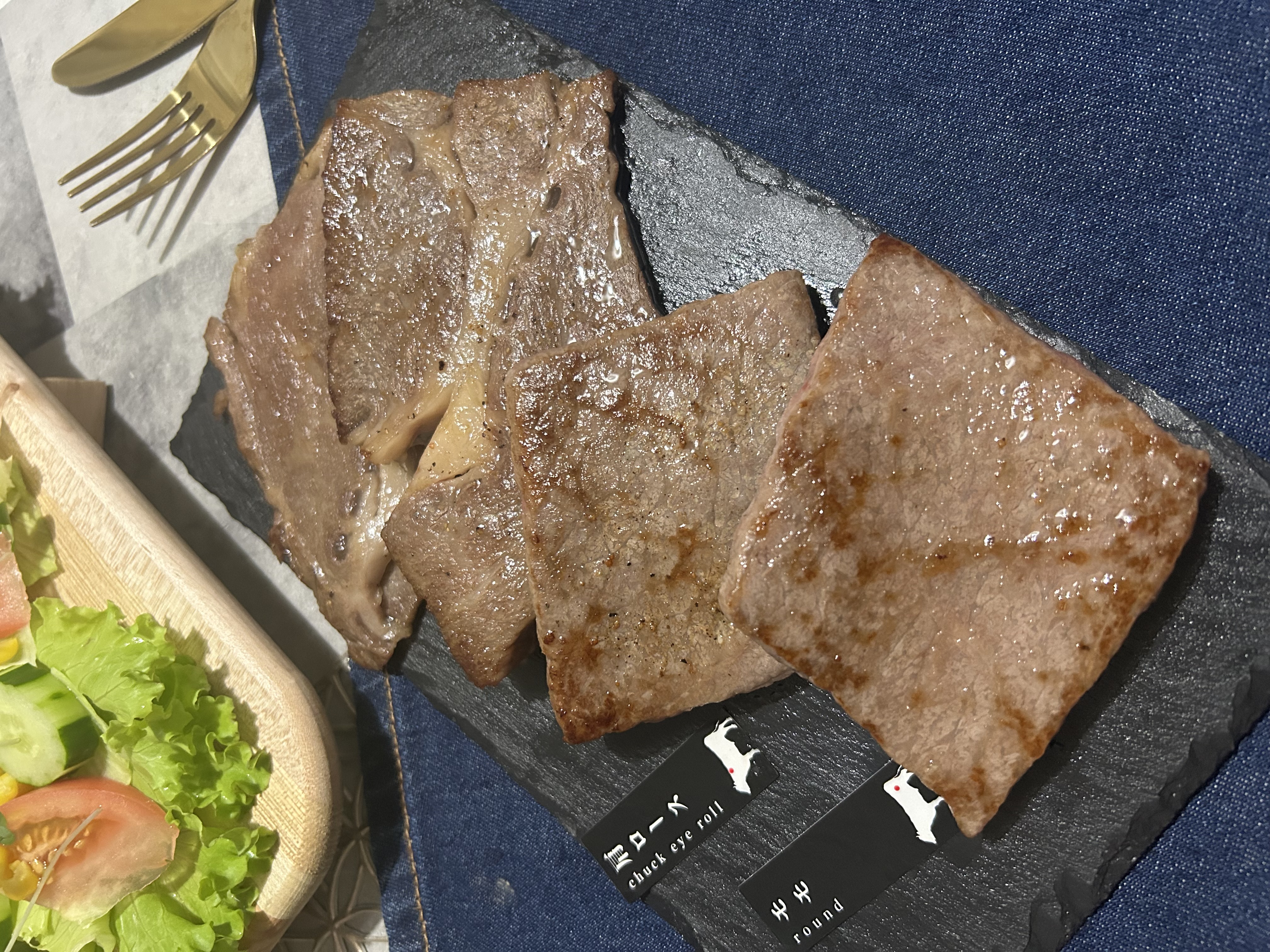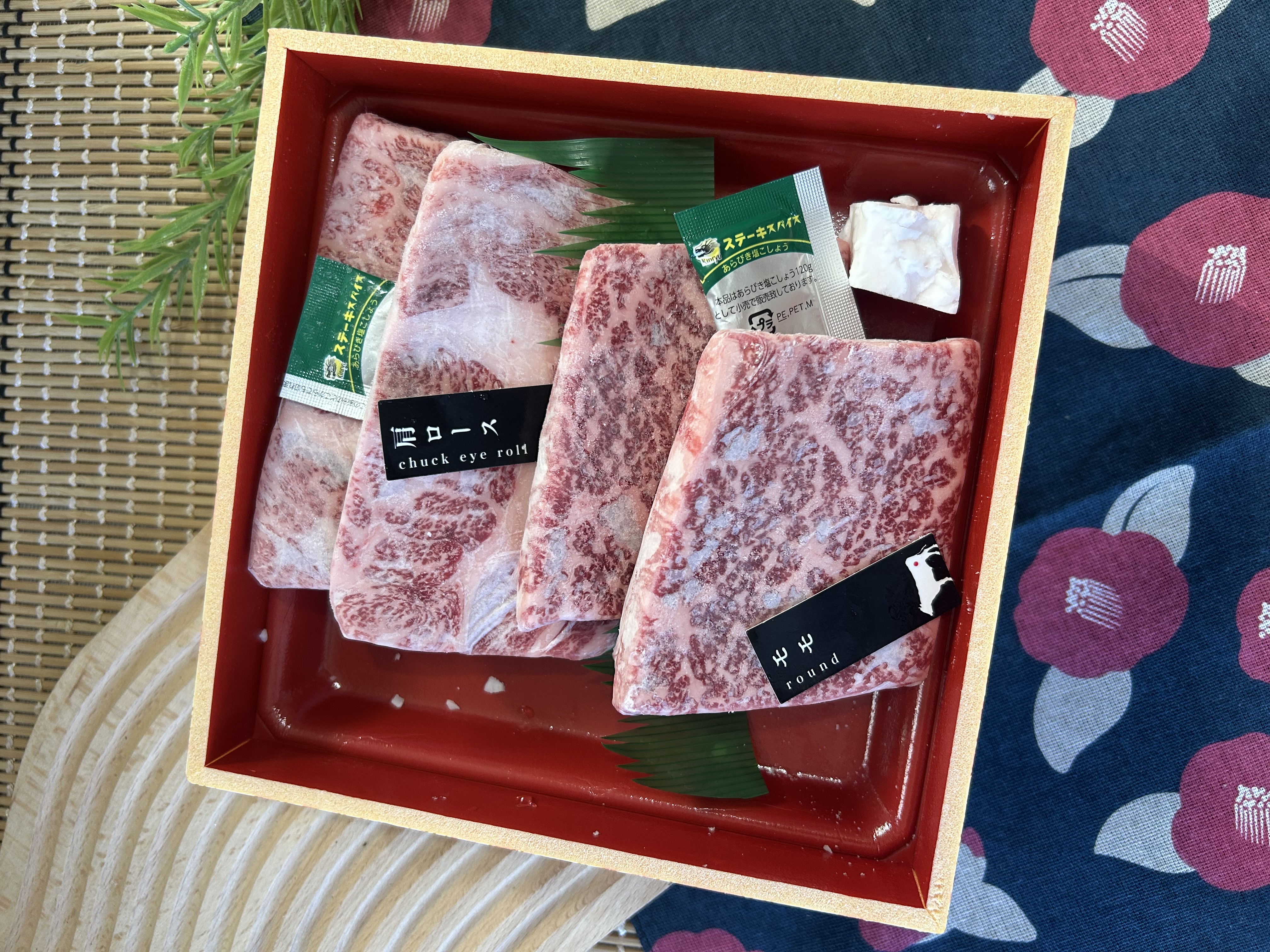 鮮やかな赤身の色合いに、きれいな霜降が入りそれだけでもワクワク感が止まりません。