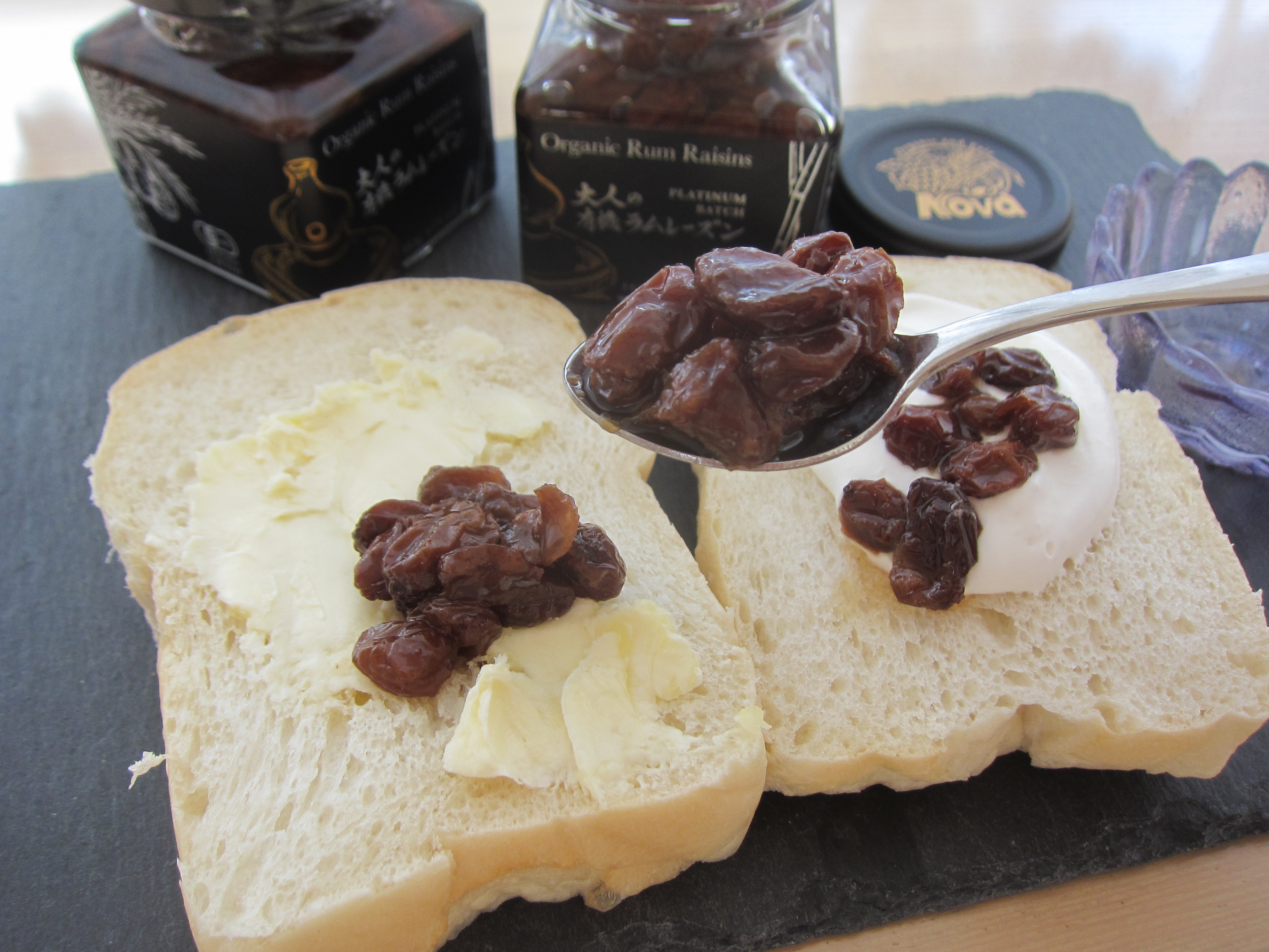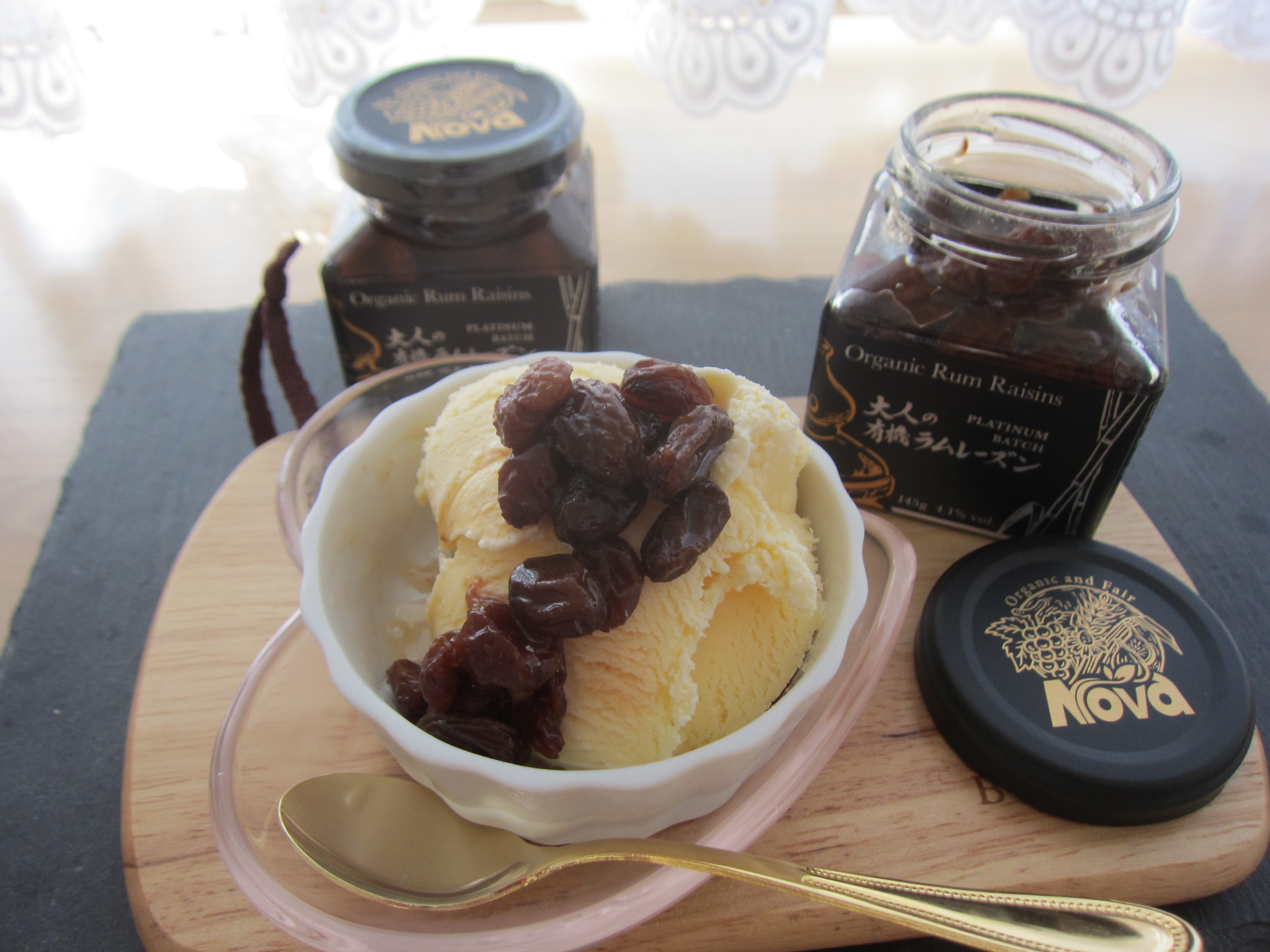 芳醇なラム酒に漬け込まれた「レーズン」です。カリフォルニアの契約農家で育てられた有機レーズンと有機黒糖を原料にした特製ラム酒で仕上げています。この商品のためにラム酒を造る蒸溜機までもNOVA社で製造しています。そうして出来上がったラム酒の奥行きある味わいがレーズンの甘さを包み込んだ大人だけが楽しめる贅沢なデザートです。そのまま食べるのはもちろん、アイスクリームやヨーグルト、カナッペのトッピングなど幅広く活用できます。