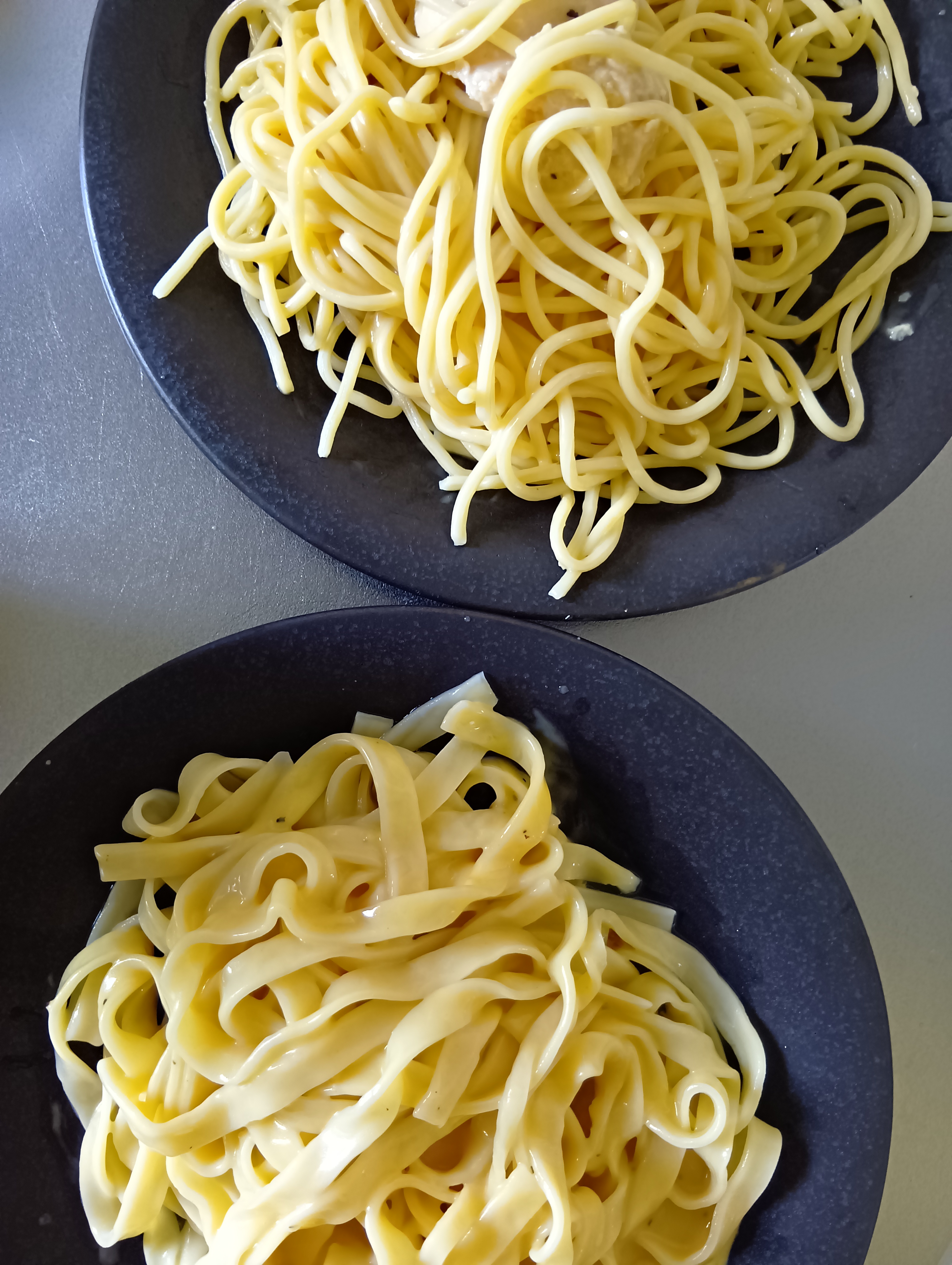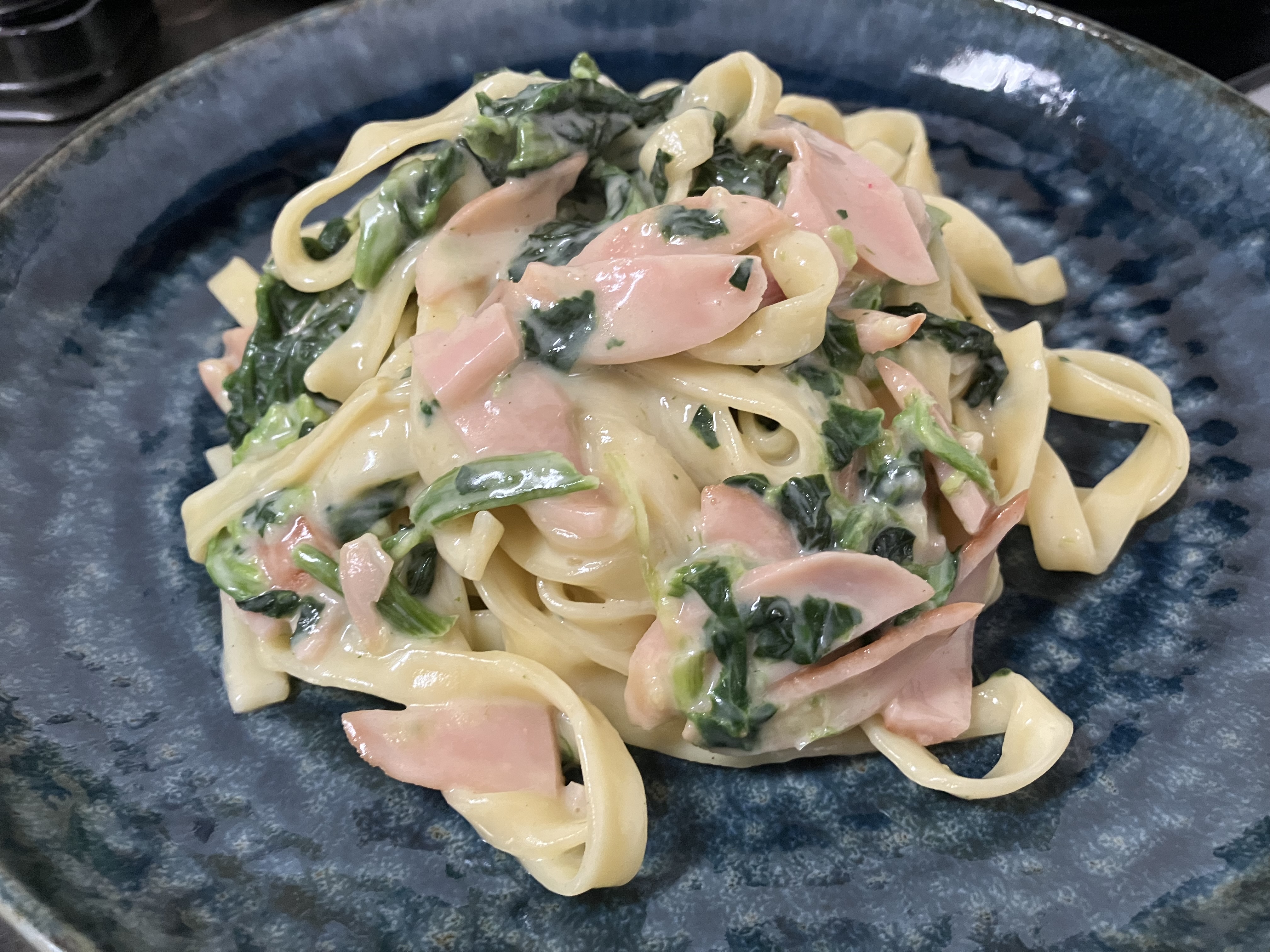 (1)原料に塩が含まれているので塩茹でしません。※ただ茹でるだけ。お湯を沸騰させて麺を投入します。