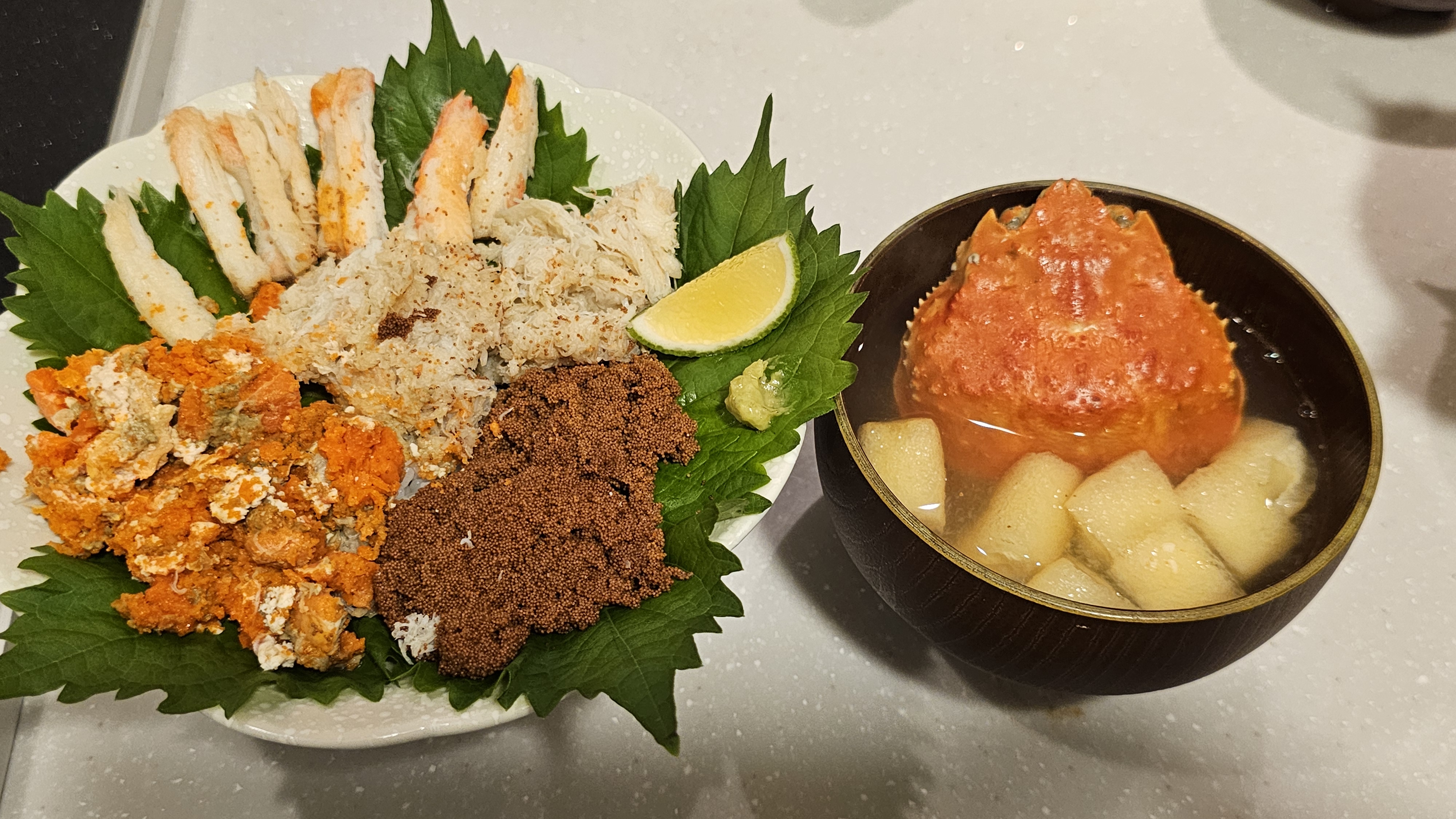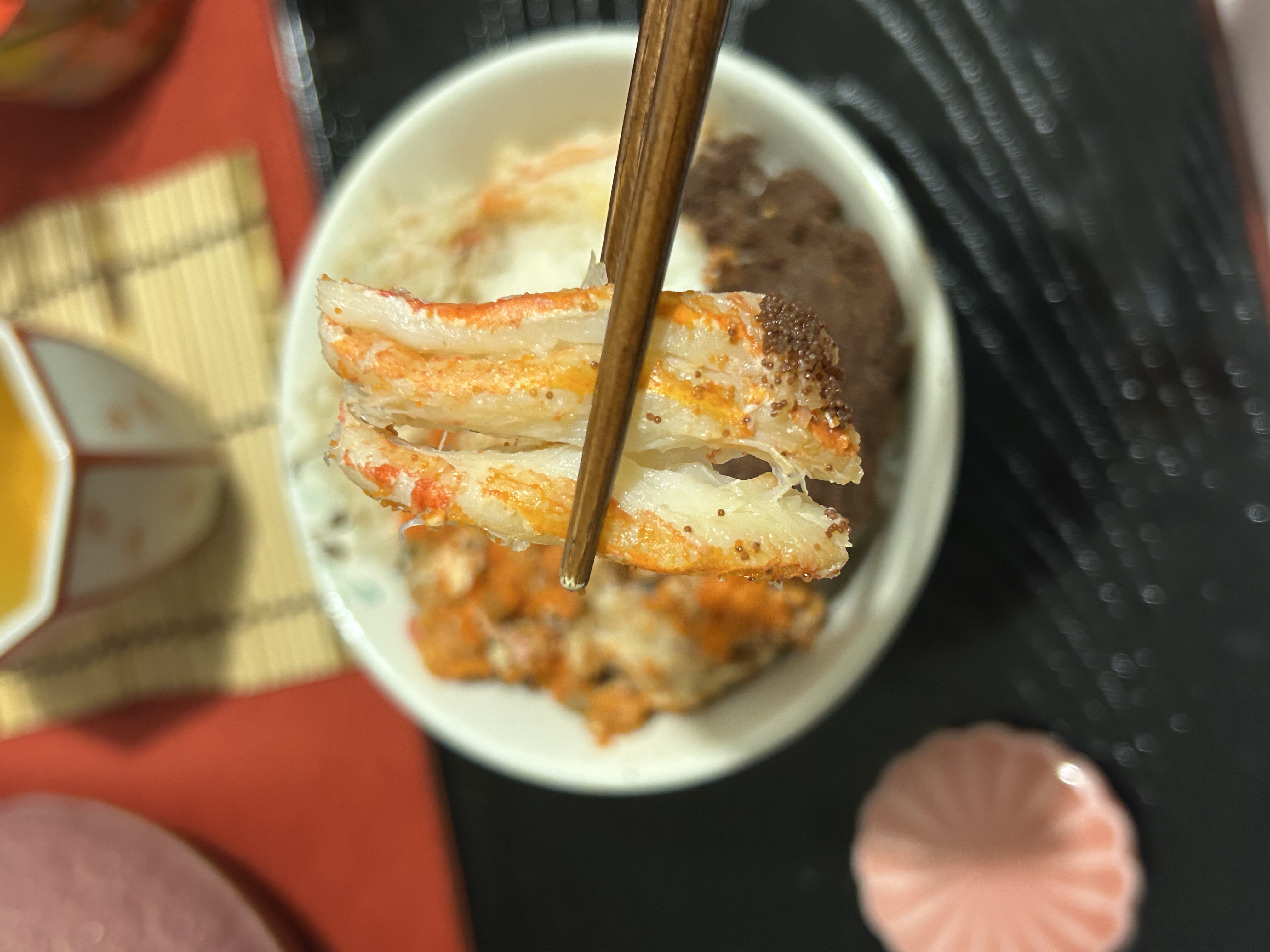 まず、身をほぐして甲羅にのせられた香箱ガニは、お寿司屋さんや高級な和食屋さんで、それなりな金額を払って食べるものと考えています。