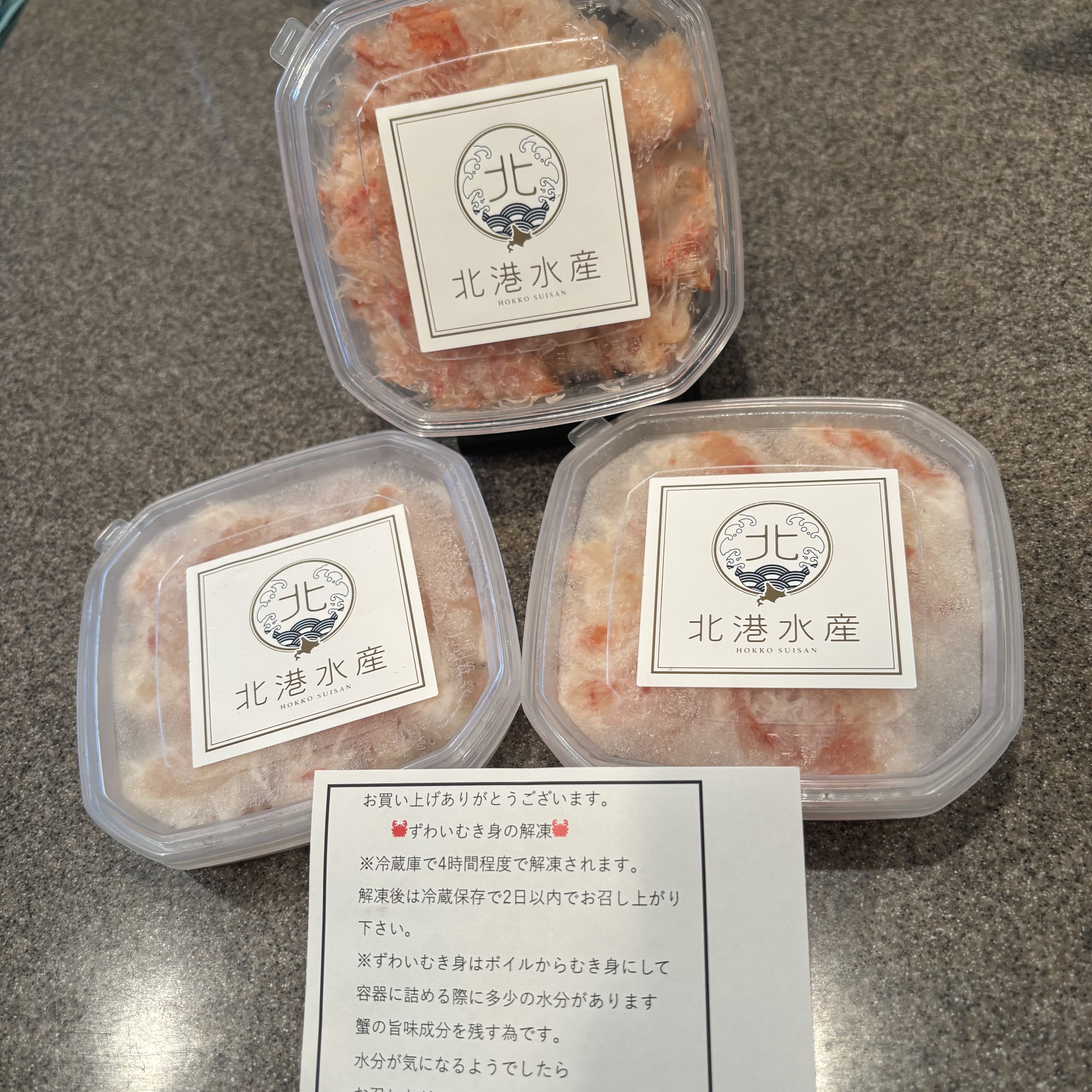 北海道で水揚げされたオオズワイガニを使用したむき身です。丁寧にむき身にした状態のズワイガニが、1パック80g入りで3パック届きます。そのまま食べるだけでなく、かに丼やかに鍋、かにパスタなど多様な料理に使えて便利です。
