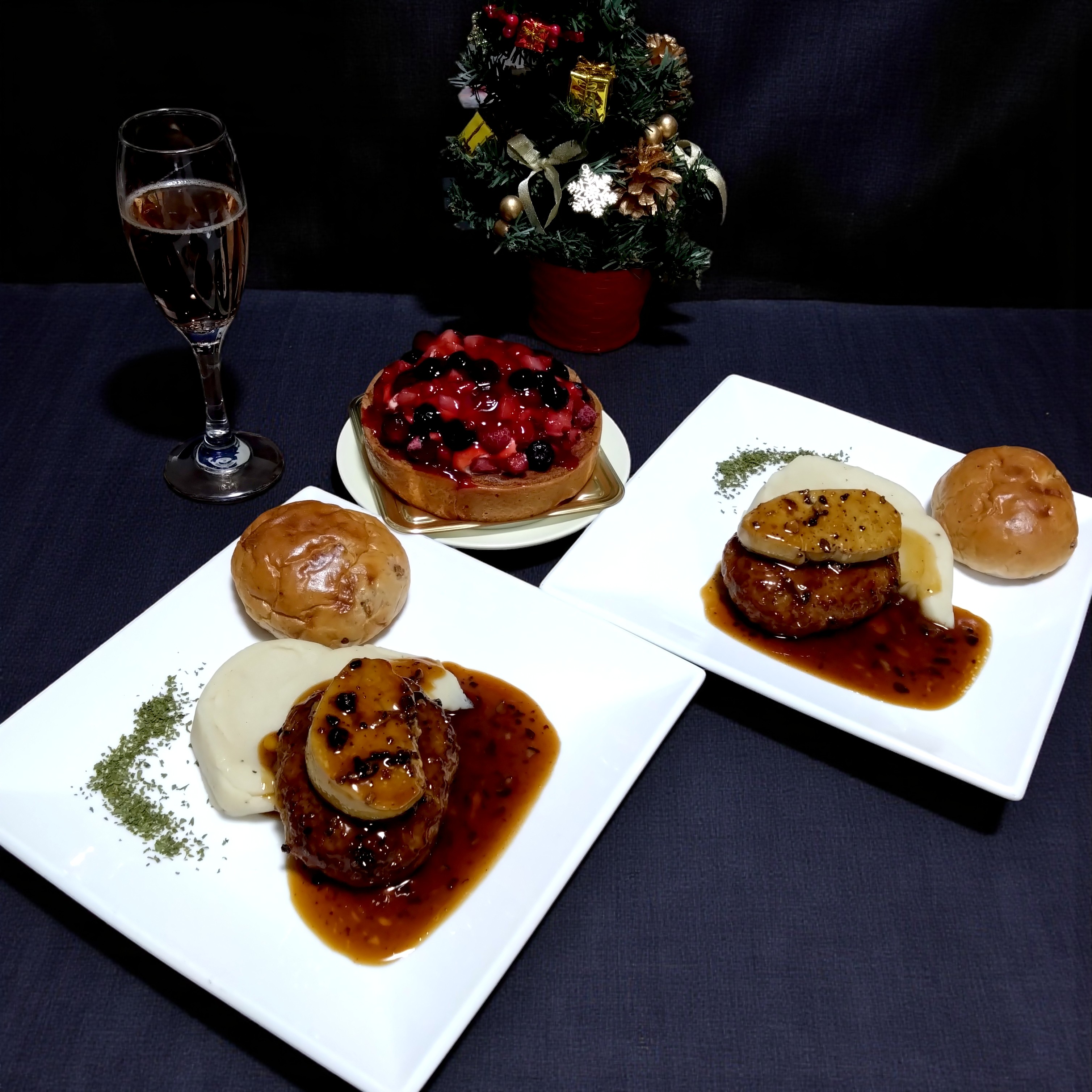 ロッシーニ風ハンバーグセット(赤い果実のドームタルト)