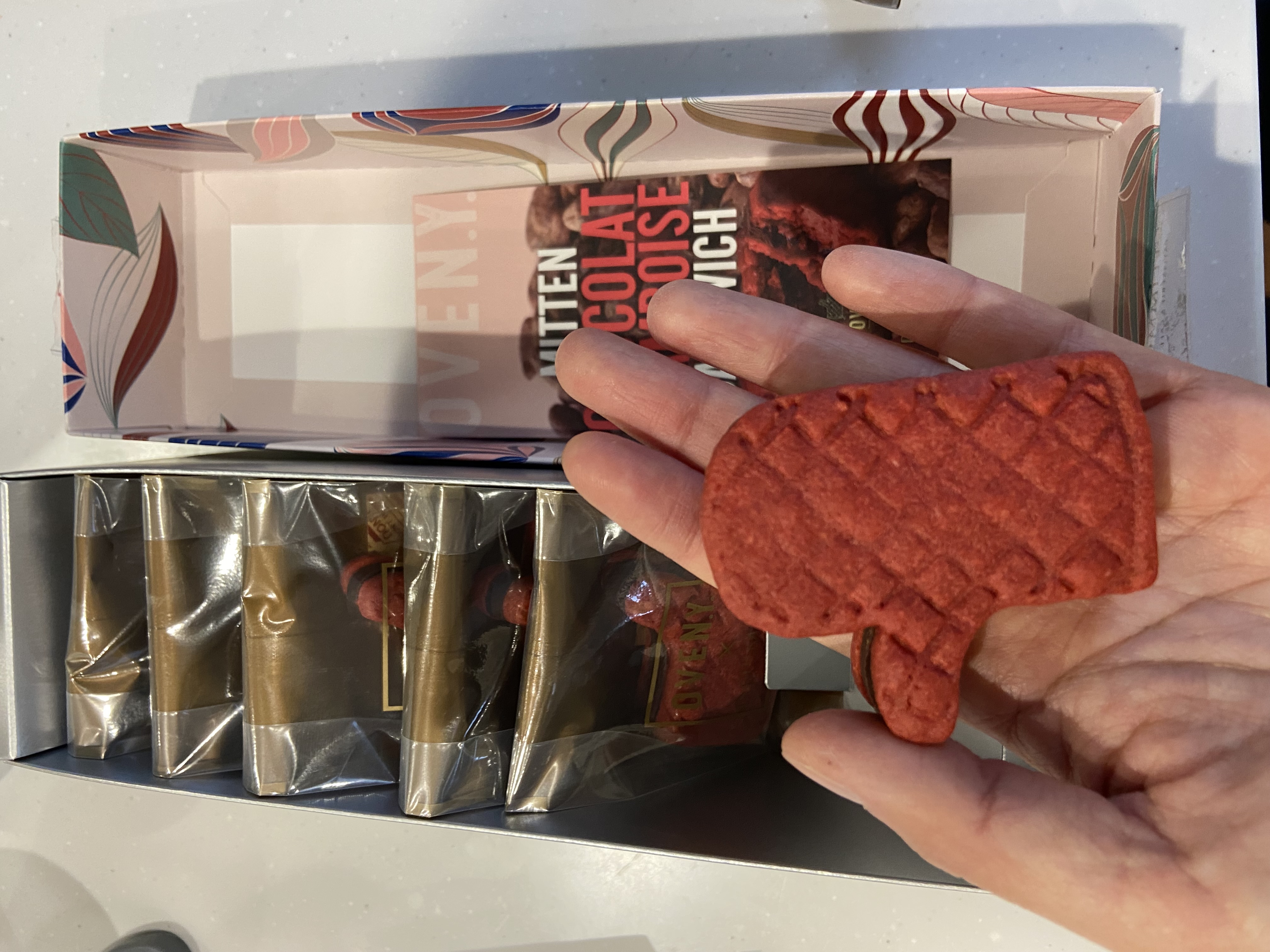 上品で見た目も可愛らしいチョコレートサンドに、まず心を掴まれました。ミトン型という今までにないユニークなデザインで、箱を開けた瞬間から特別感があり、思わず笑顔になります。プレゼントとしても喜ばれそうな可愛らしさです。