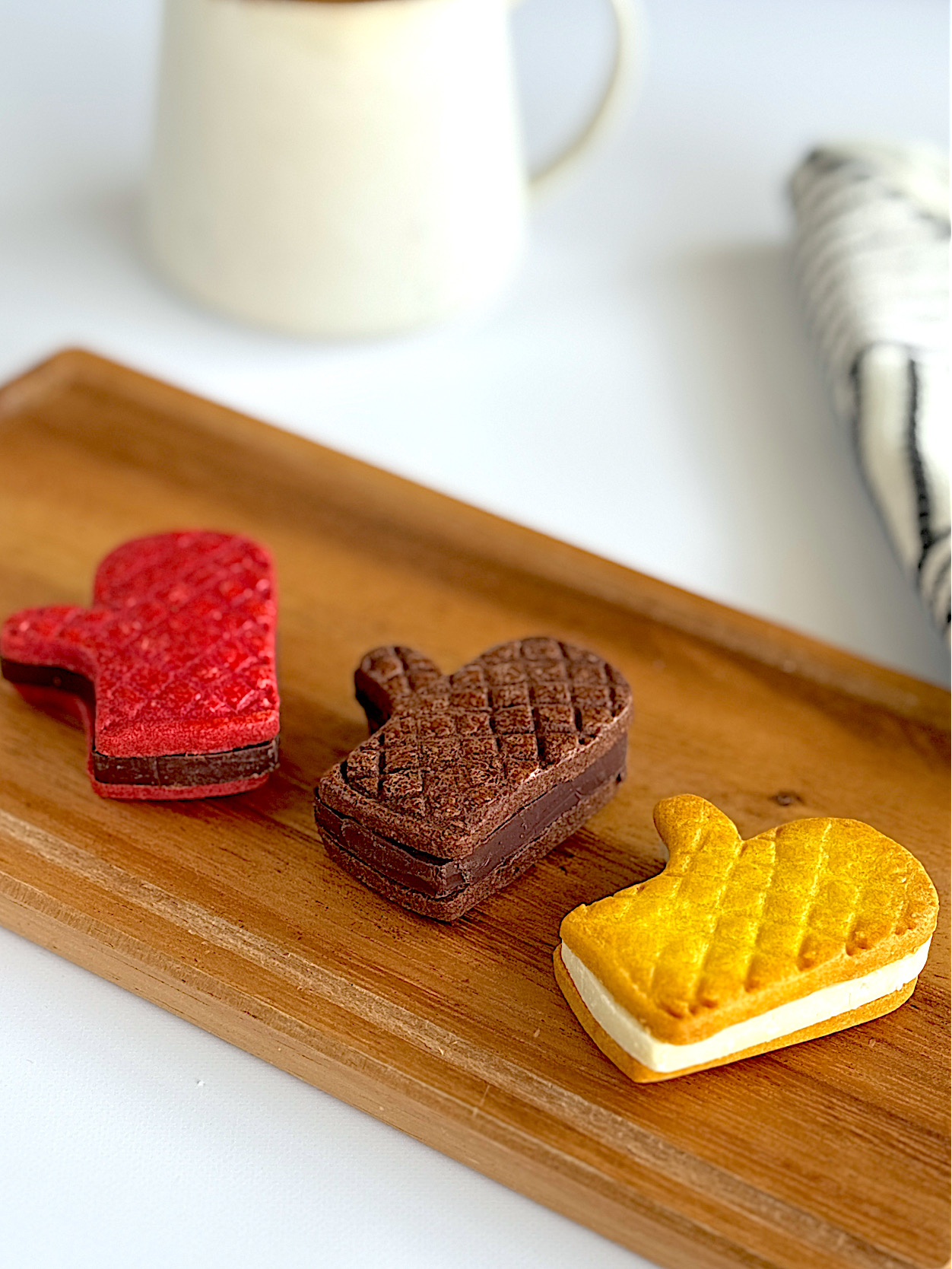 手のひらサイズの“ミトン型”が愛らしい、人気のクッキーサンド。