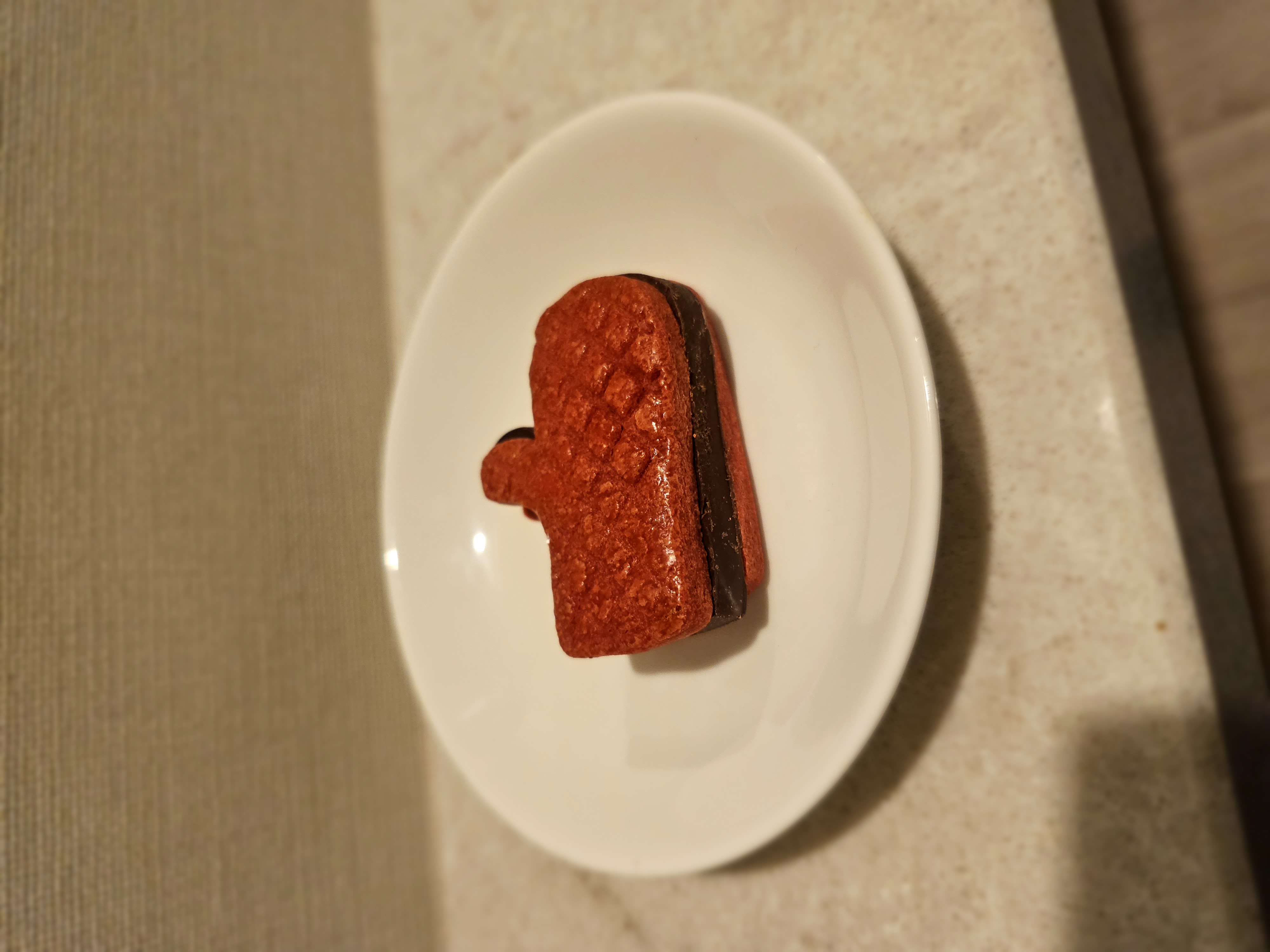 手のひらに乗るサイズですが、クッキー生地もチョコレートもかなり厚みがあり思った以上に重量感があります。