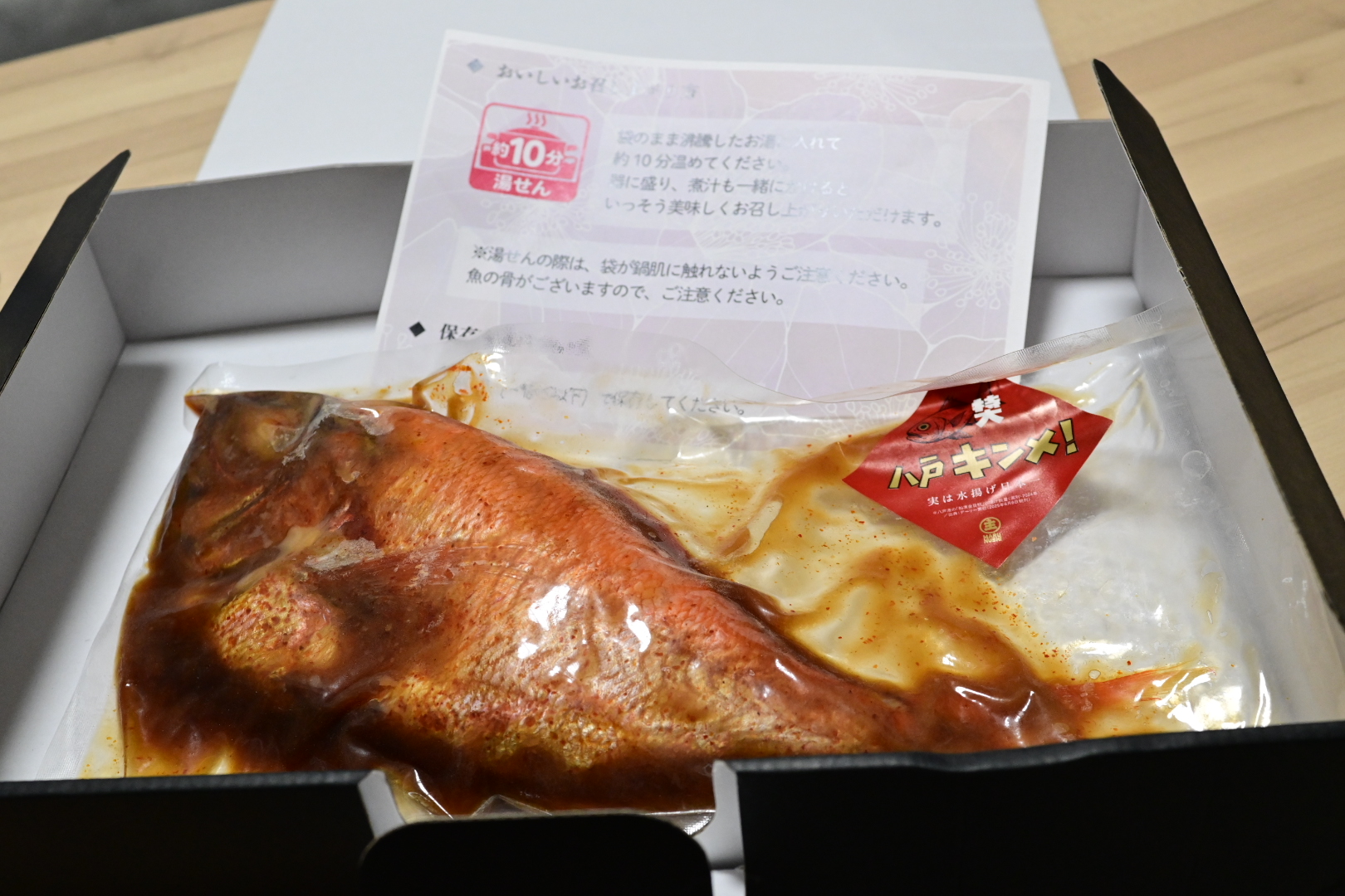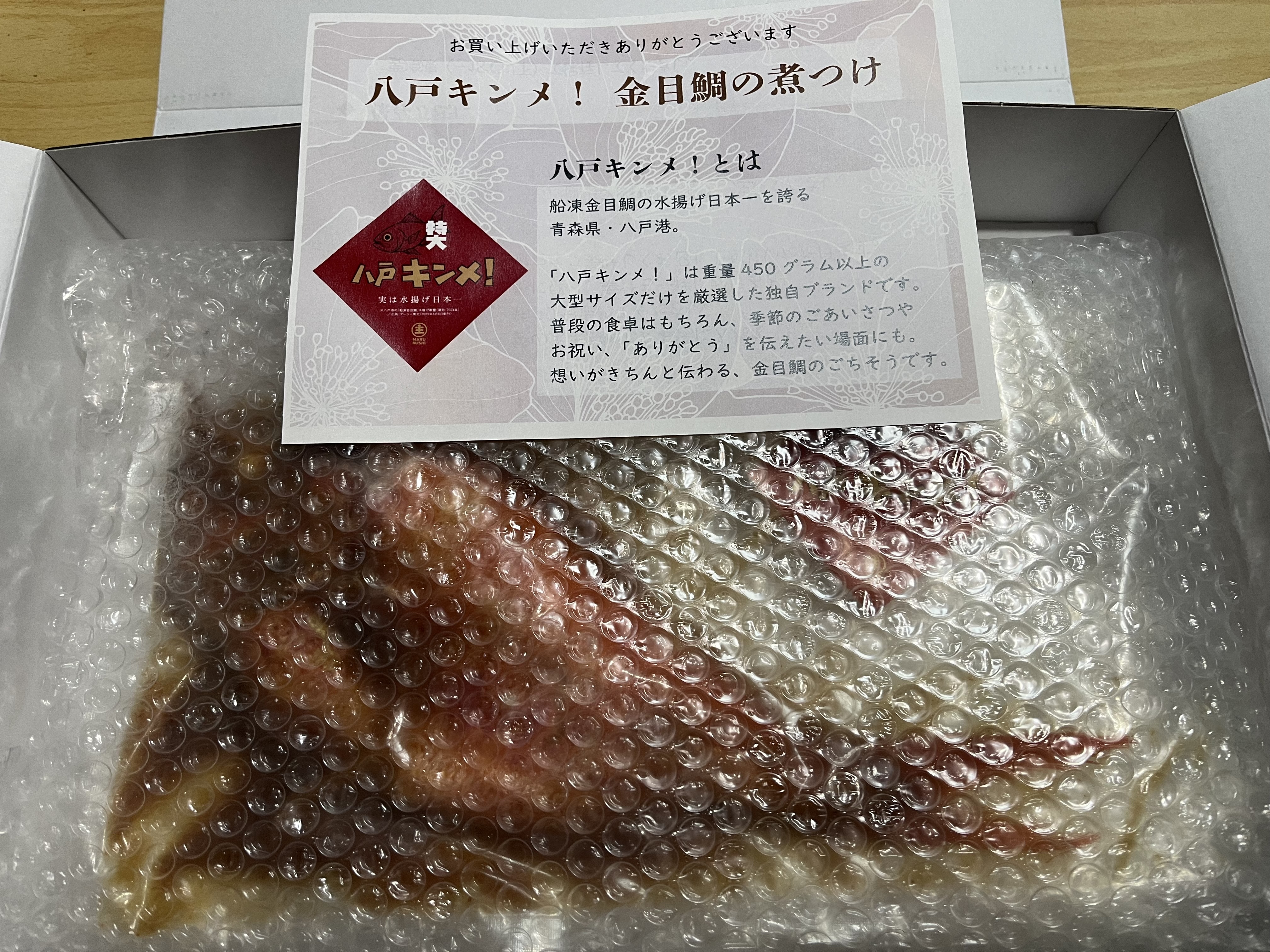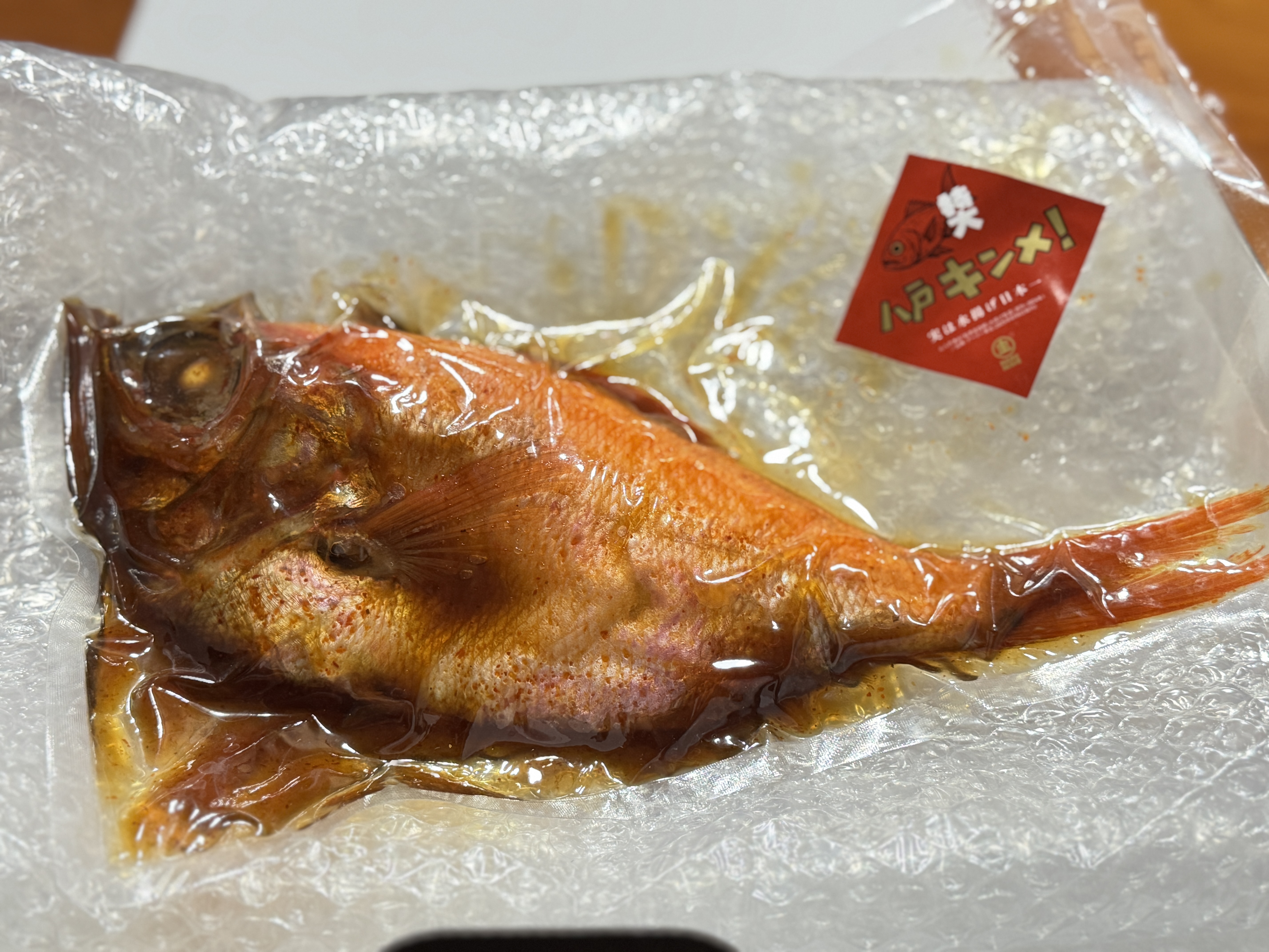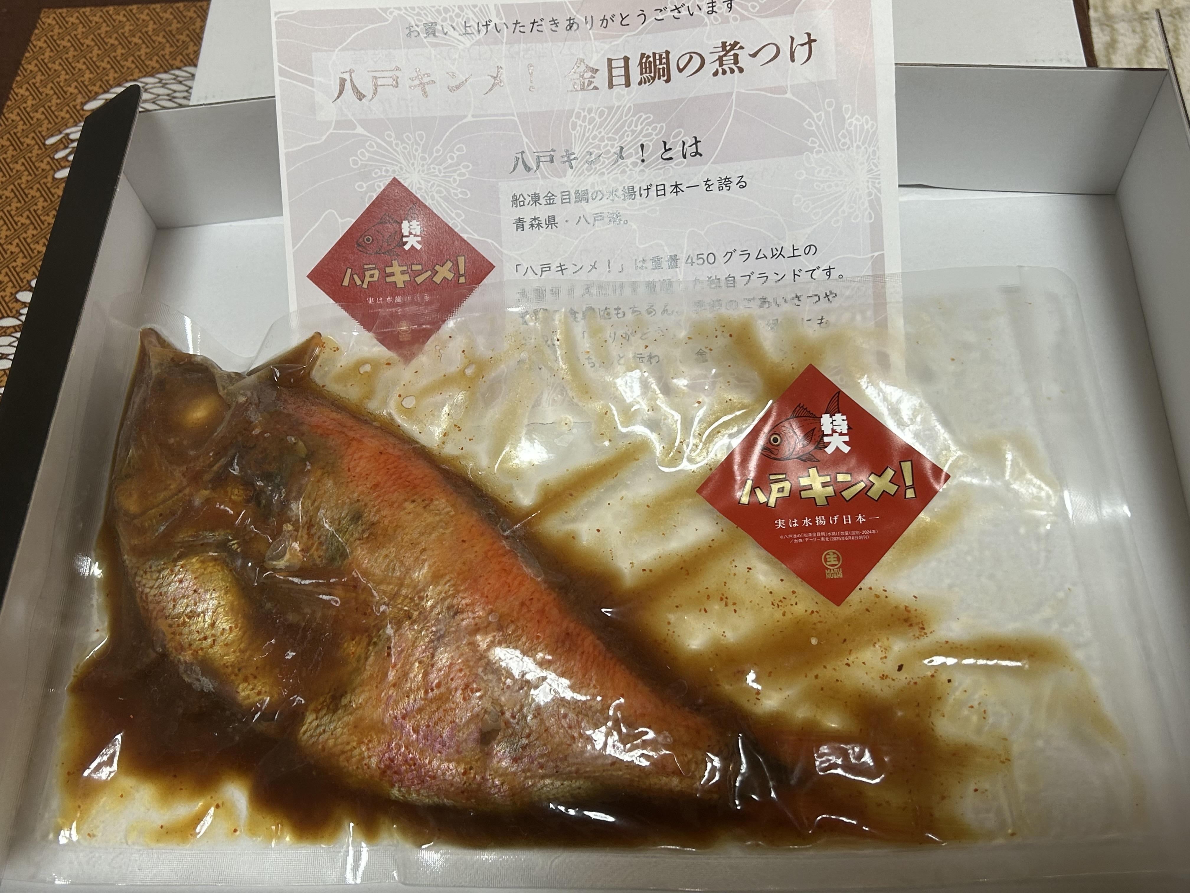 市販の煮魚は少し甘めのものが多くて、甘いのが苦手な私たちにはとても勇気のいる買い物ですが、こちらの八戸キンメは本当に絶妙な甘辛の匙加減でめっちゃくちゃ美味しいです。