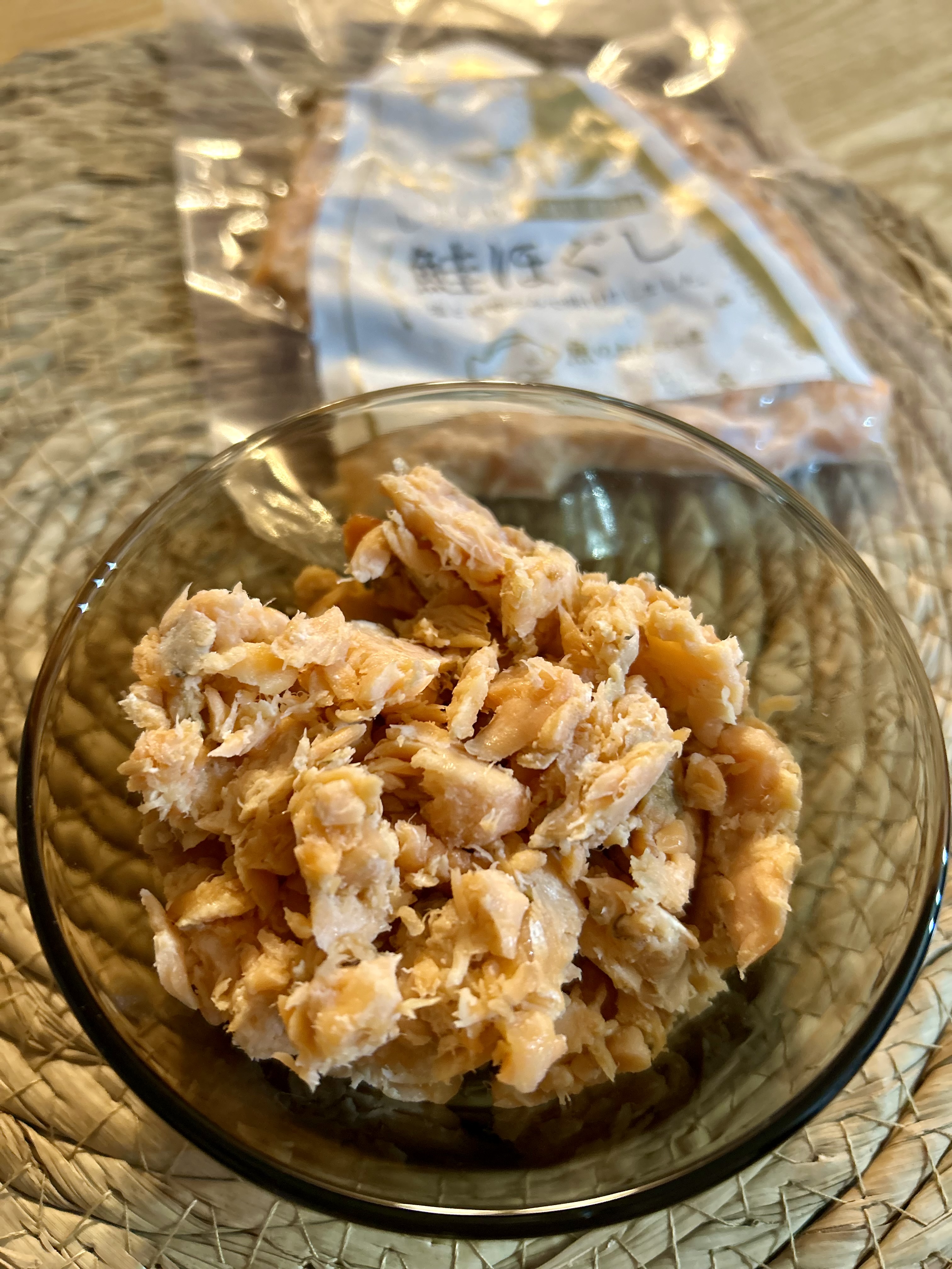 身はふっくらとしていて、細かすぎない絶妙なほぐし加減。商品名の通り“しっとり”とした質感で、冷凍品とは思えないやわらかな口当たりに驚きます。