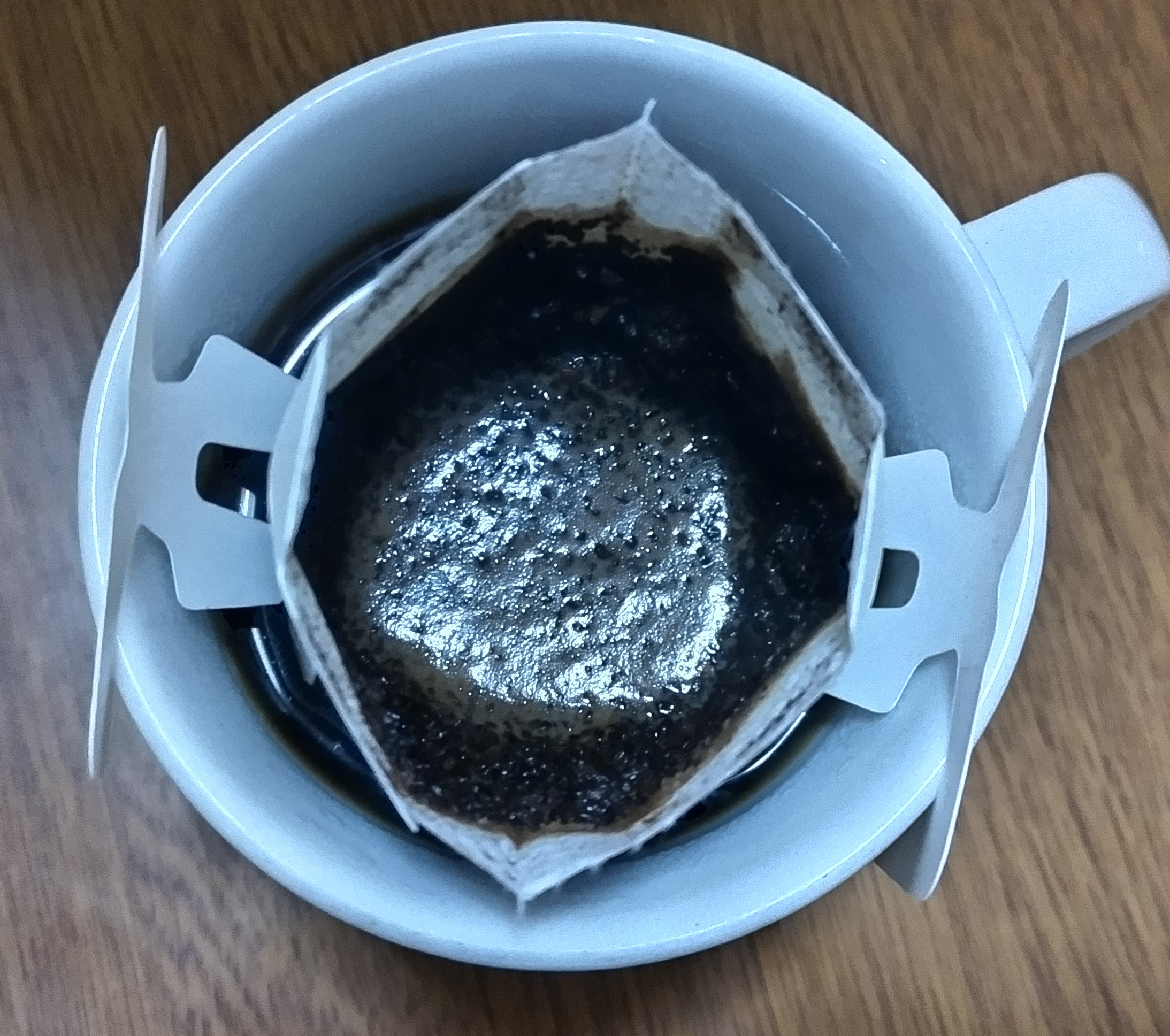 浸漬式ドリップバッグなので、お湯を注いだ後はお好きな濃さになるまでドリップバッグをお湯に漬けてください。