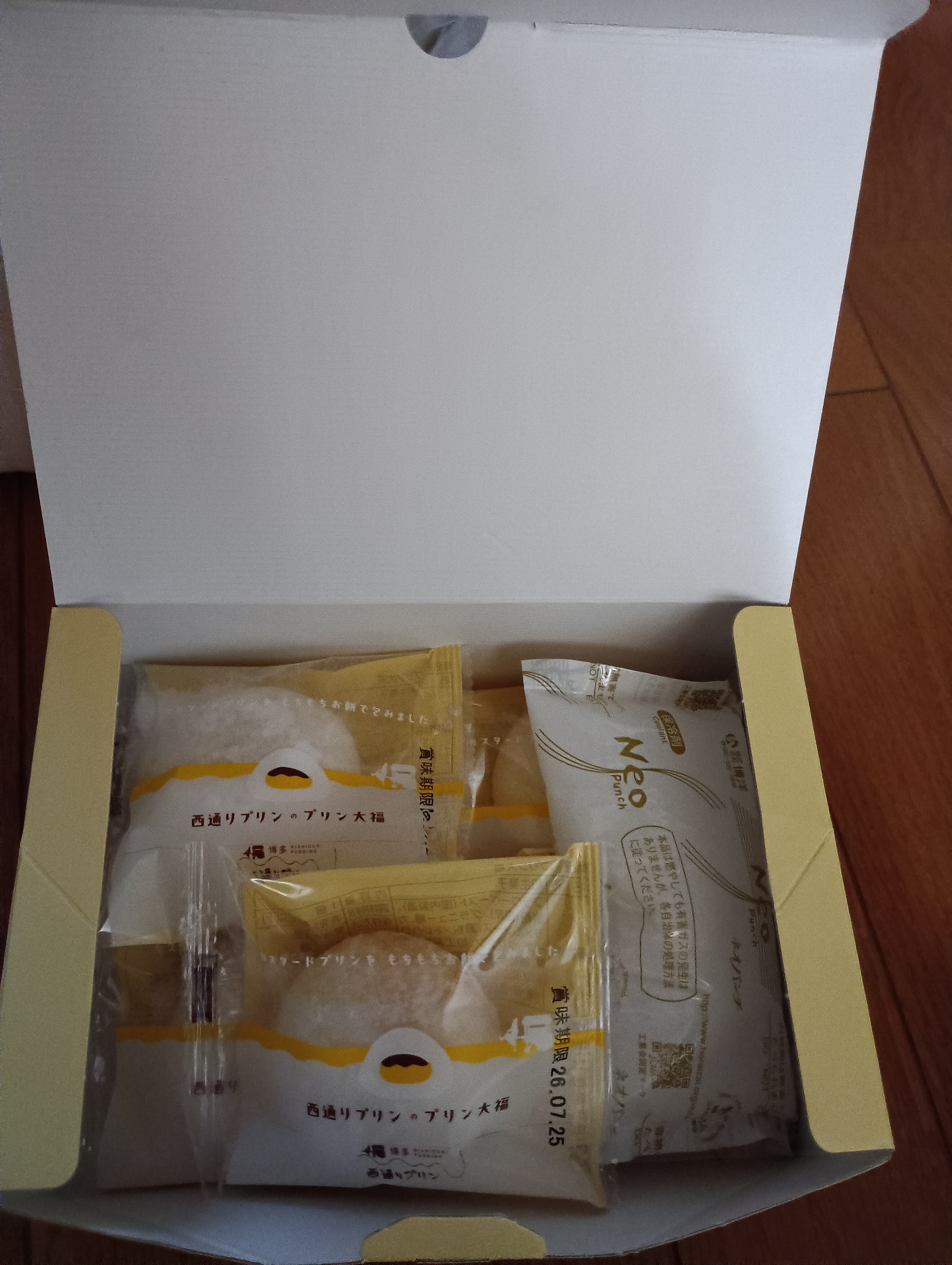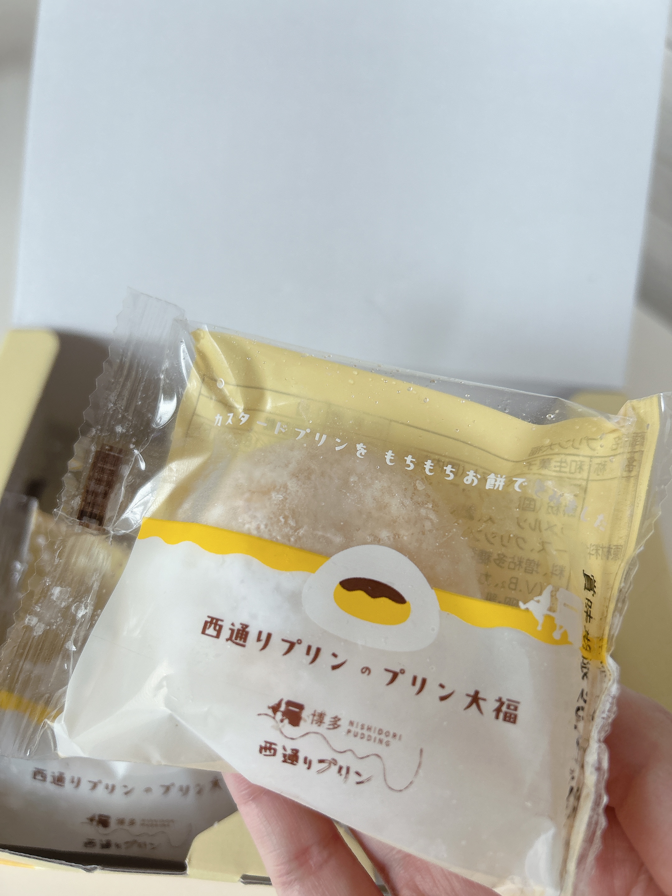 プリンのイラストが描かれた、レトロ可愛い箱には、個包装のプリン大福が6個入っていました。