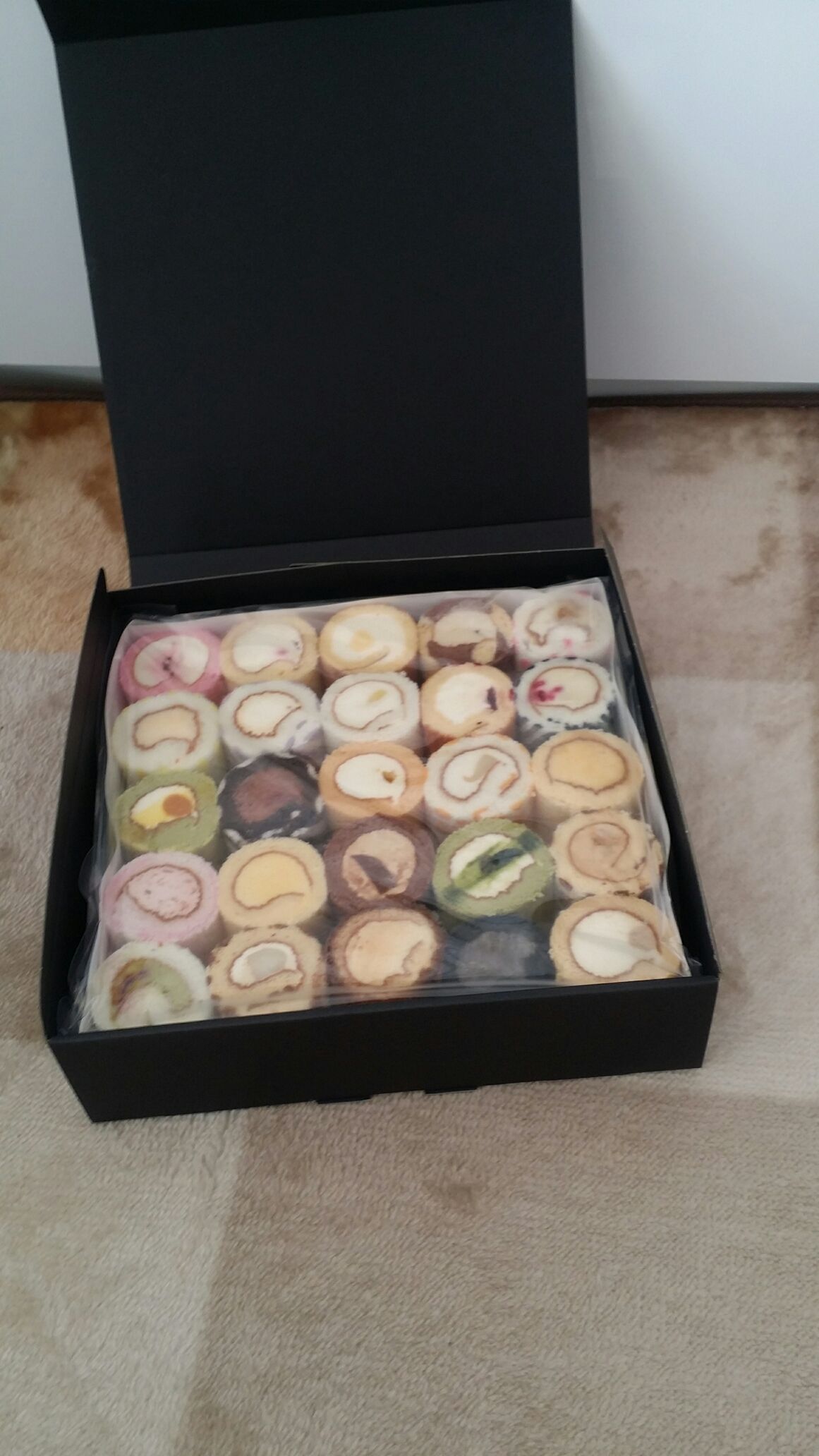 開けると色とりどりのケーキがぎっしり25個入ってます。