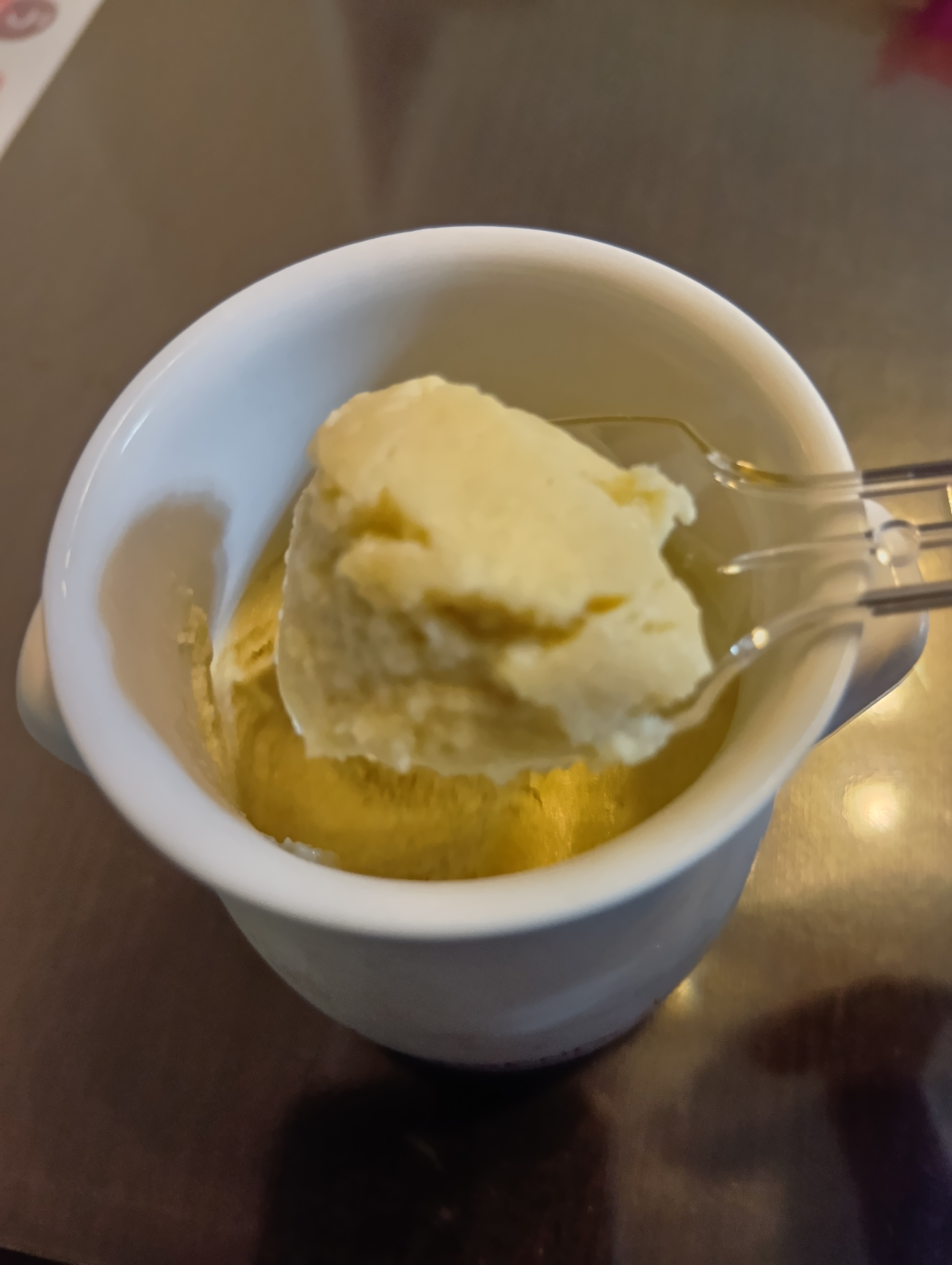 2個目は全解凍の状態でいただきました。半解凍のときと違って、生地がやわらかくてトロリとしています。なめらかな舌触りとさつまいもの自然な甘味、ほんのりと香るラム酒が良い感じ♪