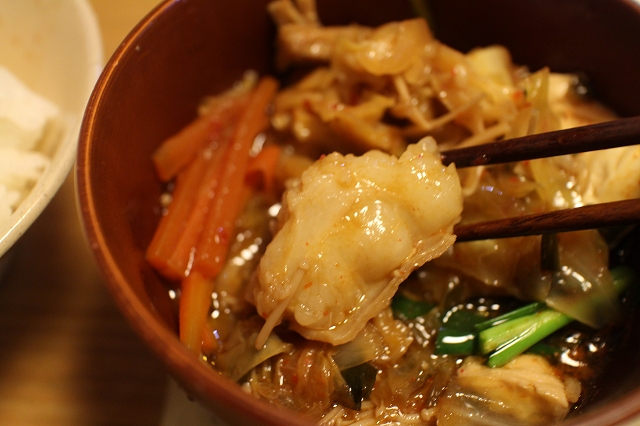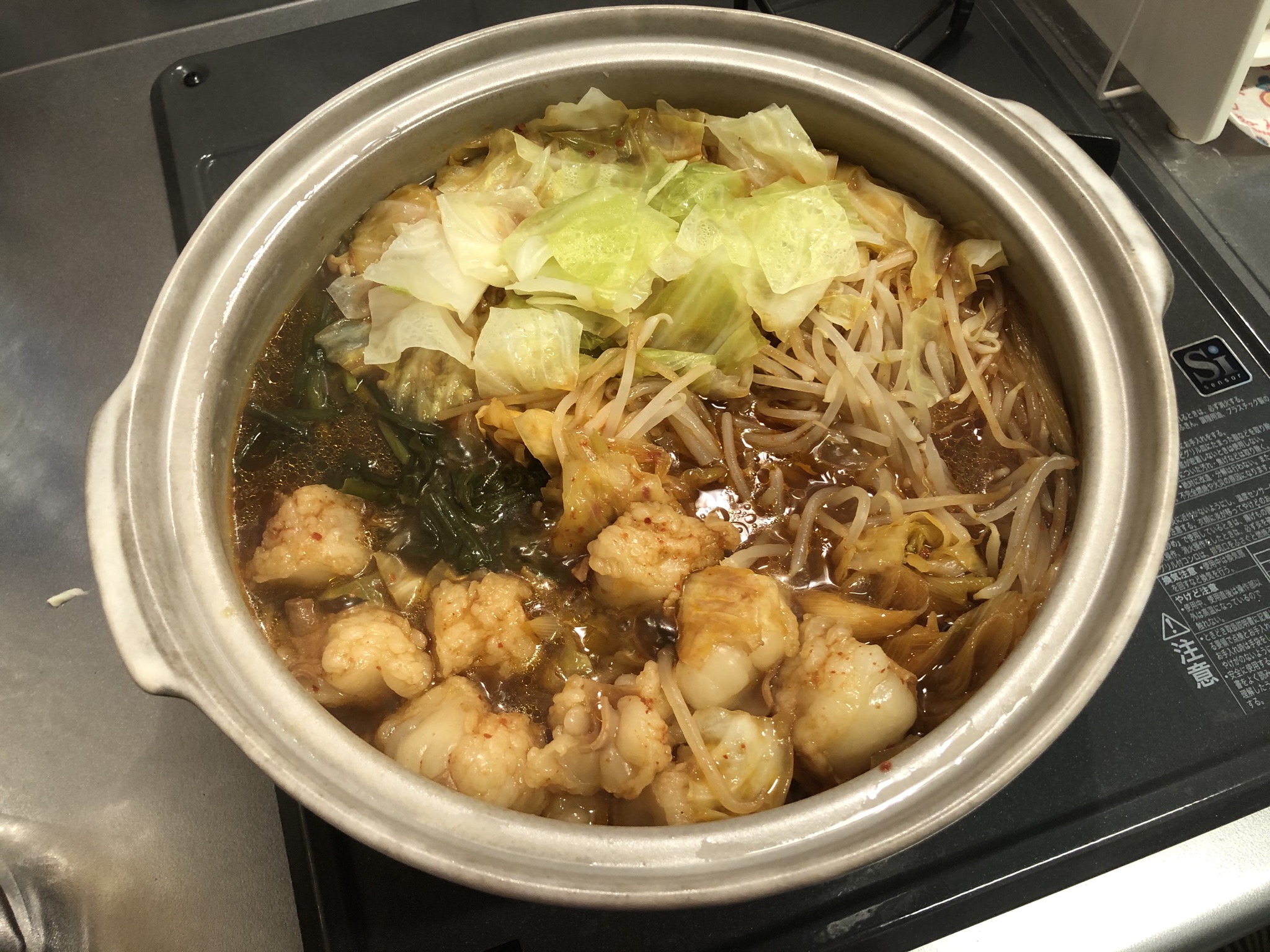 野菜とモツに火が通り いざいただいてみるとぷりっぷりとしたモツのしっかりとした食べ応えと甘みに感動しました!