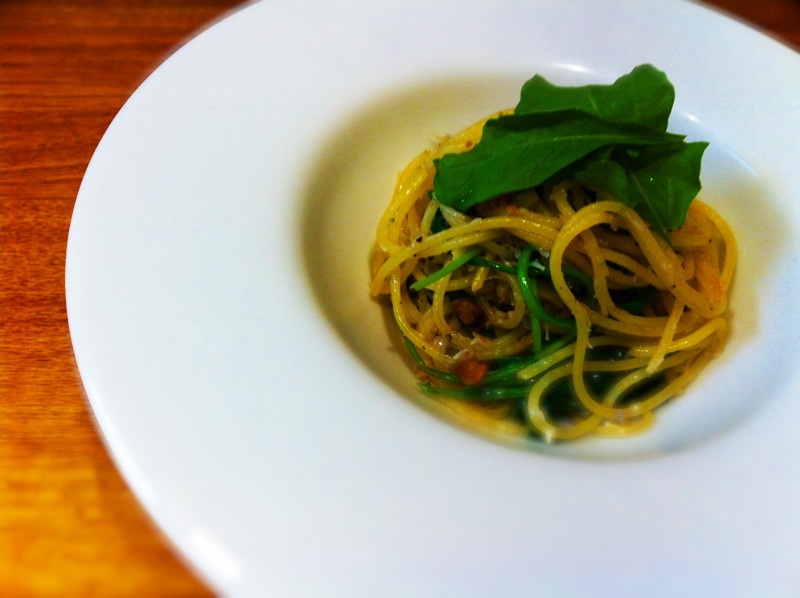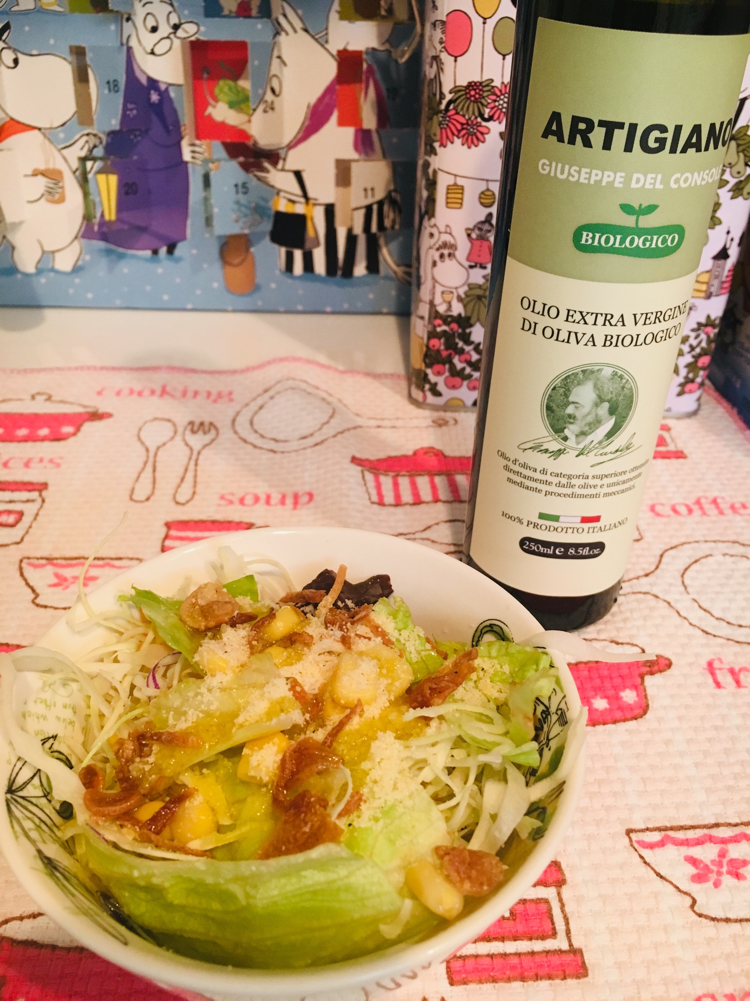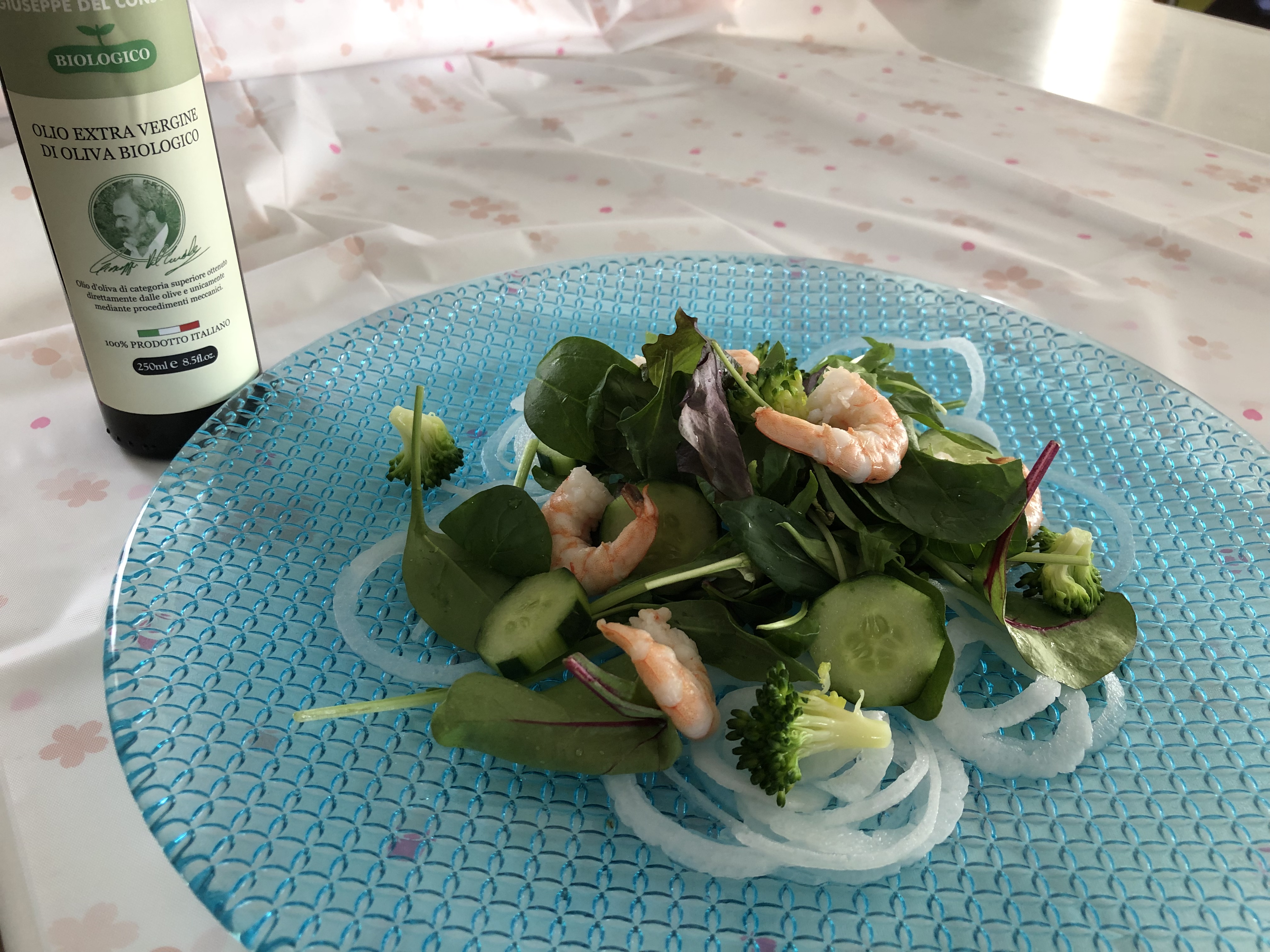 先ずはオーソドックスにサラダ。お野菜にあっという間に馴染んでまるでグリーンスムージーのようでした。オリーブ独特の臭みが殆どなく、素材の味を全く邪魔しないけど主張はしててバランスの取れたオリーブ・オイルでした。