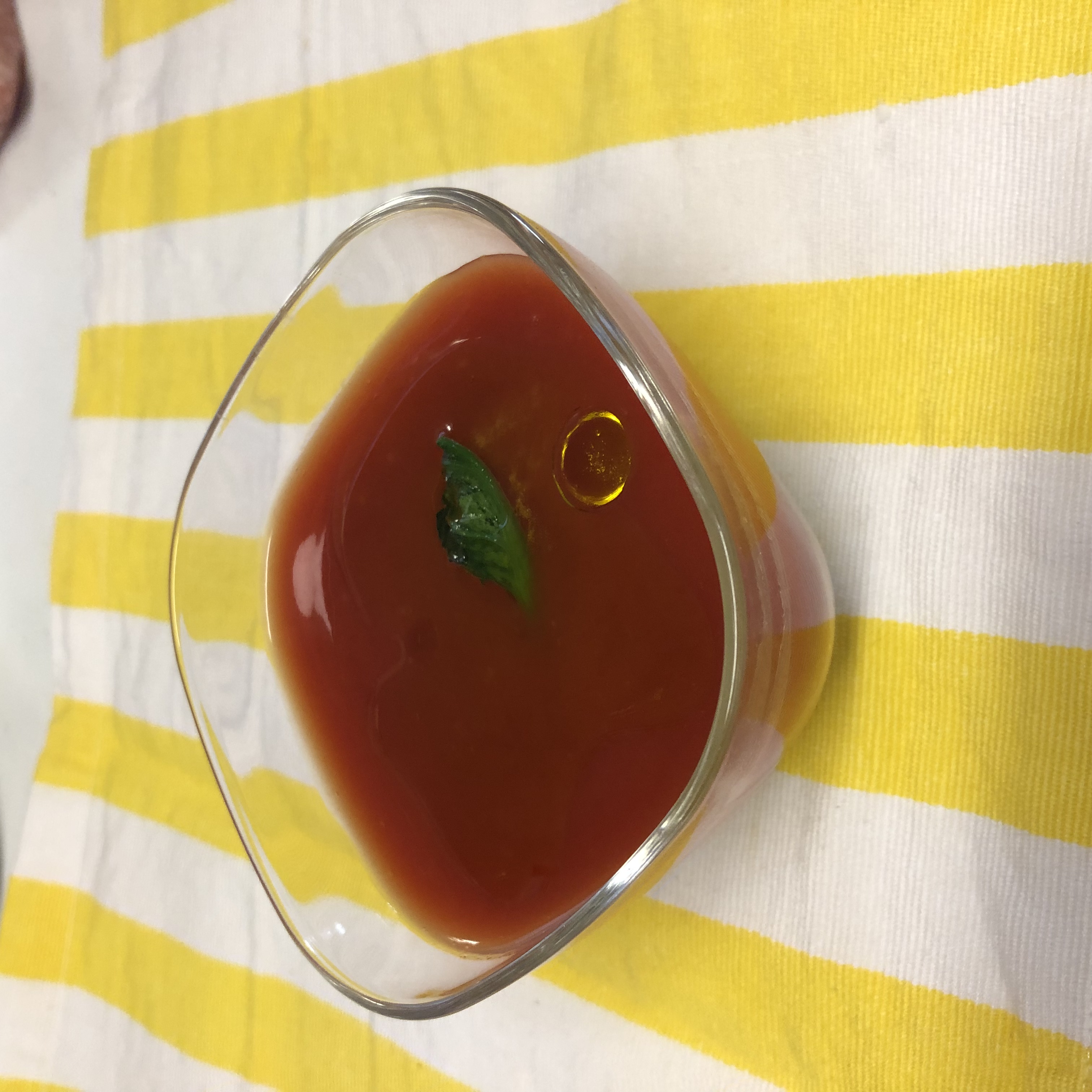 そして辿り着いたのが、飲み物。サラッとしてジュースのように感じたので飲むサラダにしてみました。マッシュポテトの上に無塩のトマトジュースを注ぎオリーブ・オイルを垂らすだけですが、有ると無いとでは雲泥の差。とても美味しく頂戴しました。