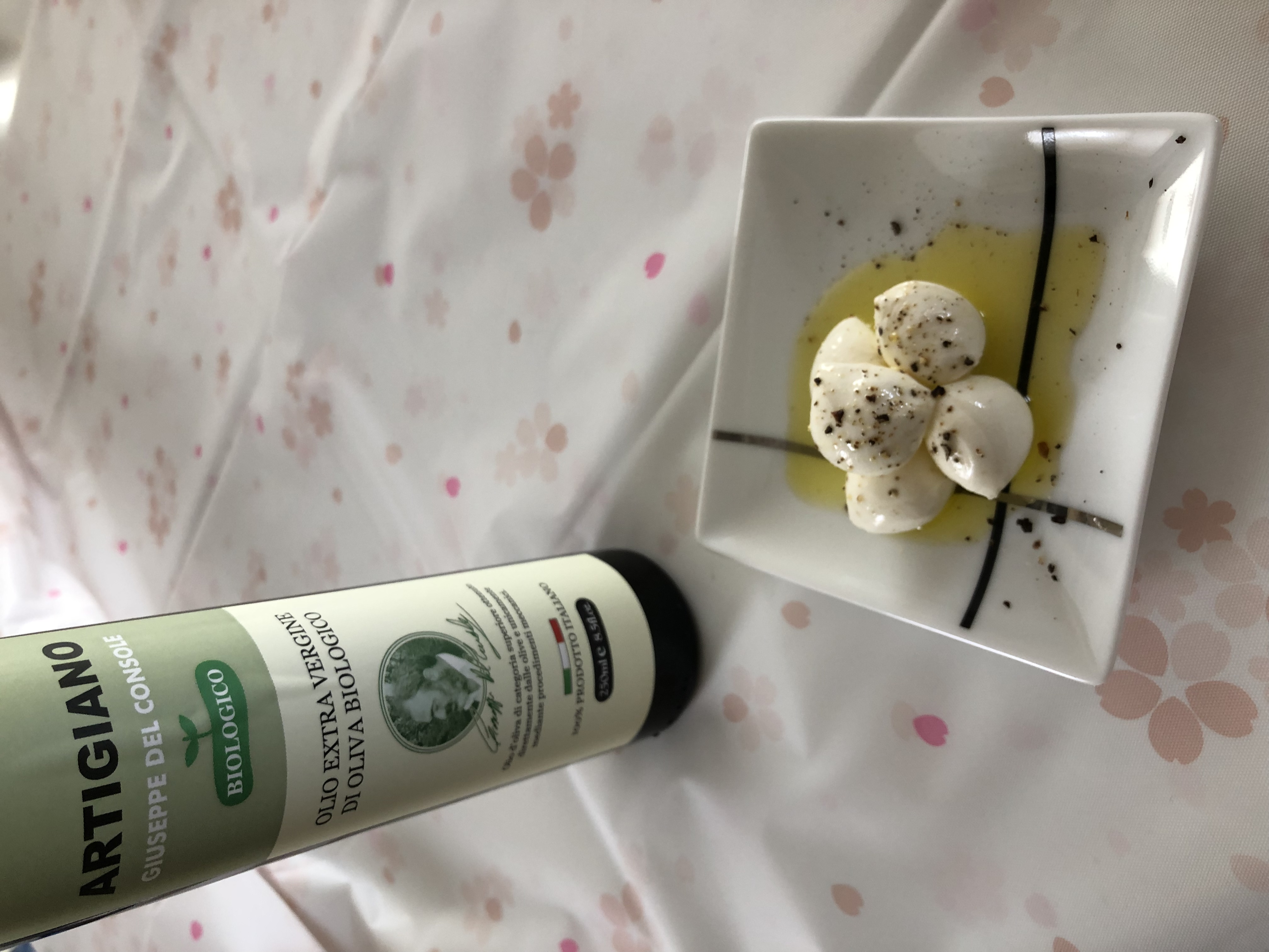 オリーブ・オイルそのままを味わいたくて、モッツァレラチーズにかけブラックペッパーをひと振り。モッツァレラチーズを噛んだ時のちょっとしたパサつきが気になってたんですが、見事に調和してくれ無限に食べてしまいそうでした。他、タコのカルパッチョや軽くトーストしたバケットにつけても美味しかったです