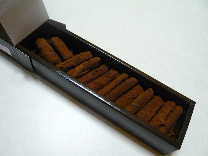 スティックタイプのトリュフチョコ。スタイリッシュな箱に30粒入っています。