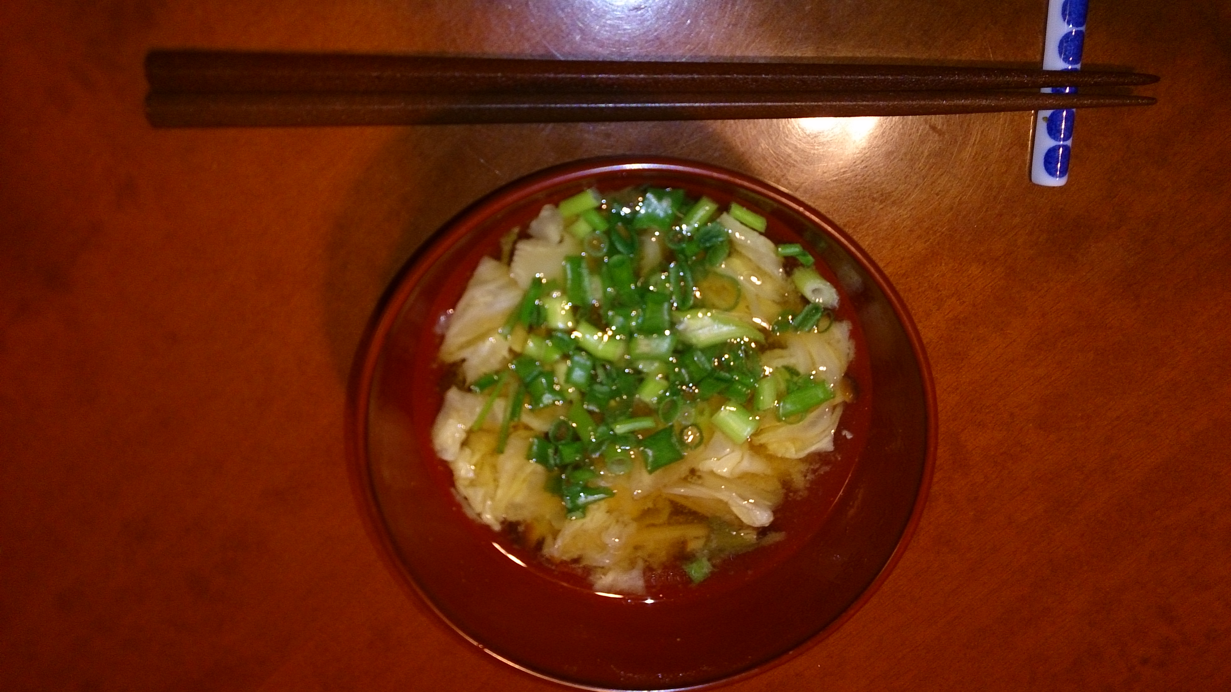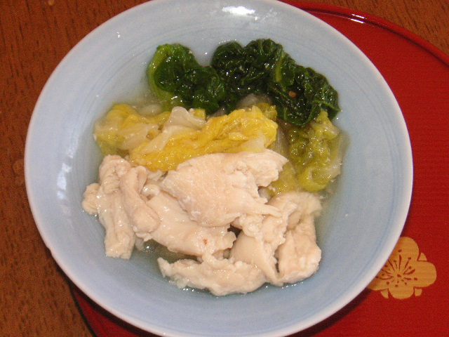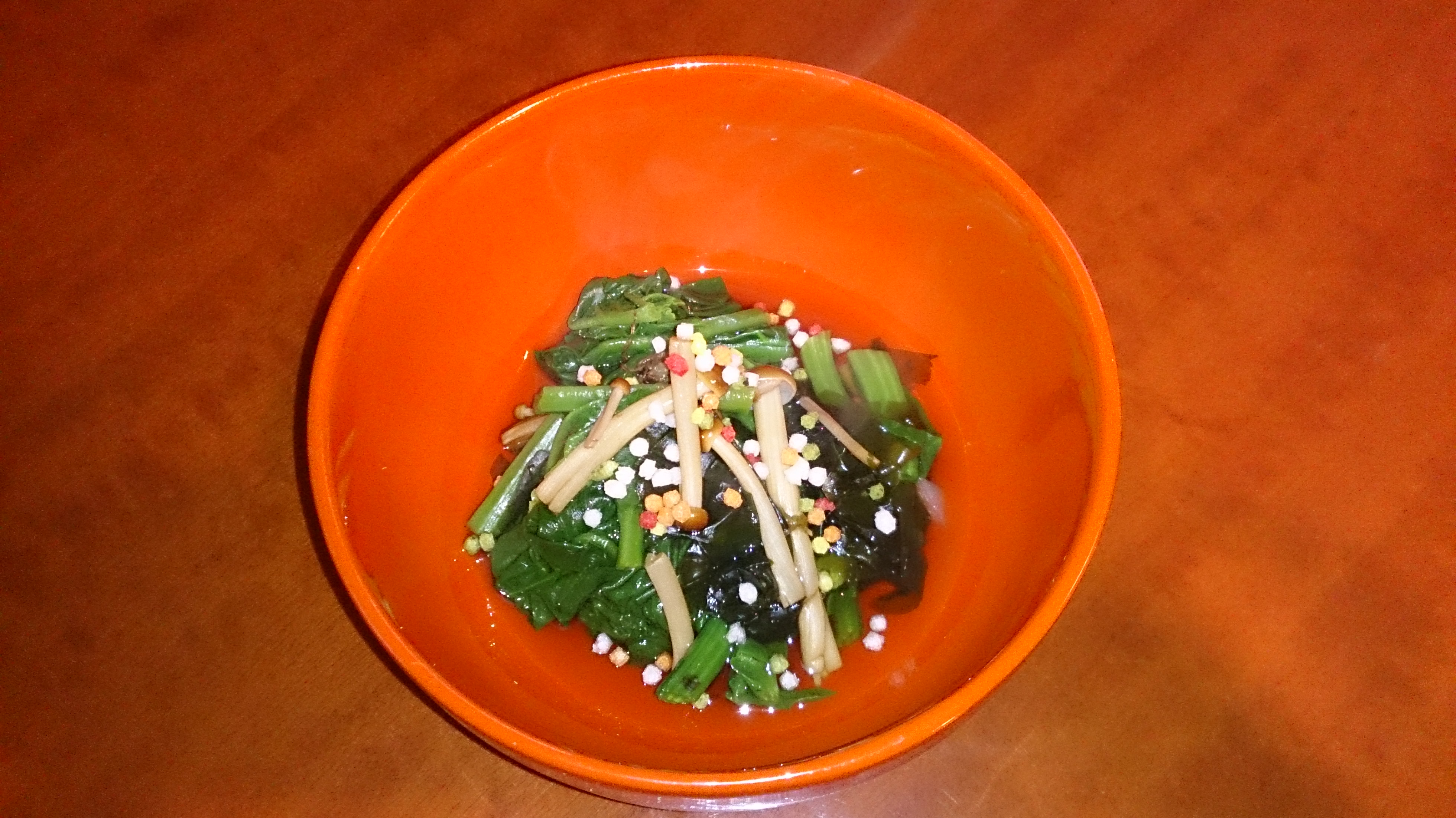 普段からよく食べている「ほうれん草とワカメの煮浸し」と「茸とキャベツのお味噌汁」を作ってみました。