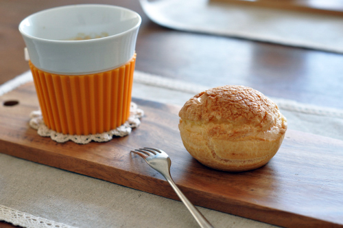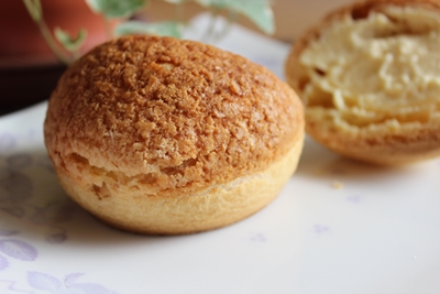 国産バターを使ったクッキーを乗せて焼き上げたサクサクのシューパフの中に、