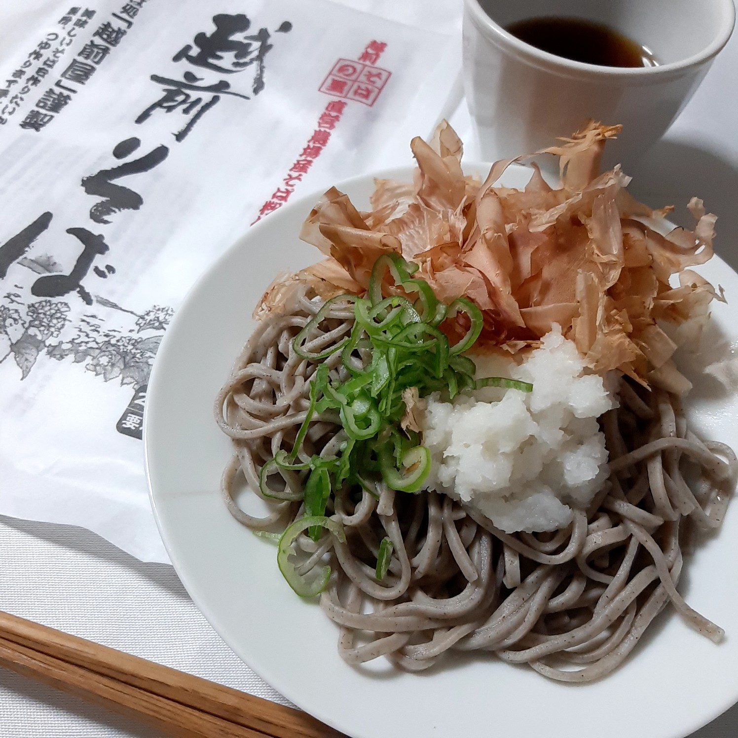 冷水で〆た冷たいそばに、大根おろし、ねぎ、かつお節をのせつゆをぶっかけて食べる「おろしそば」。
