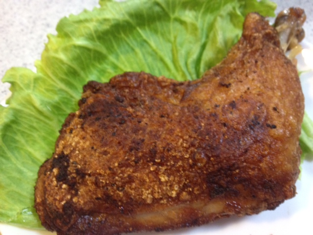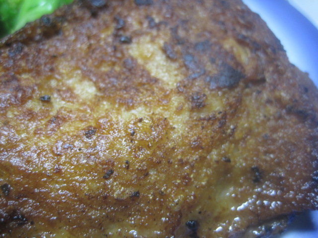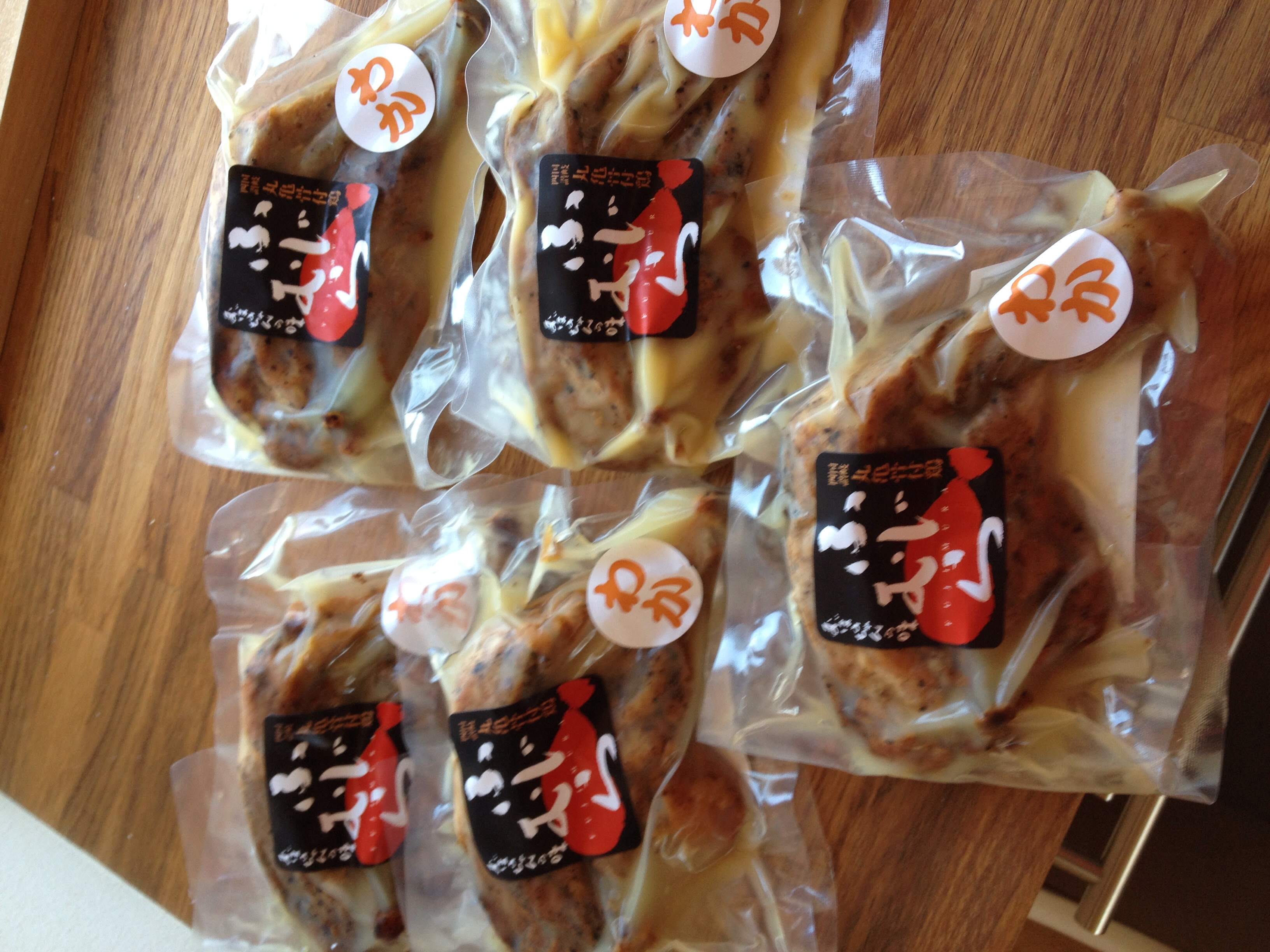 真空パック詰めされた鶏は、新鮮な朝引き鶏をこだわりの味付けで、しっかり味付けされ、丁寧に焼き上げたもの。パックのまま、10分ほど湯煎したのち、パックの中の油でフライパンの中で焼き目をつけていただきました。
