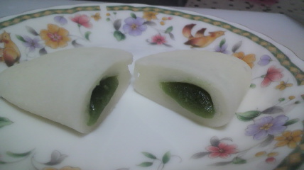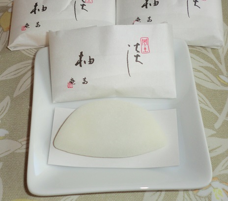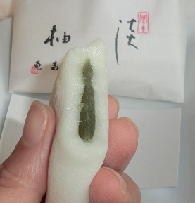 柚子餡のあざやかな新緑色にはビックリしましたが、食べた時の断面の色あいが美しいです。