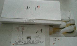 ひもをほどき、中をあけると「お菓子をどうぞ」という言葉と共に、箱が出てきます。