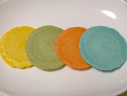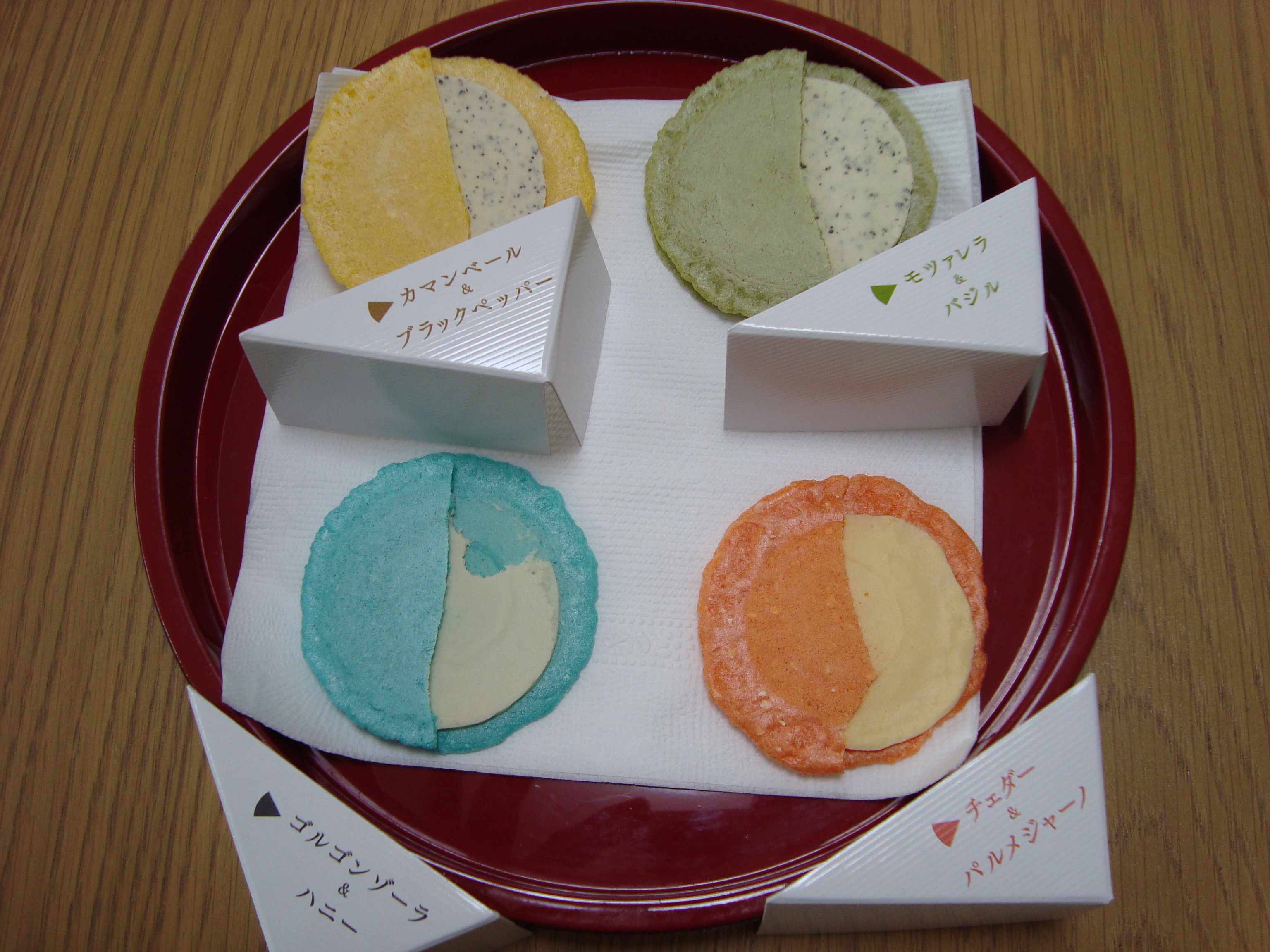4種類の本格チーズを4色のカラフルなえびせんべいでサンドしました。濃厚で風味豊かなチーズとえびの組合せは、イタリアンとも和とも言えない驚きを誘います。