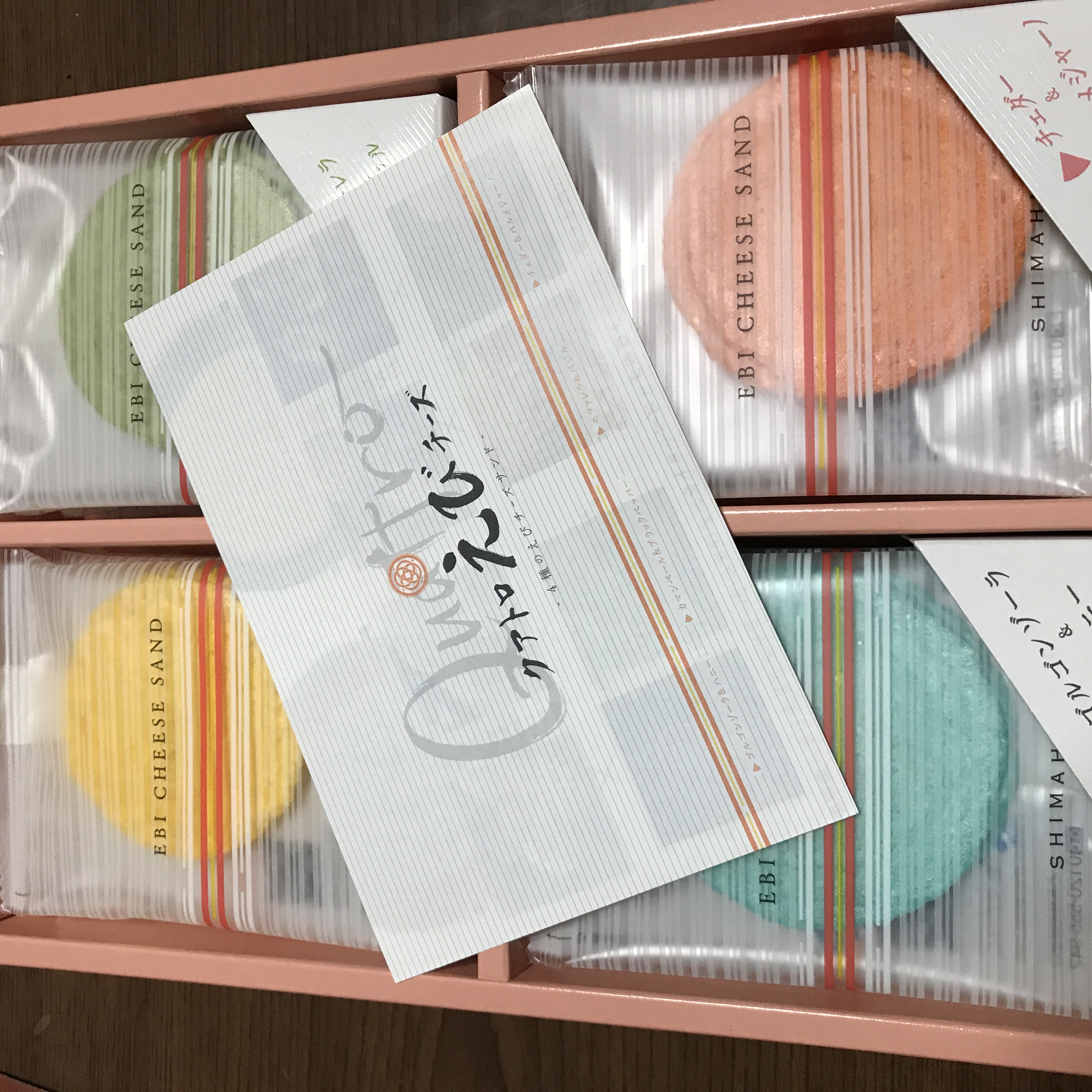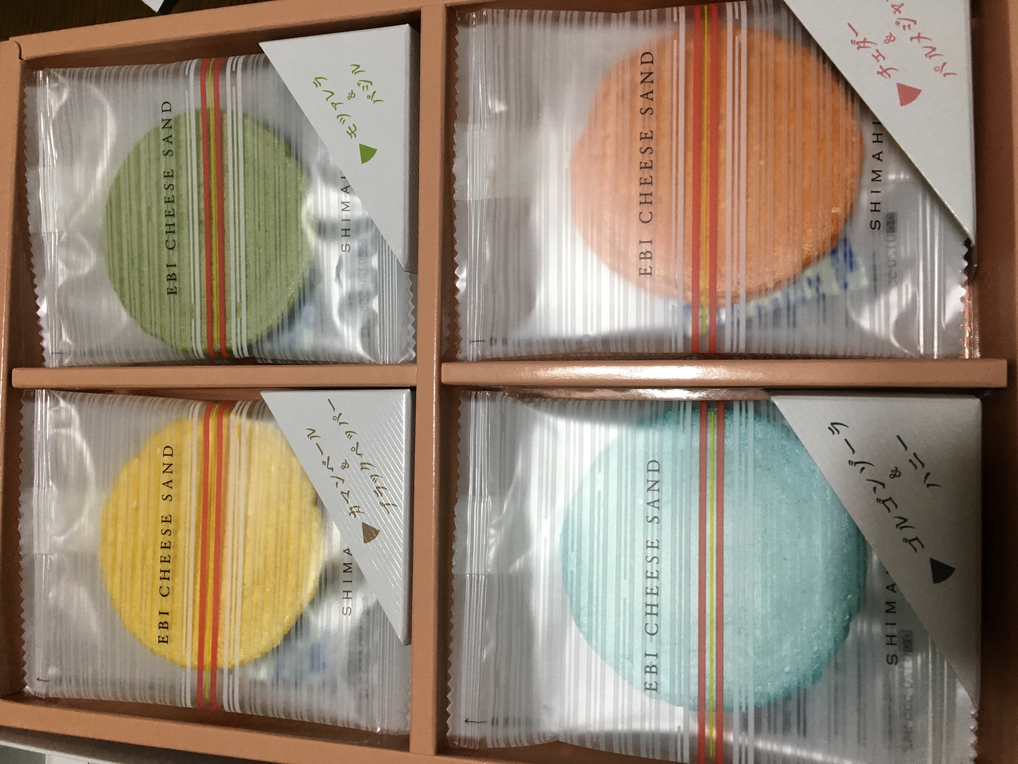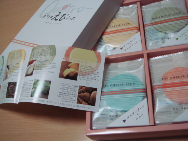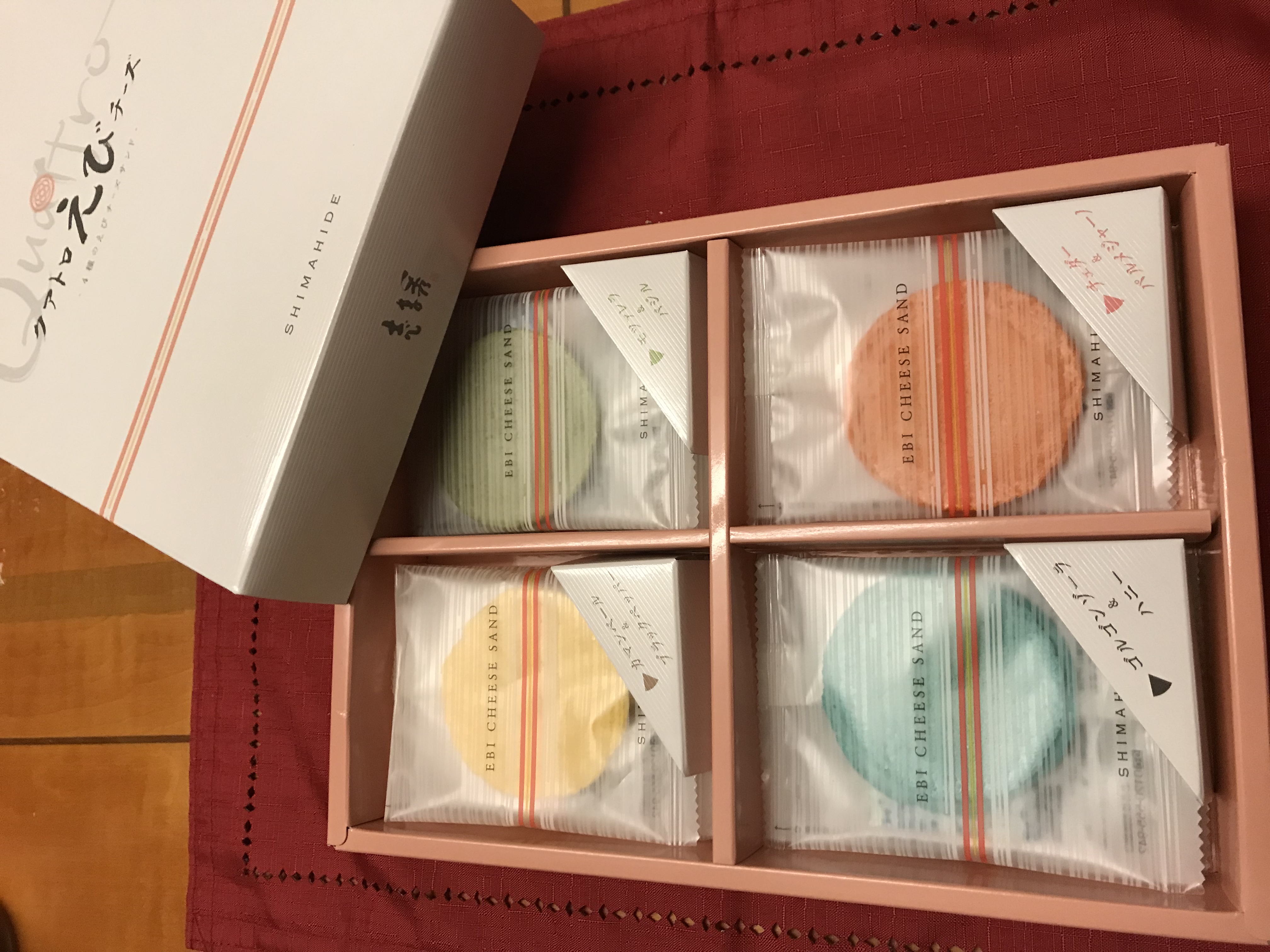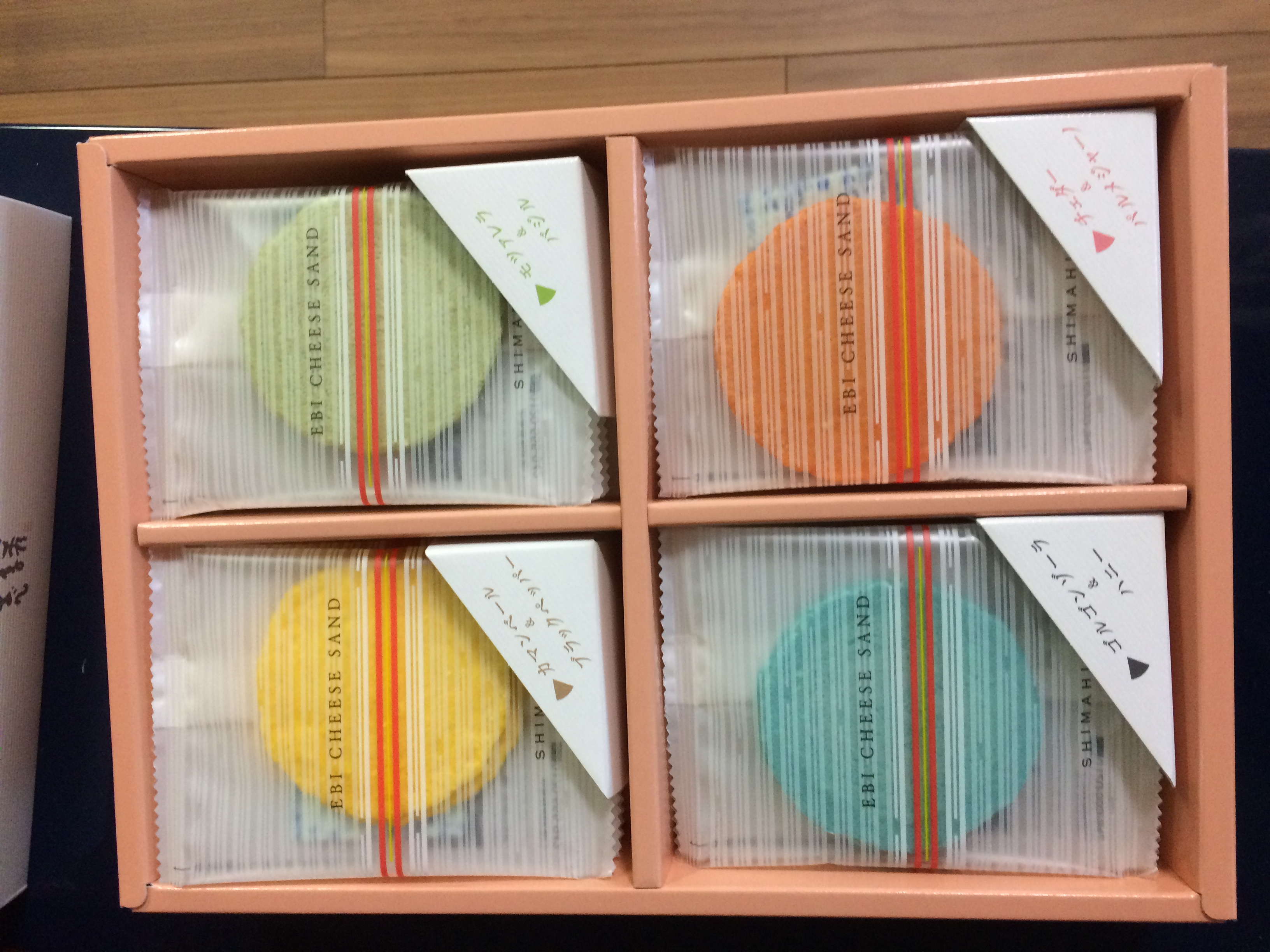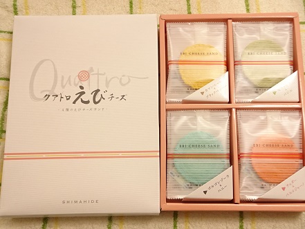4種のチーズをサクサクの海老煎餅でサンドした、まるでマカロンのような和スイーツです。ゴルゴンゾーラ&ハニー、カマンベール&ブラックペッパー、モツァレラ&バジル、チェダー&パルメジャーノどれも個性的で濃厚な味わいです。観て楽しい、食べて美味しい、まったく新しいえび菓子です。