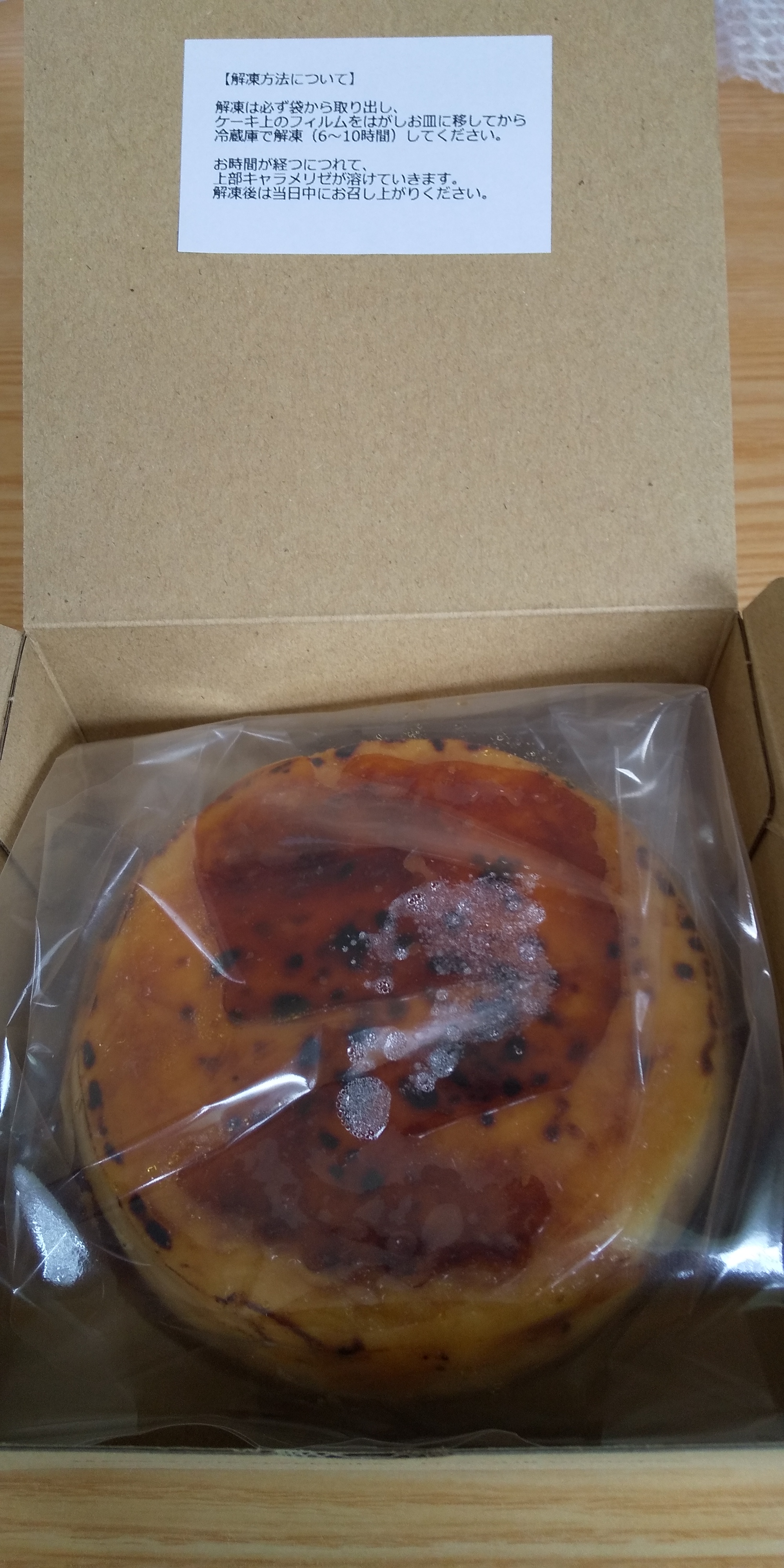 「チーズケーキを袋から取り出し、お皿に移してから、上のシートを剥がし、6~10時間冷蔵庫内で解凍してください」との事だったので、午後から冷蔵庫で解凍して、夜に頂いてみました。