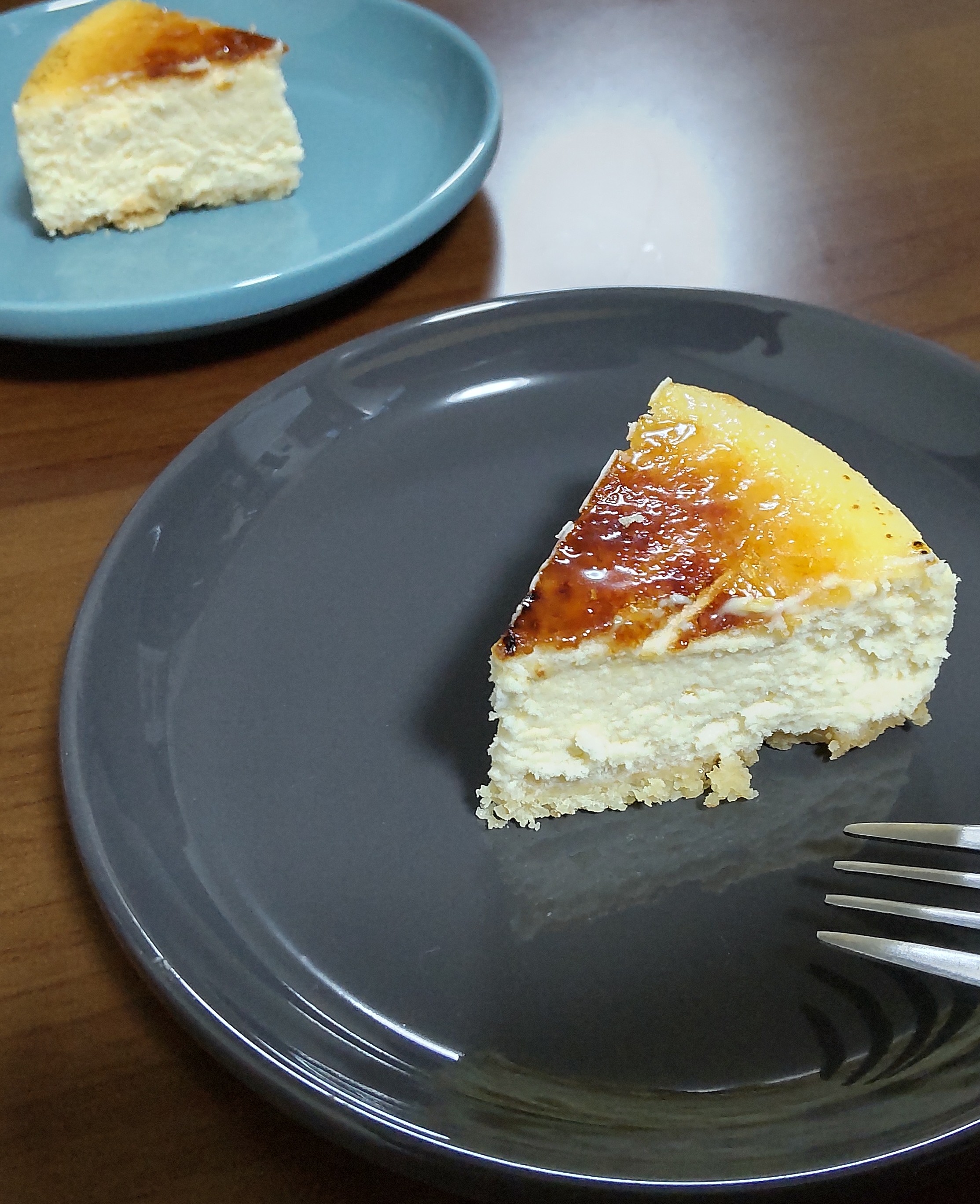 クリームブリュレみたいに表面がパリパリでほろ苦いキャラメリゼと、濃厚だけど重た過ぎずなめらかな口溶けのニューヨークチーズケーキ。絶妙で食後でも美味しく頂けました。