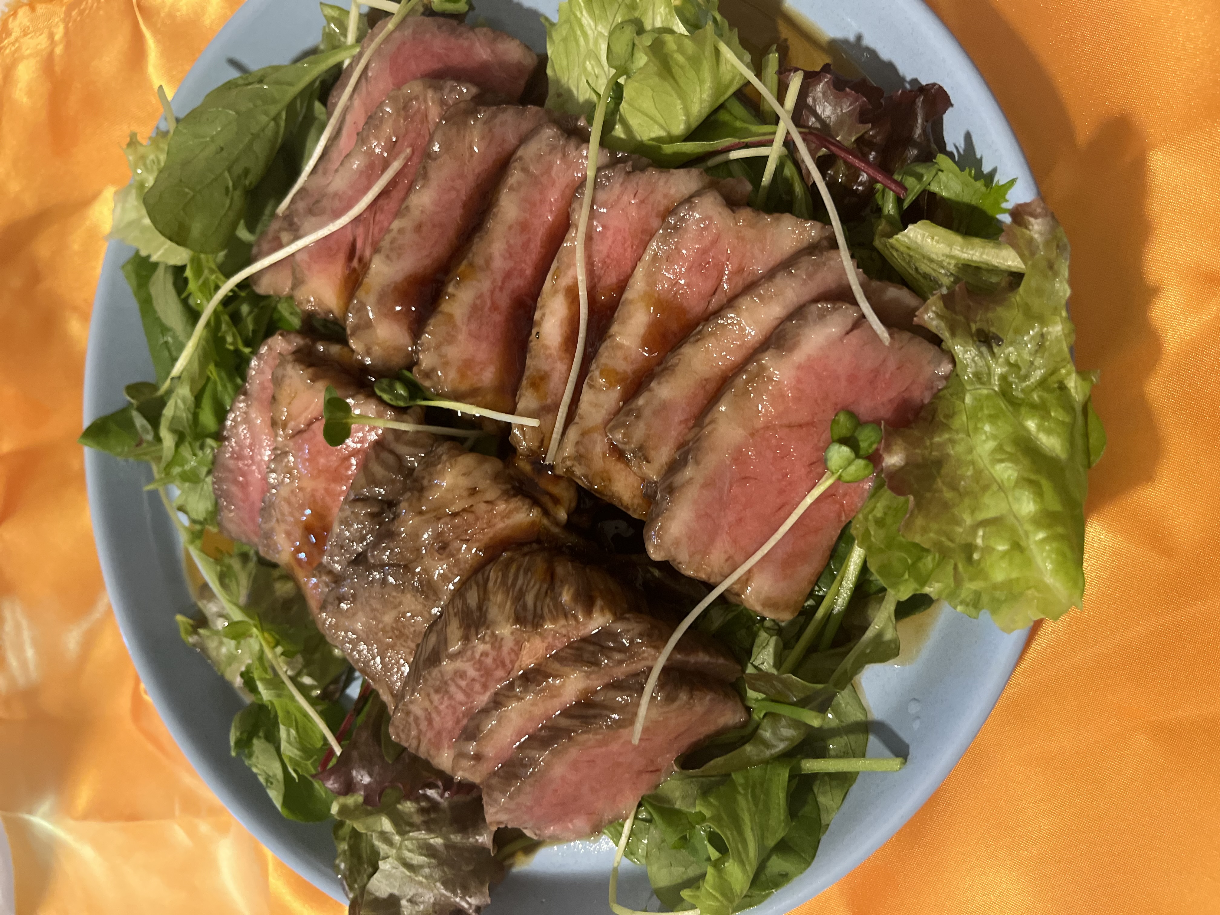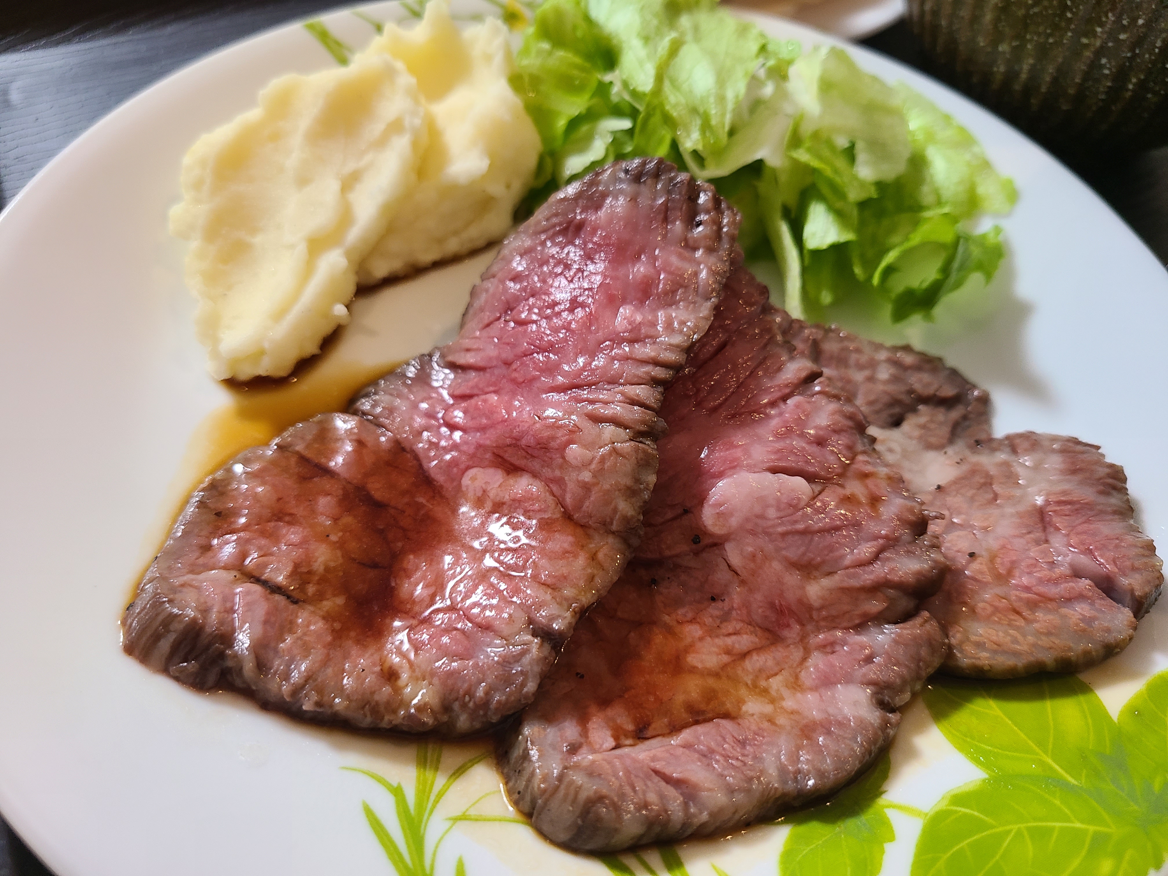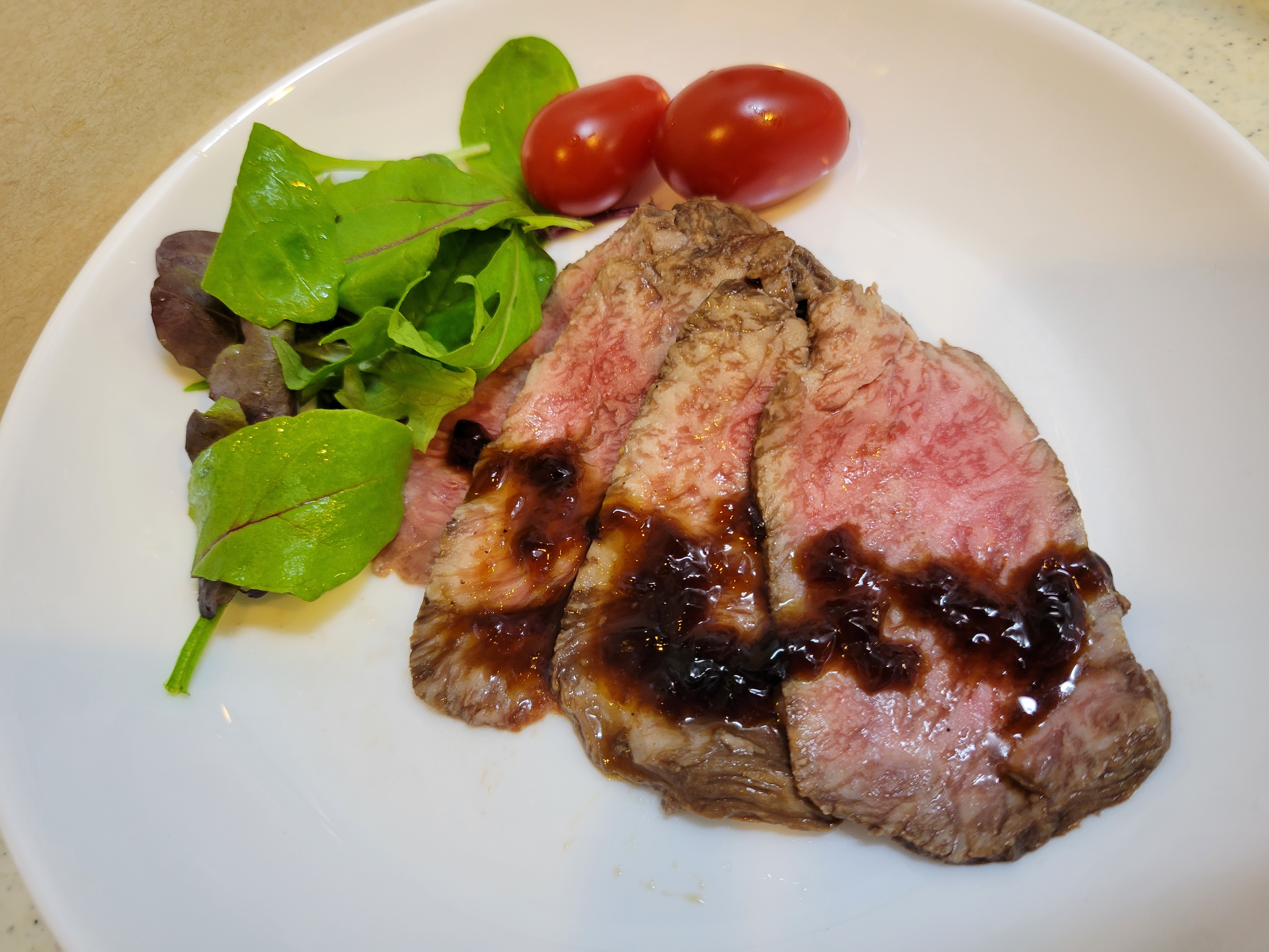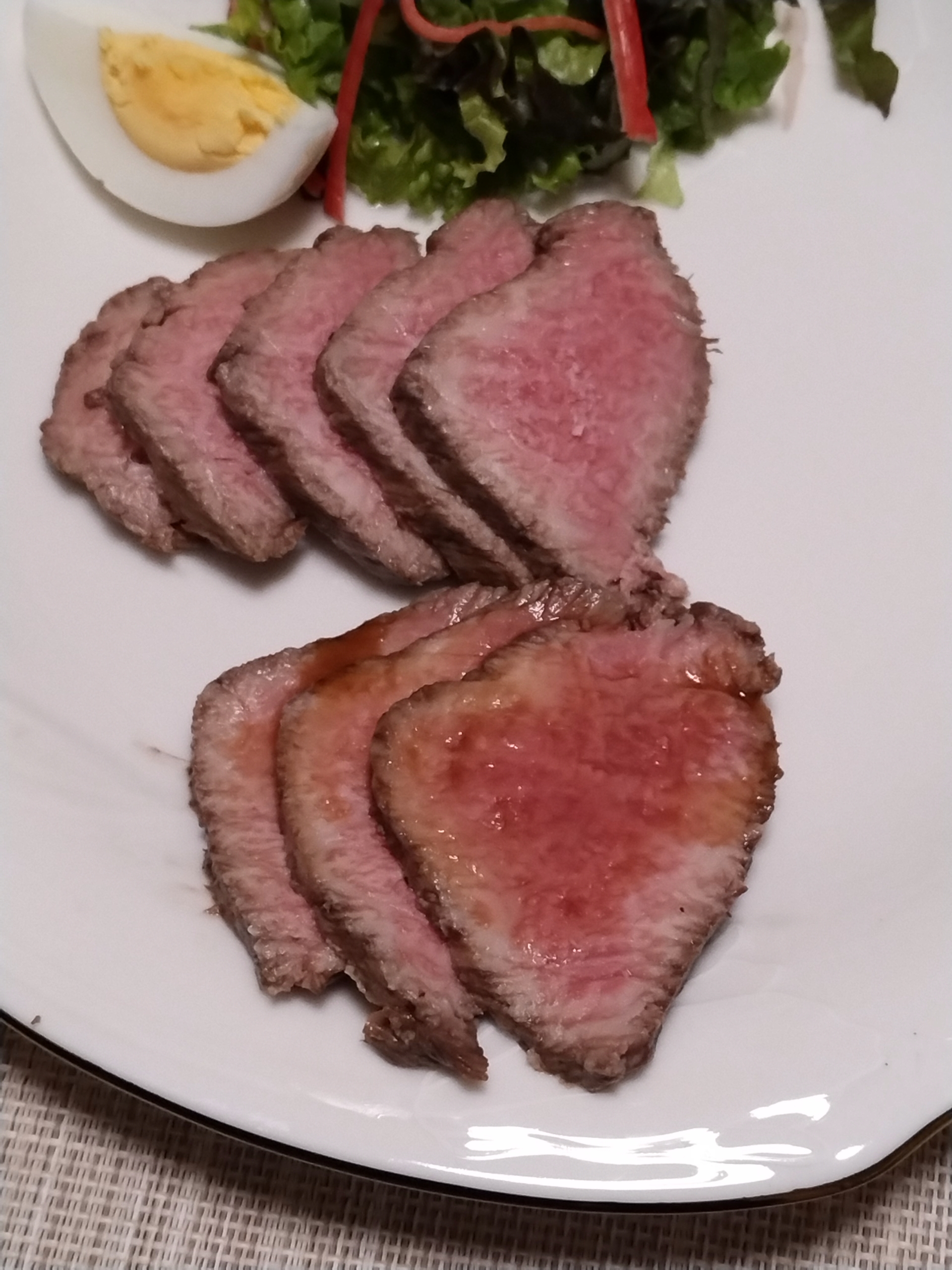 断面は、ほどよくさしのはいった上等なお肉ということが、視覚的にも伝わってきます。