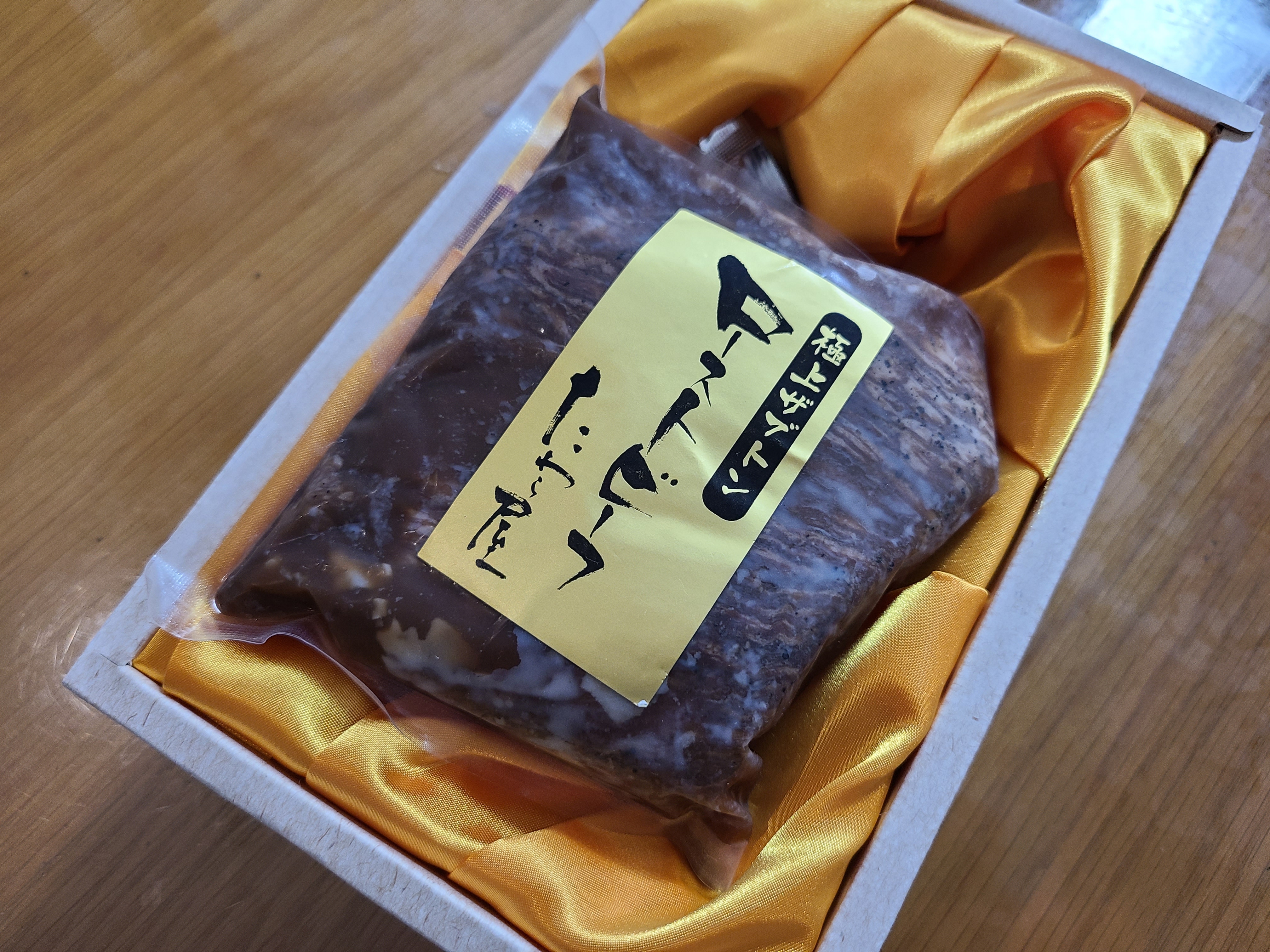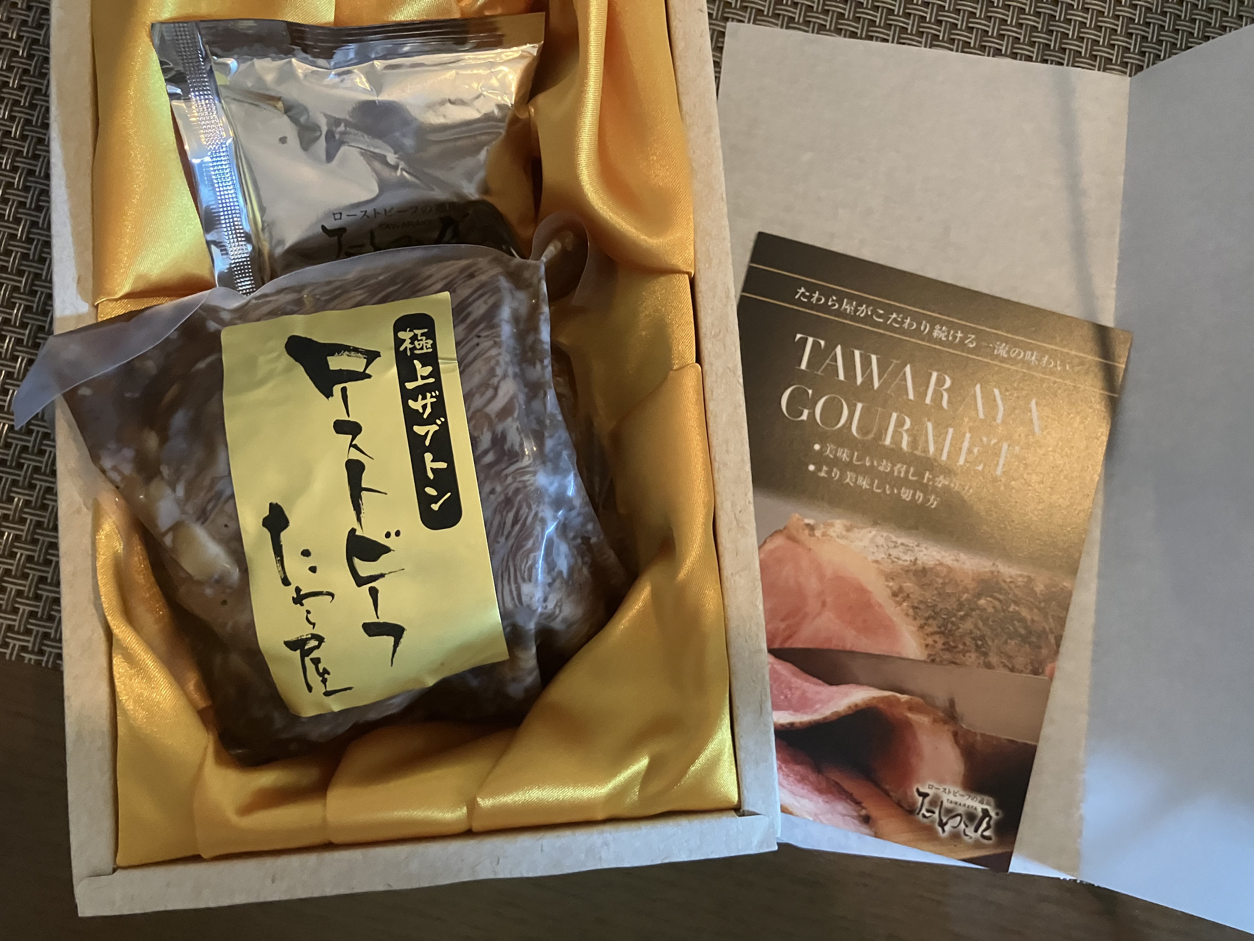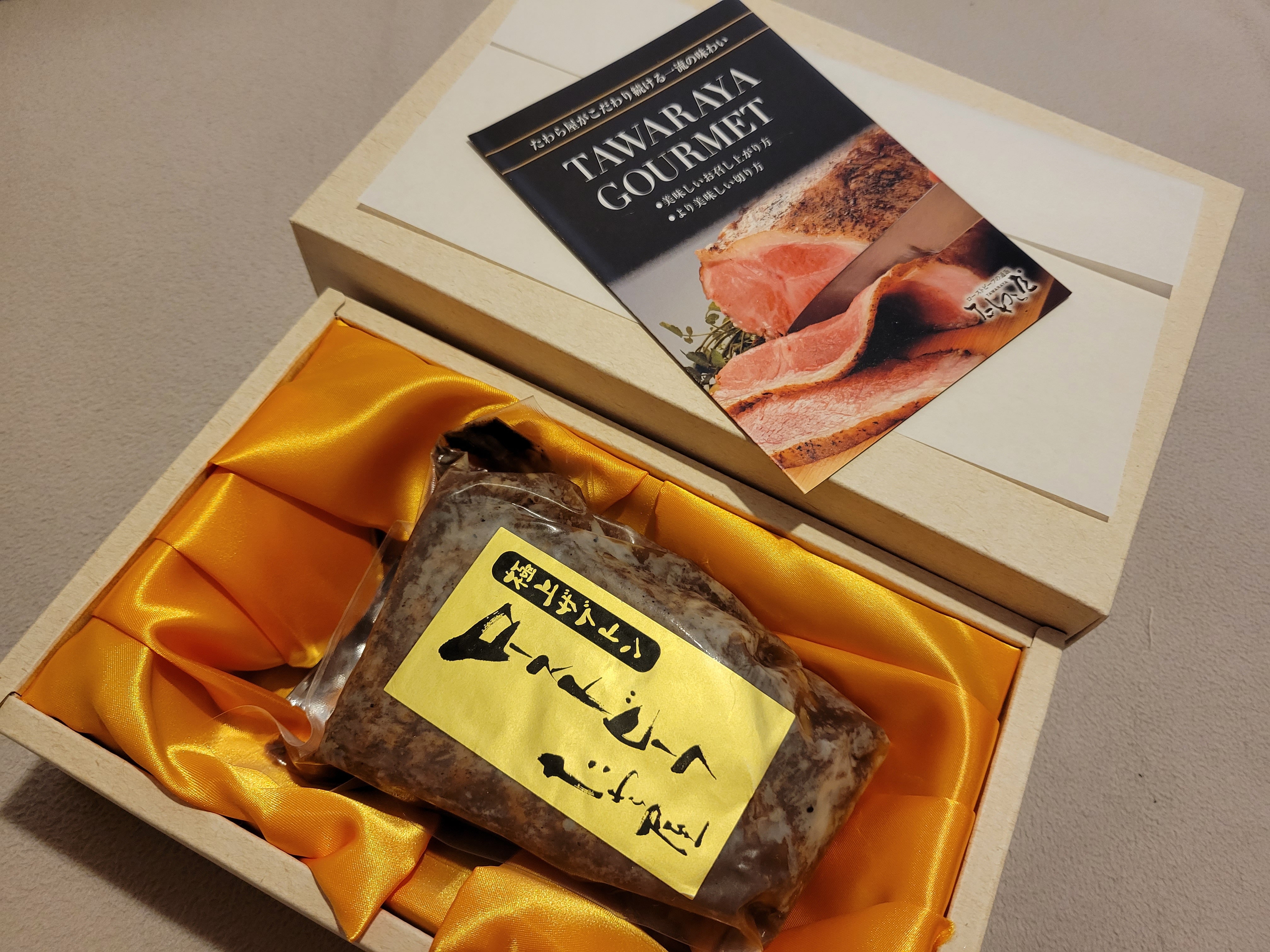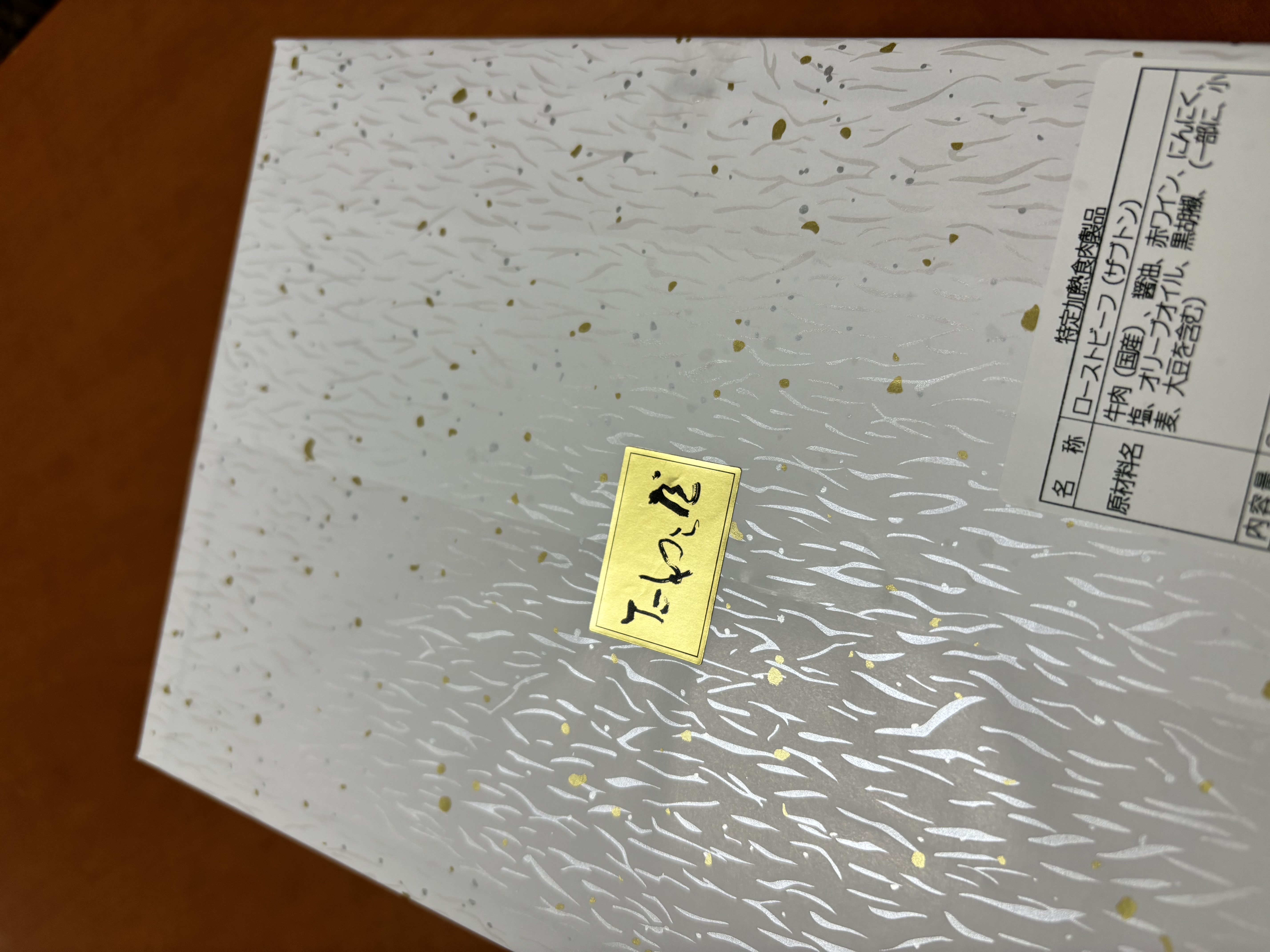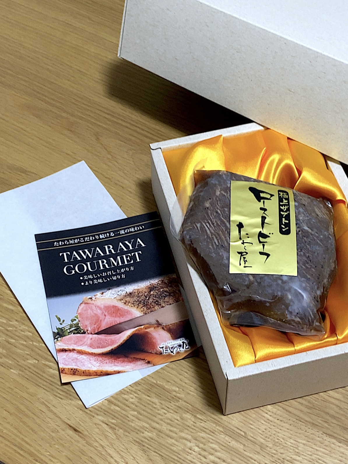 シンプルな包装紙、箱を開けると、金色!!そしてお肉!!!高級感とお肉の存在感にワクワクします。