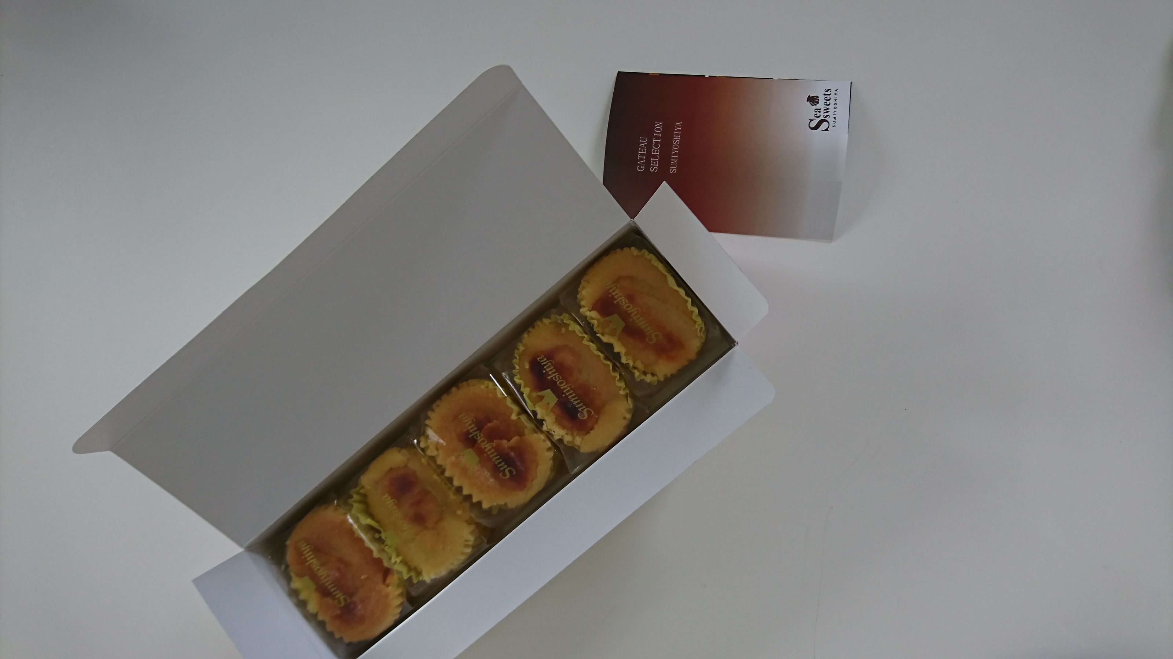 指定の日の朝一で届けていただきました。袋の中に白い筒状の箱がありスィートポテトが入っている箱が3つ入っていました。中を開けると綺麗に丁寧にスイートポテトが一箱に5個入っていました。