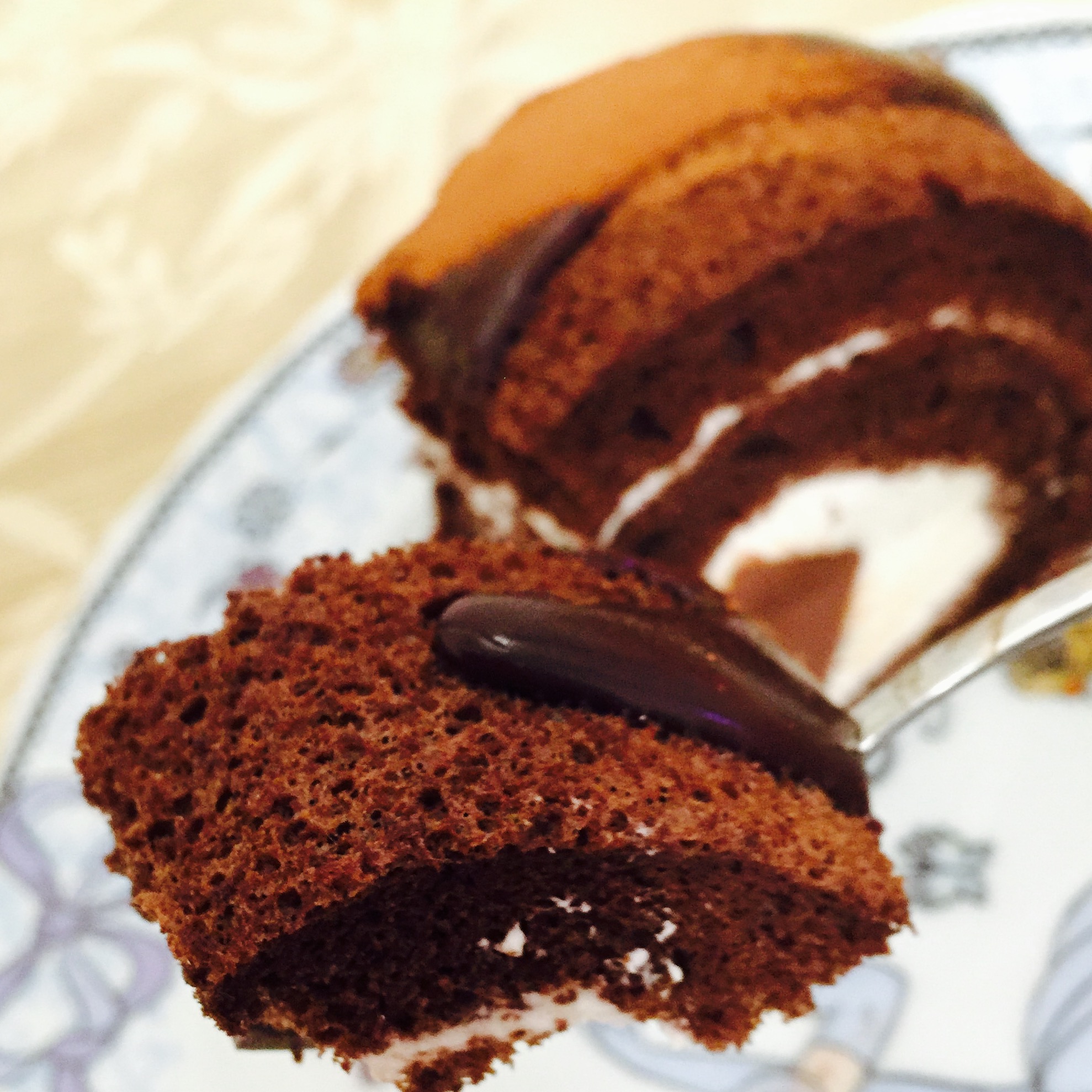 上からかかっている溶けそうなチョコ&ふわっふわなチョコスポンジ+しっとりした生クリームの相性は抜群で、一口食べたら止まりません。