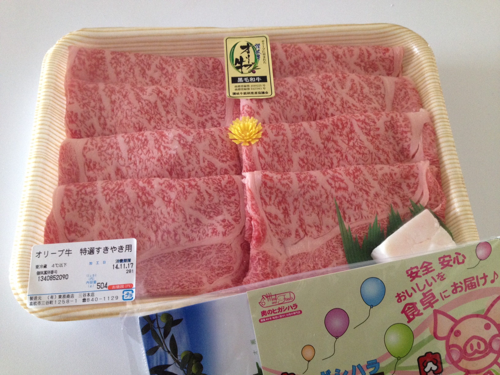 オリーブ牛、今回初めていただきましたがすき焼きにする時やお歳暮にはぜひ「ヒガシハラ」さんのオリーブ牛をお取り寄せしようと思います。