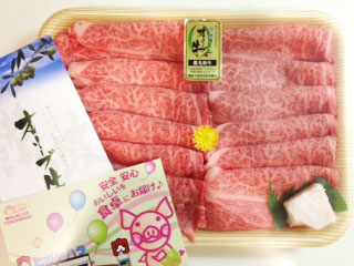 最高ランク【金ラベル】のオリーブ牛の霜降りは口の中でさらりとほどける心地良さで、脂の口溶けを上質にするオレイン酸を豊富に含んでいます。