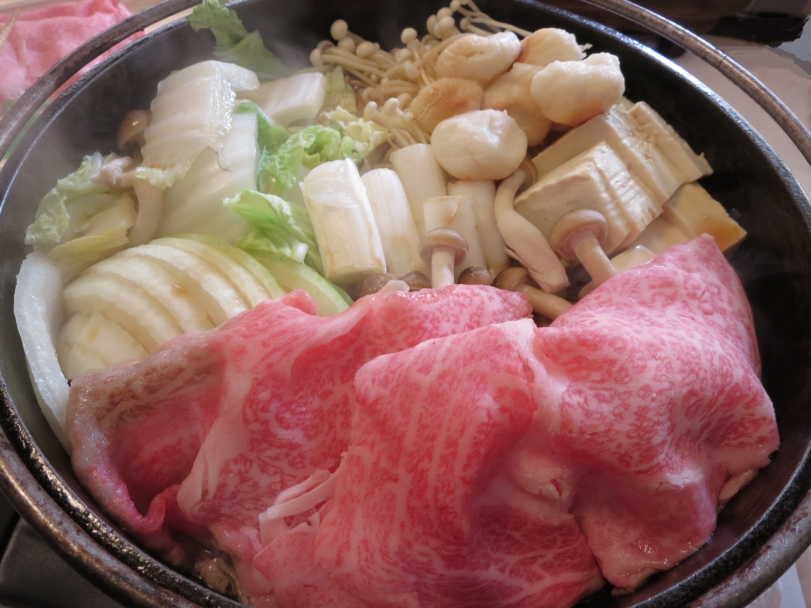 しらたきや焼き豆腐、しいたけと一緒に最高のすき焼きをお楽しみください。