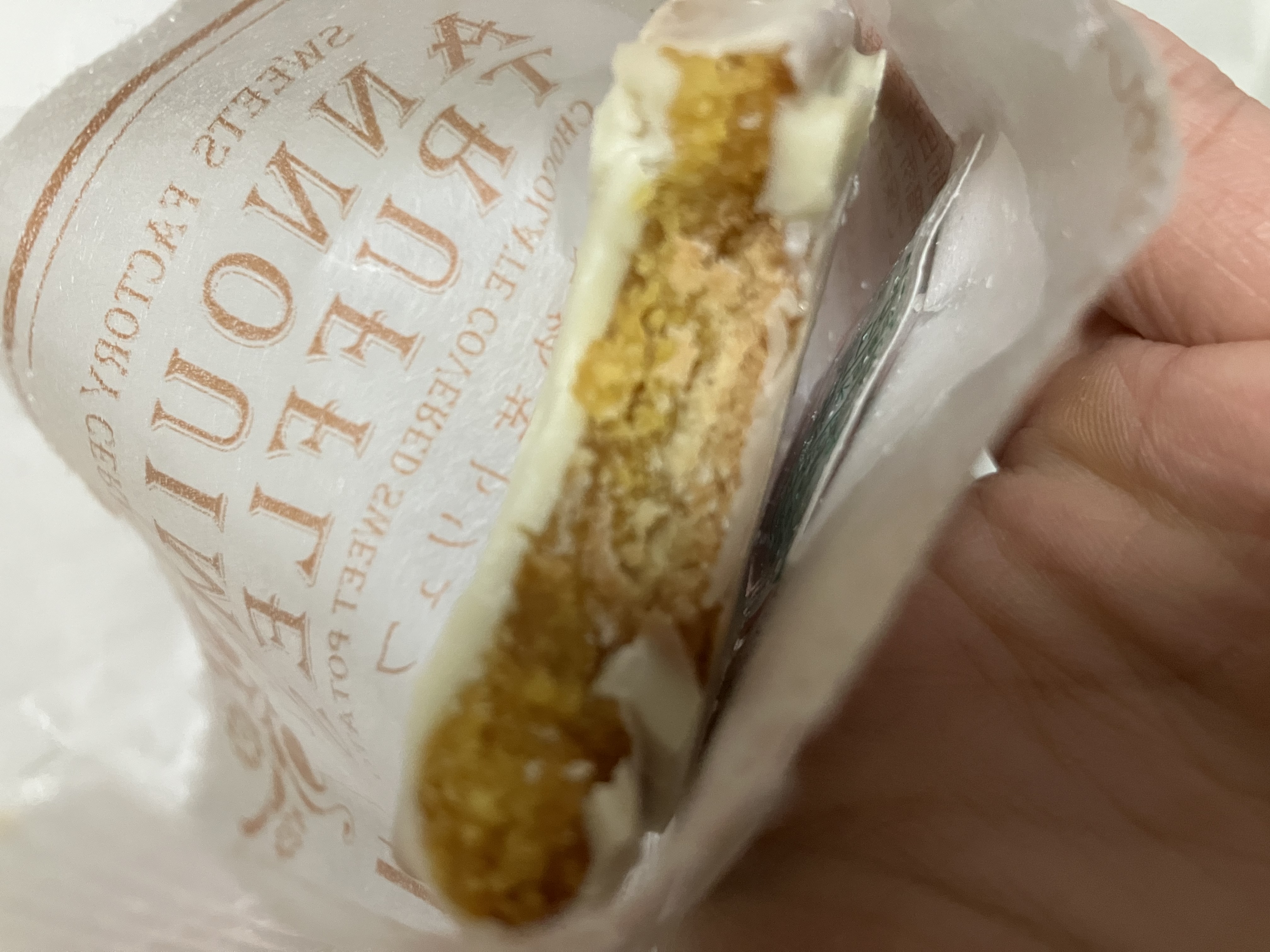 ミルキーさが加わり、冬にぴったりと言う印象を受けました。お芋とホワイトチョコってこんなに合うんだ!と改めて実感しました。冷蔵庫で冷やしたホワイトチョコがパリっとしていて美味しかったです。