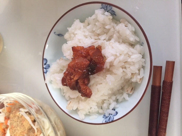 さっそく温かいご飯に乗せて頂くと、プルプルしたジュレが柔らかくなって、口に入れるとジュワーと口の中に煮汁の味が広がります。